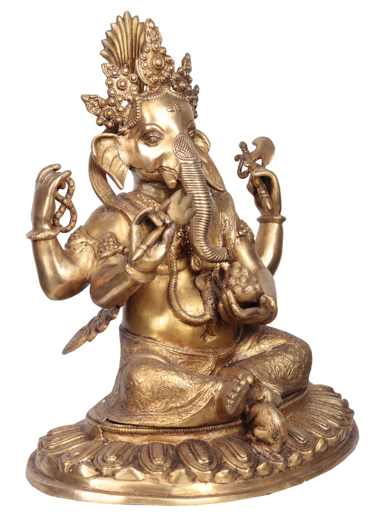 16" Lord Ganesha Brass Statue – Unique Nepalese Art | Handmade in India