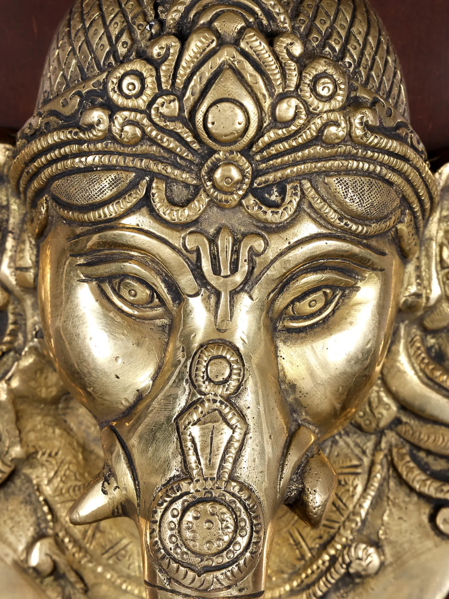 The face of Lord Ganesha, depicted with serene wisdom and finely detailed features, embodies his role as the remover of obstacles and bestower of blessings.