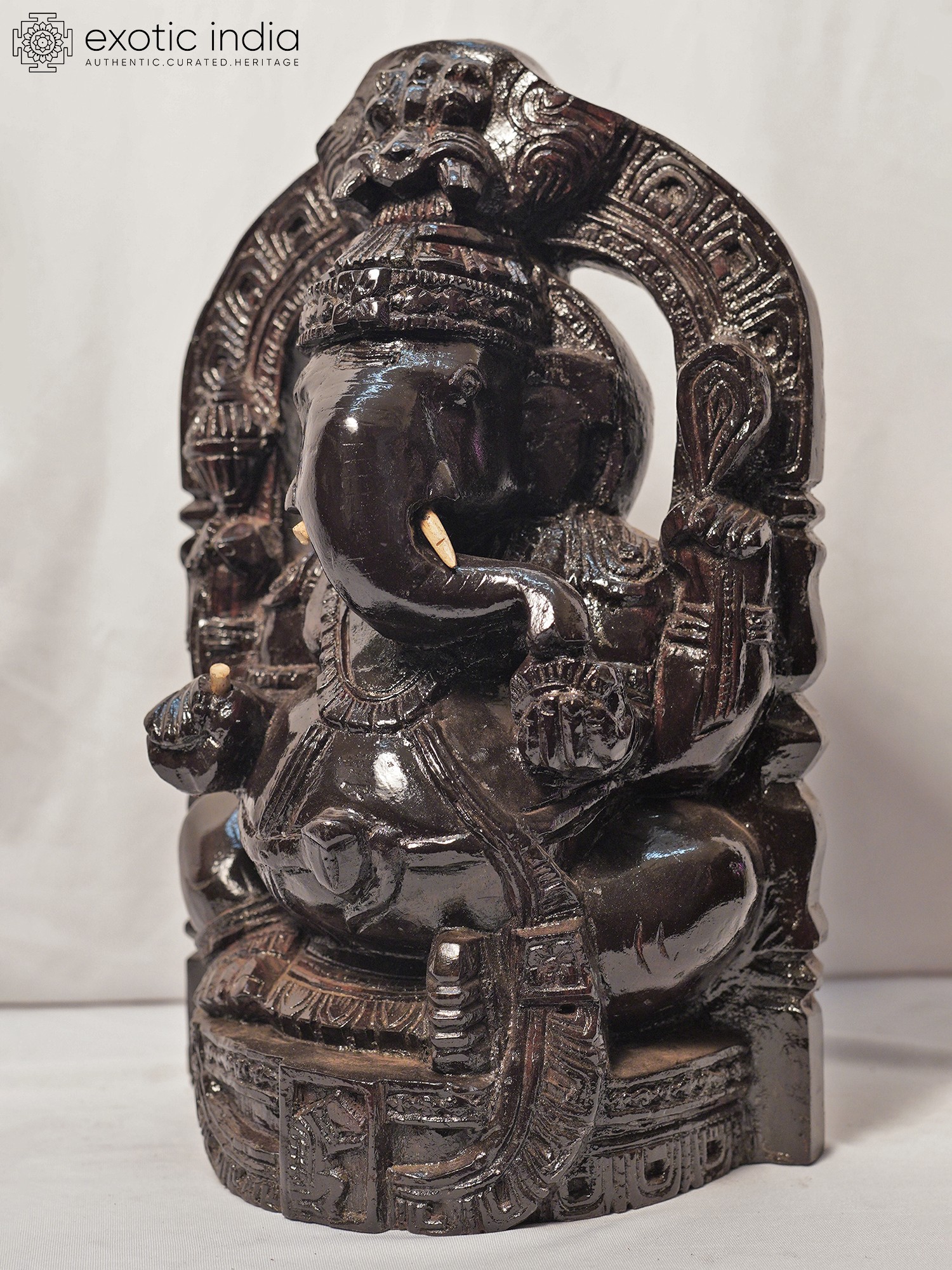 24" Panchamukhi Lord Ganesha Seated on Kirtimukha Throne | Wood Carving