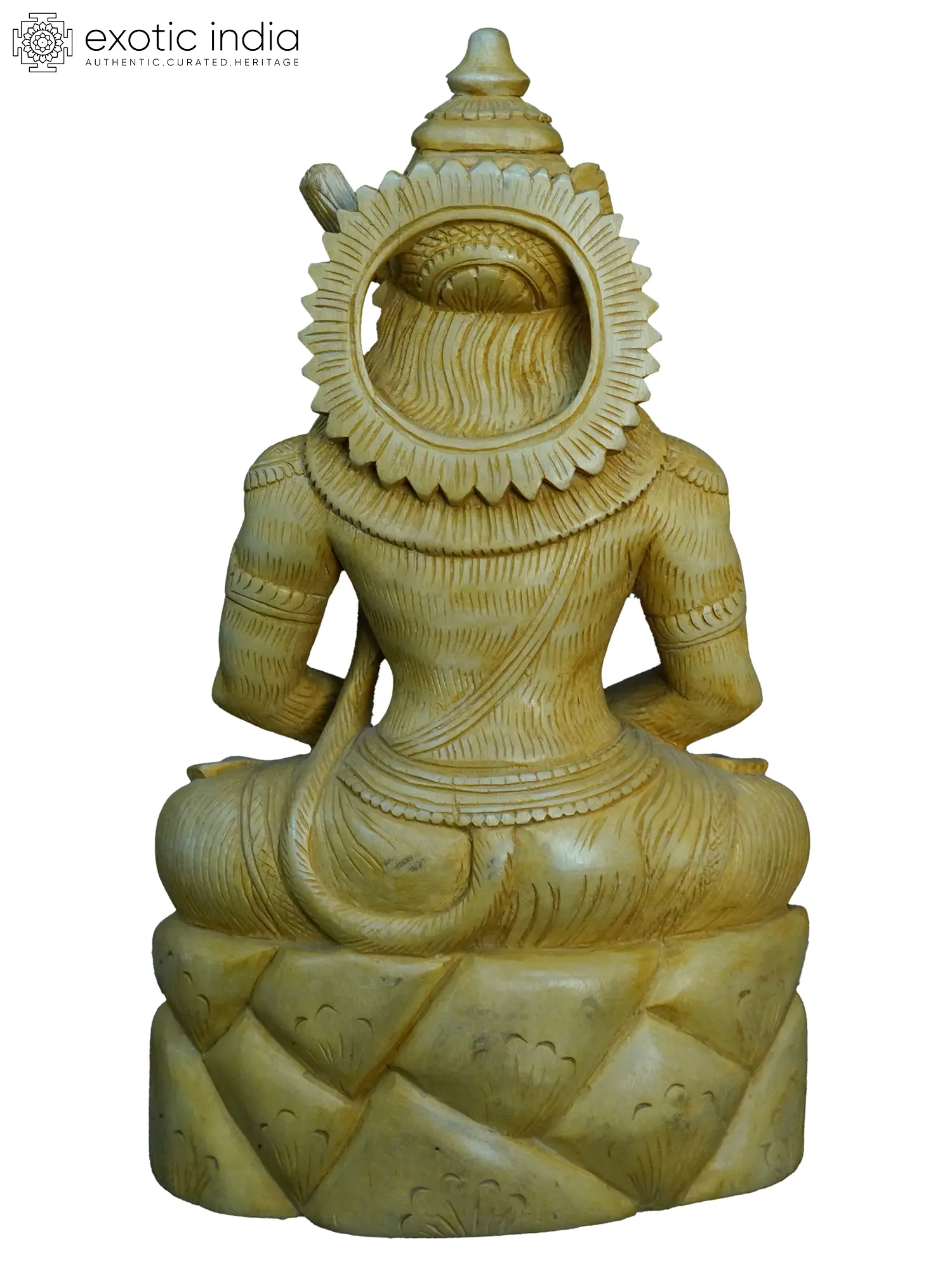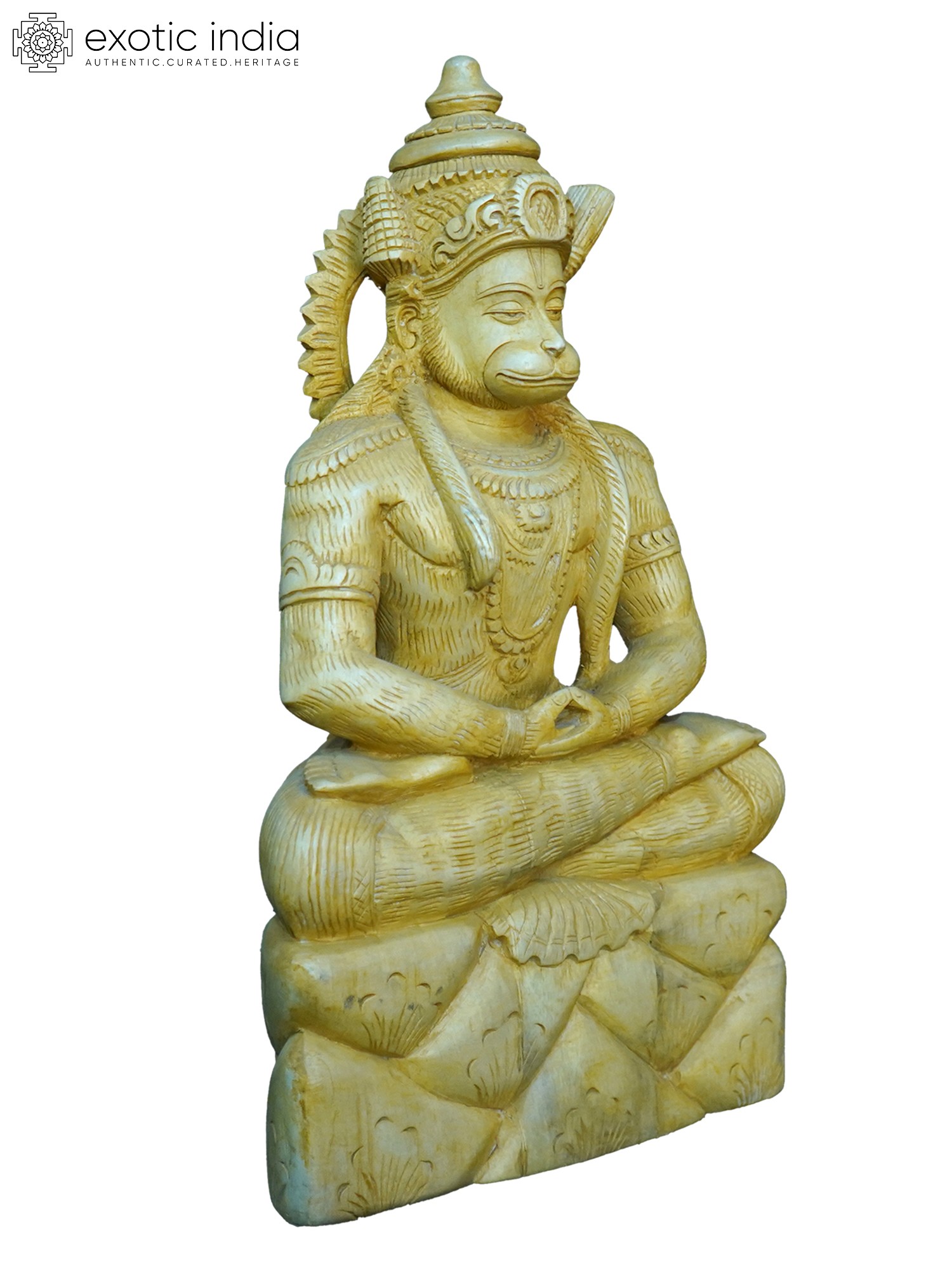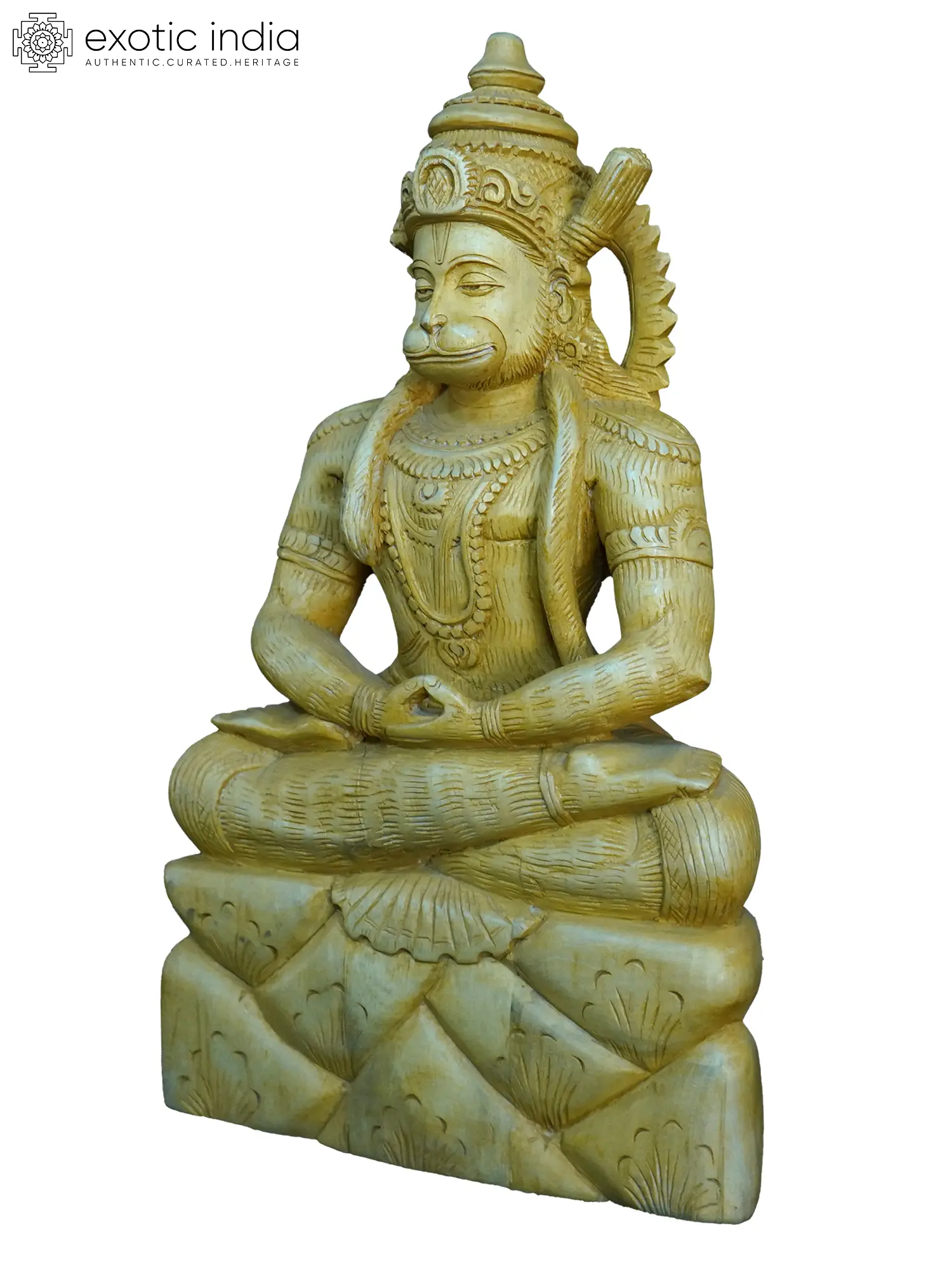 10" Lord Hanuman Seated in Blessing Gesture | Wood Carved Statue