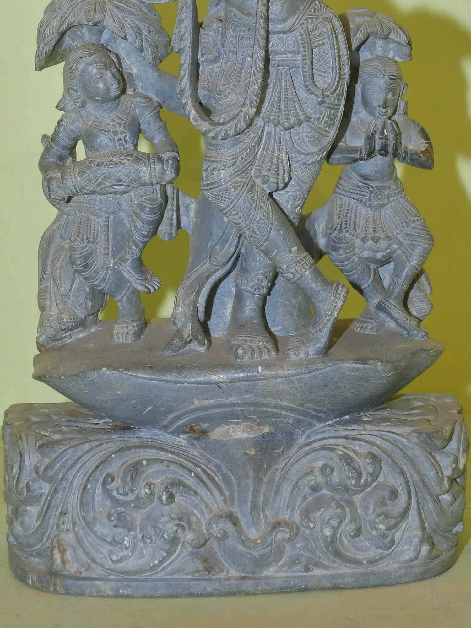 12" Dancing Lord Krishna Statue Playing Flute | Black Mahabalipuram Stone
