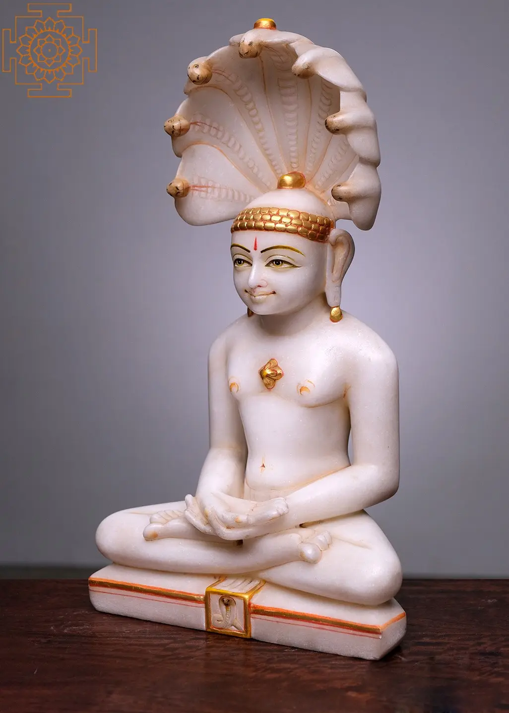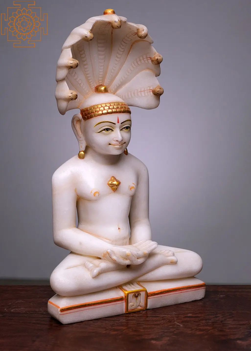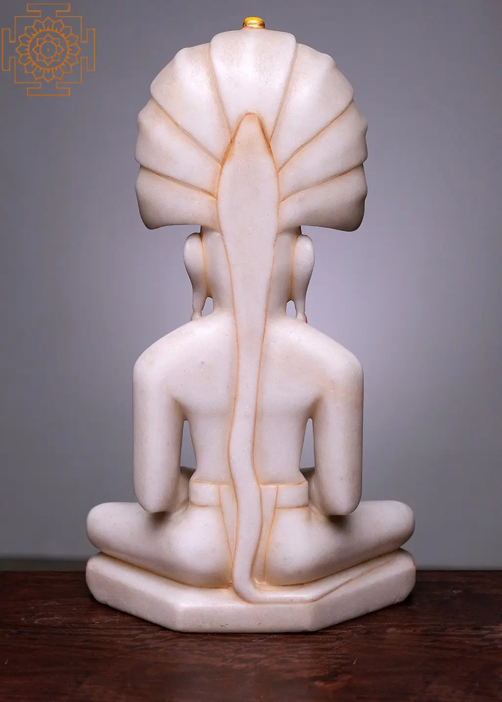 16" Lord Parshvanatha | Handmade | White Marble Lord Parshvanatha Statue | Lord Parshvanatha Statue | Parasnath | Jain Moorti For Mandir