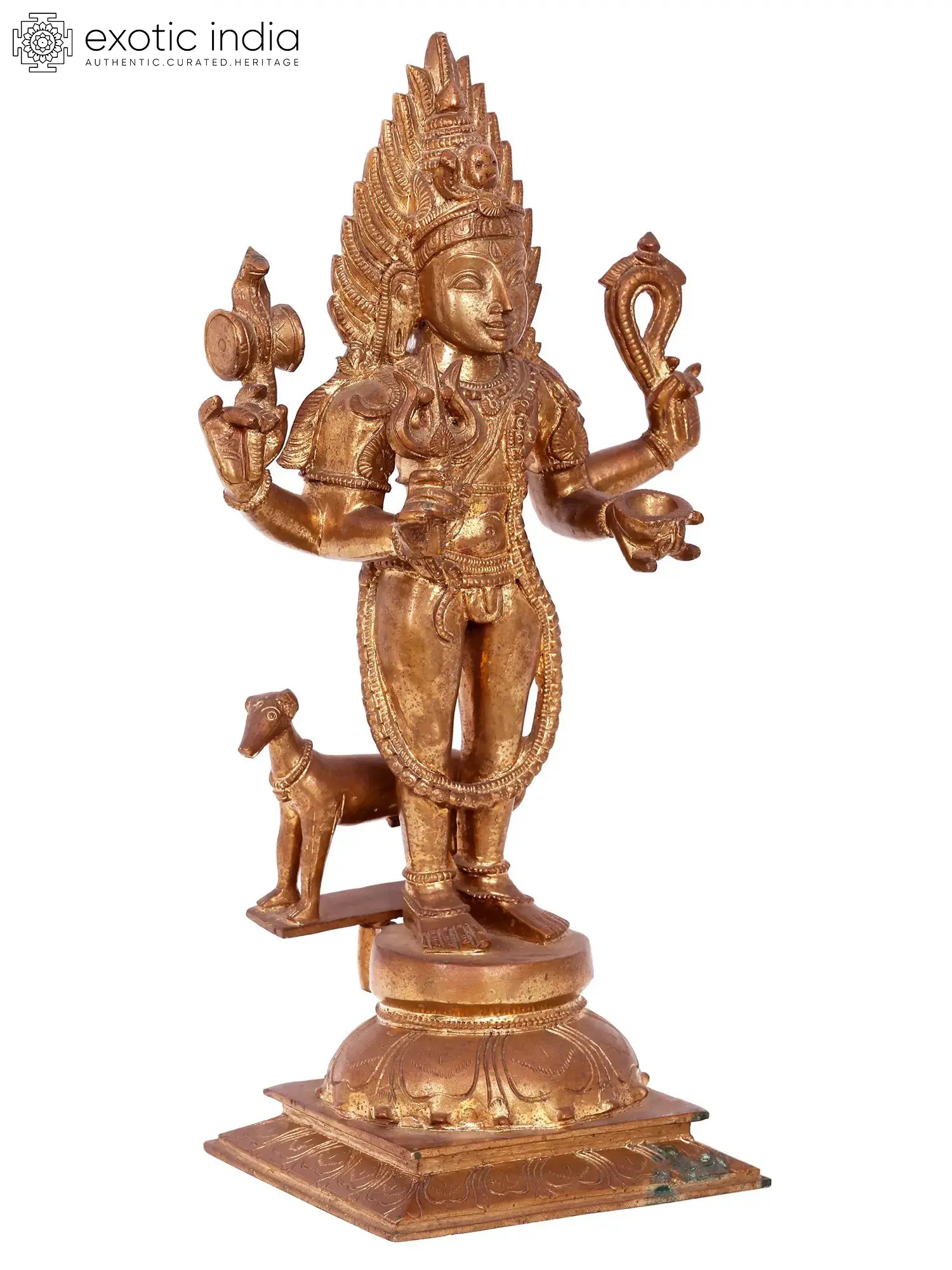 Like a radiant flame amidst the darkness, Lord Bhairava's bronze form illuminates the complex and multifaceted nature of the deity, embodying both the destructive and creative forces of the universe.