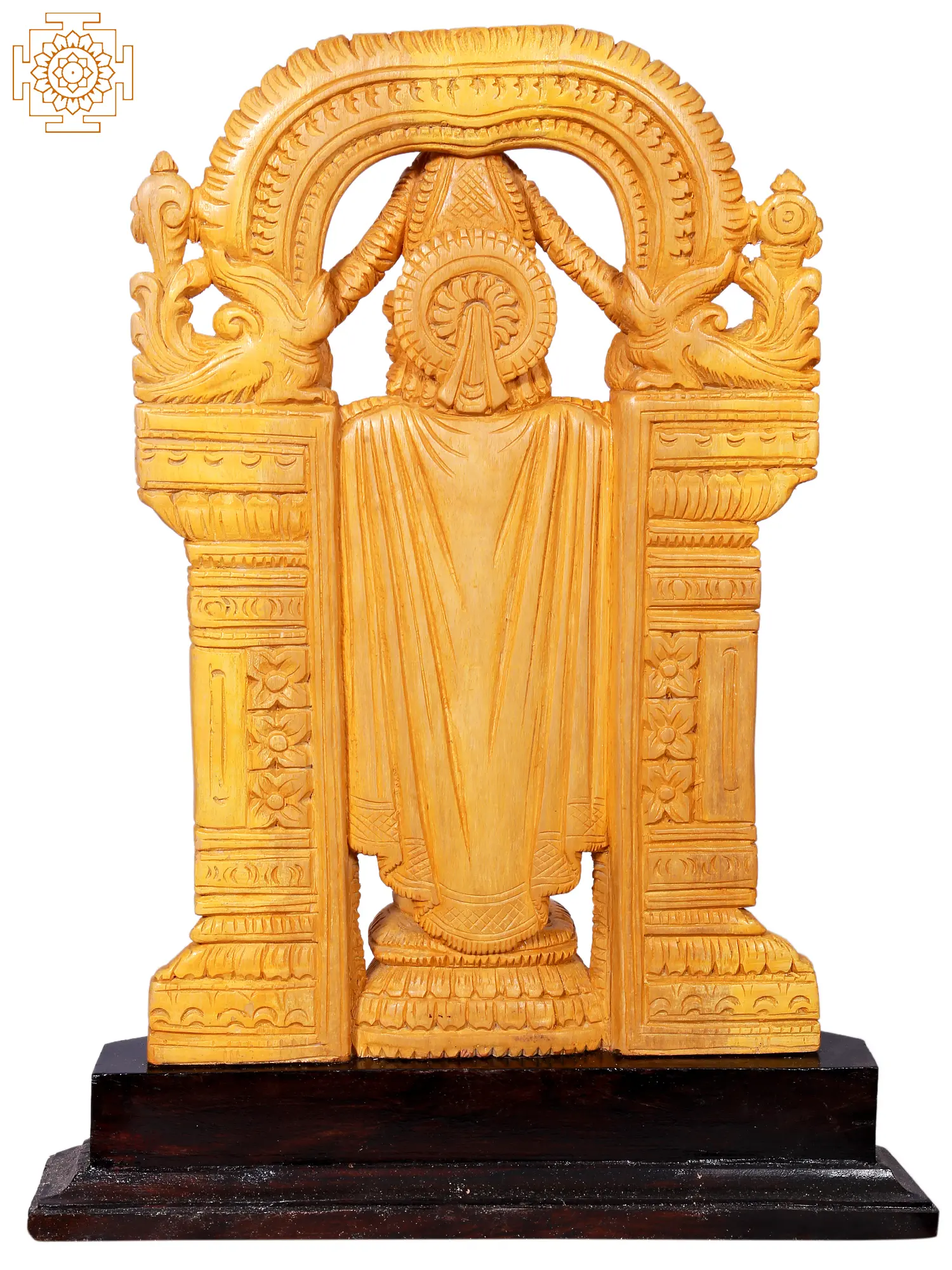 16" Lord Tirupati Balaji Idol Standing on Pedestal | Wooden Statue