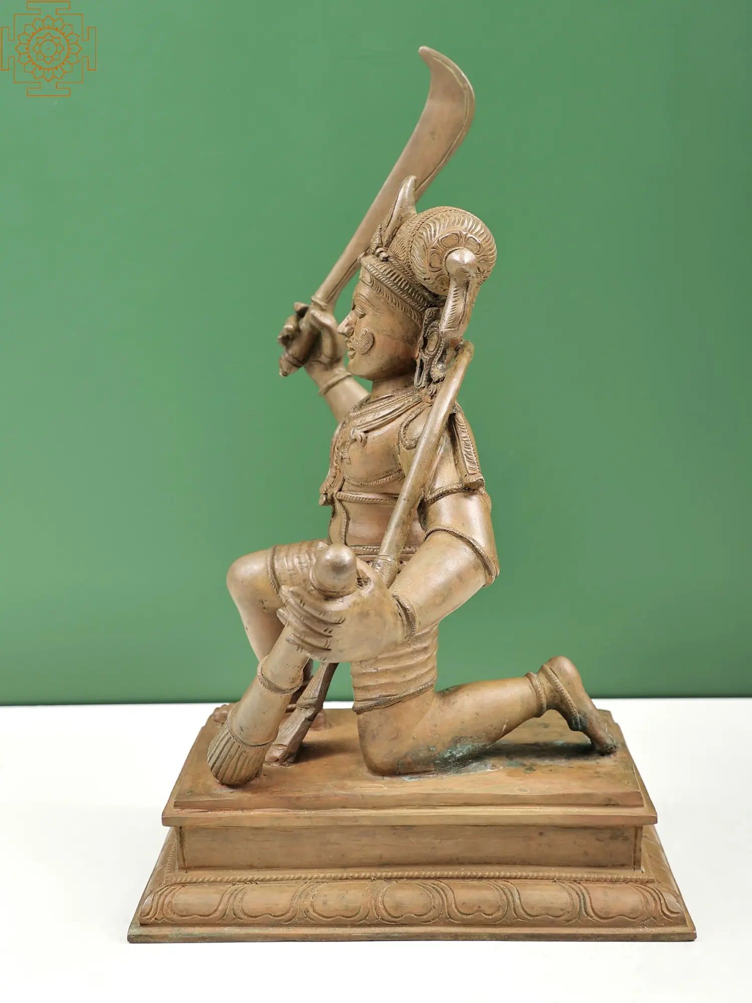 Madurai Veeran, a Madurai guardian, will always be with us as our herald, protecting us from all kinds of issues and keeping us safe from our adversaries. Madurai Veeran is a serious and sophisticated man with a moustache and a faint smile. His hair was up in a bun to the left of his head. His chiselled chest is decorated with a plethora of adornments. He is carrying a mugdal, a club ball in his strong hands as he holds a shimmering curved sword in his right hand. He vows to protect his devotees or people who would bring injustice to the world or if any calamity ever arrives in their village he would protect them.