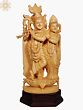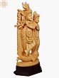 Capture the essence of divine love and devotion with this exquisite hand-carved wooden statue of Radha and Krishna. This 16-inch masterpiece depicts the celestial couple in a tender, iconic pose, a timeless representation of the purest form of love in Hindu mythology. Krishna, the flute player, is shown with his instrument poised, ready to enchant the world with his divine melody, while Radha, his beloved, gazes at him with adoration, her hand gently resting on his arm.