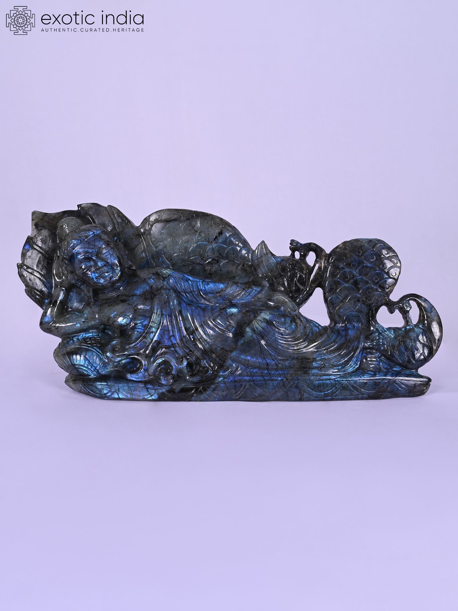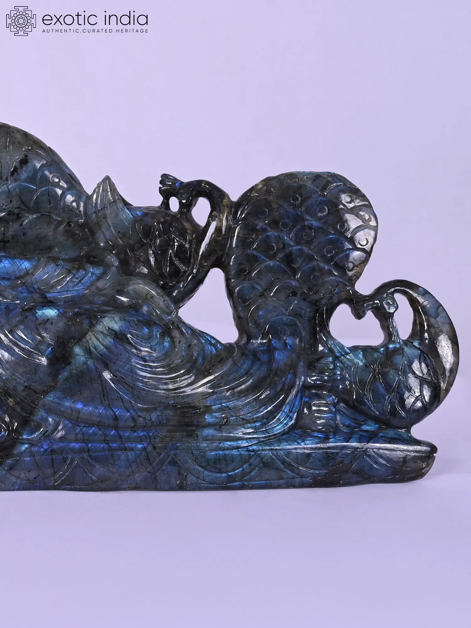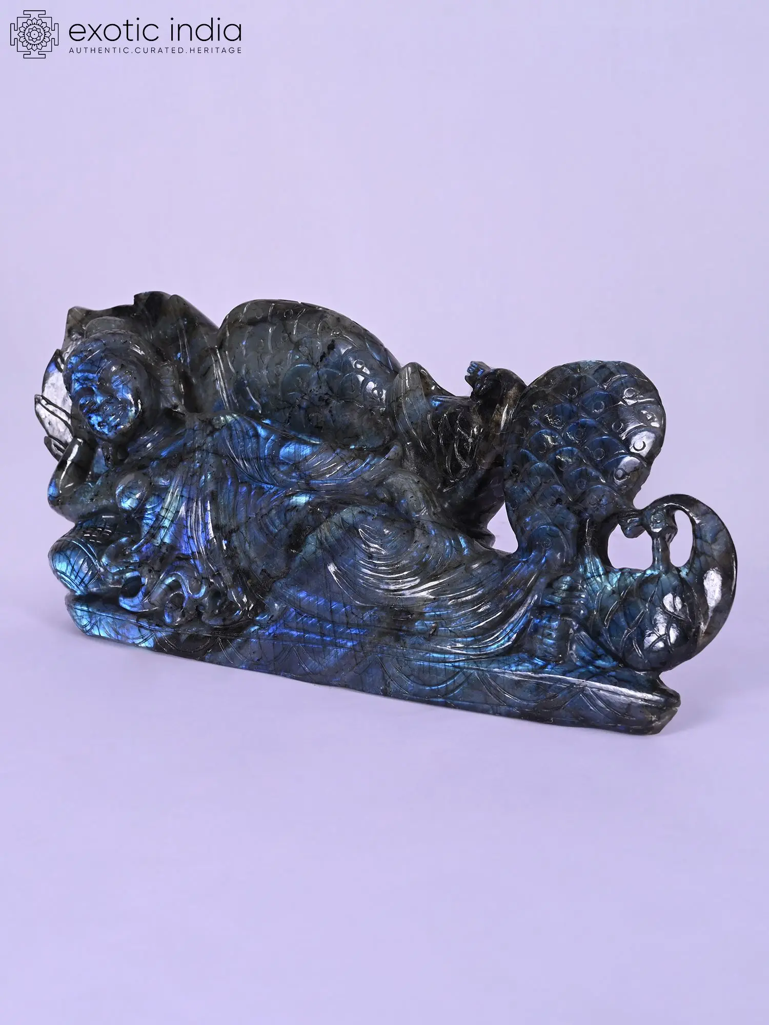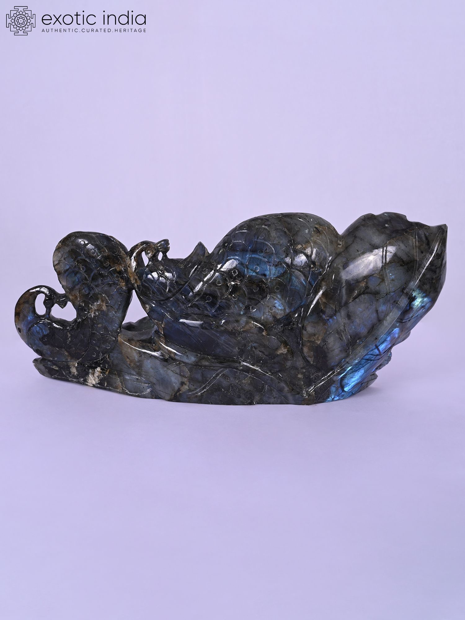 9" Orissan Stone Conch (Shankh) Statue with Intricate Carvings