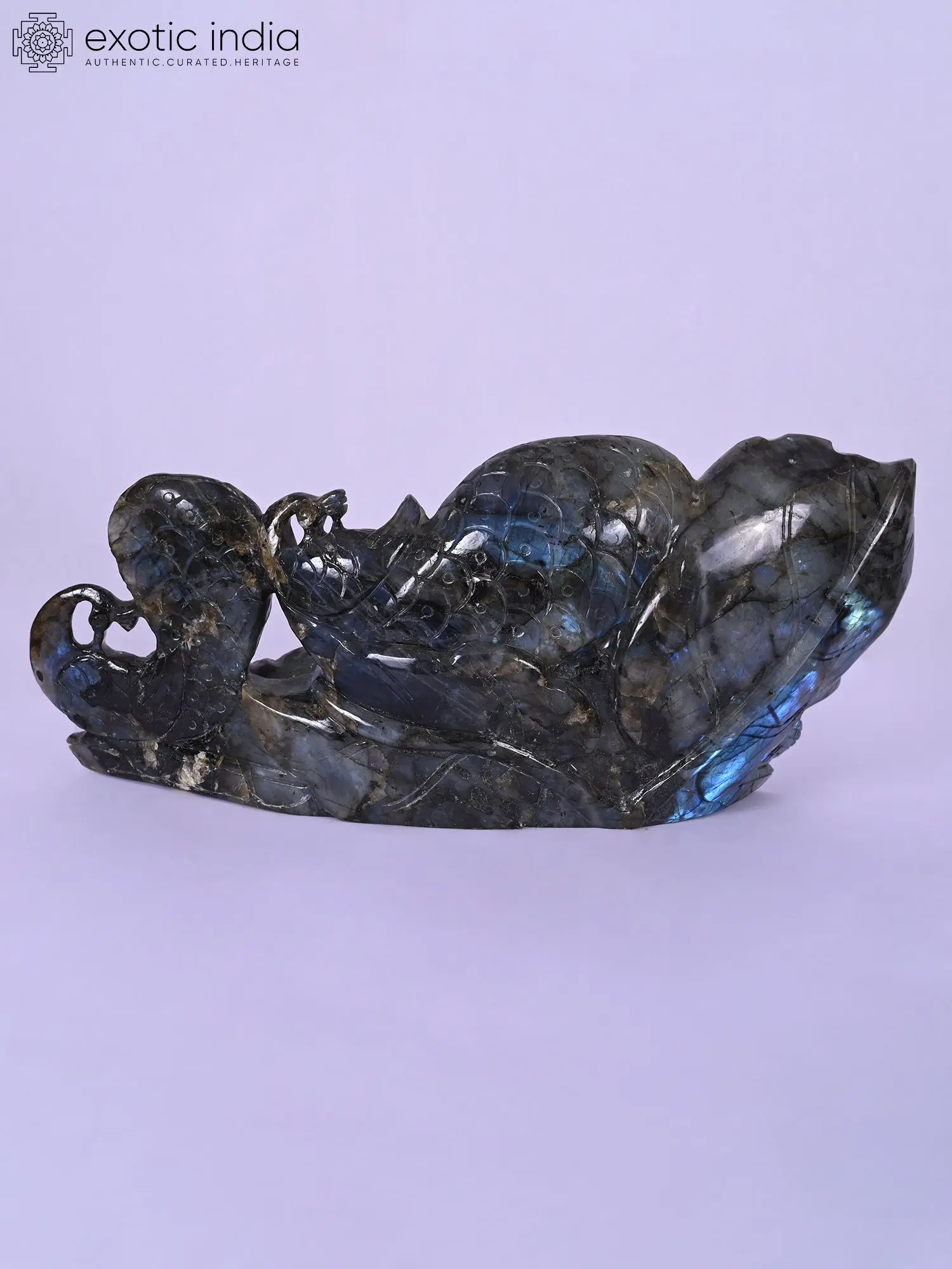 11" Green Stone Conch (Shankh) with Intricate Carvings