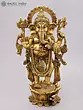 19" Brass Urli with Intricate Leaf Design Stand