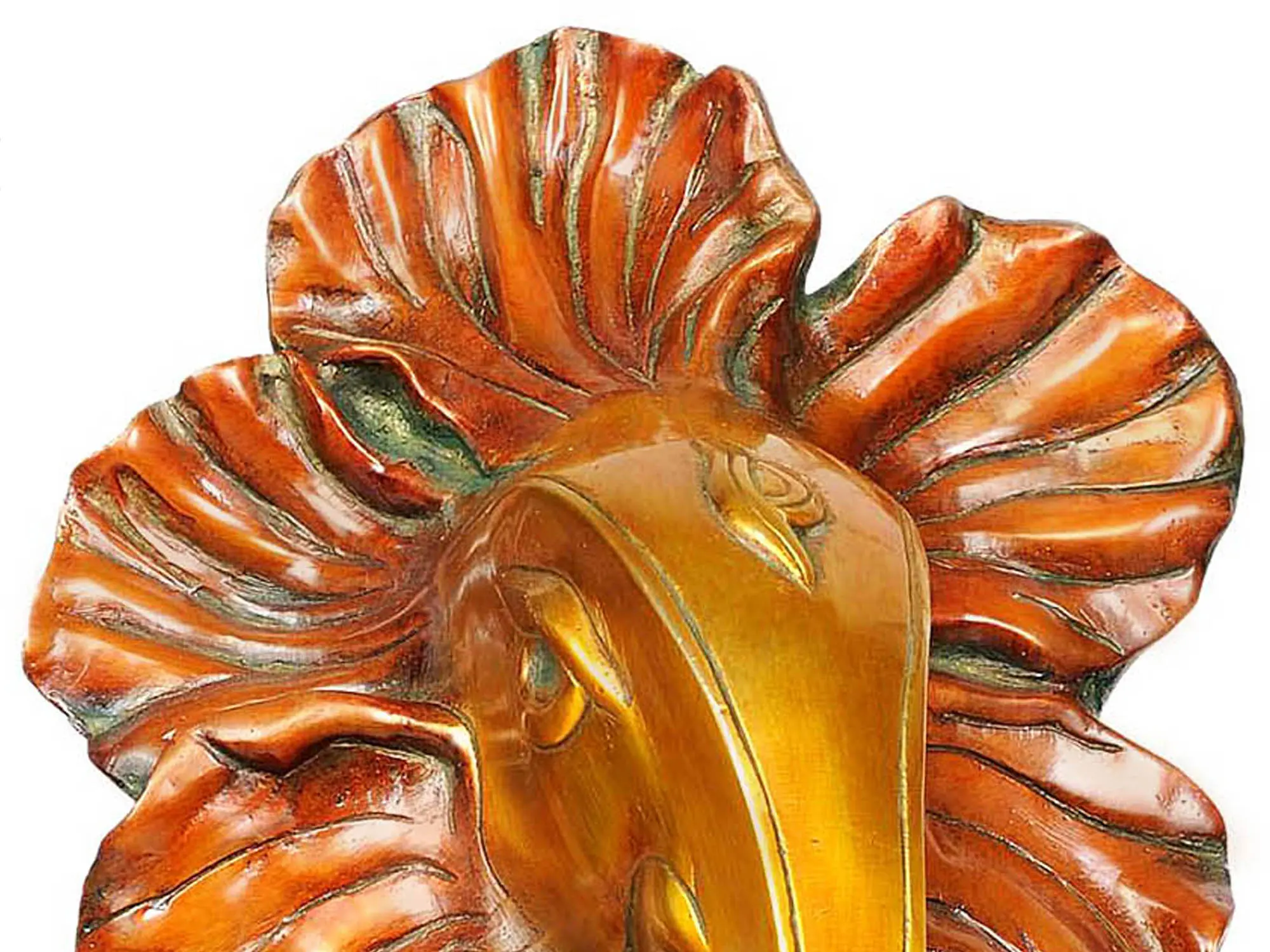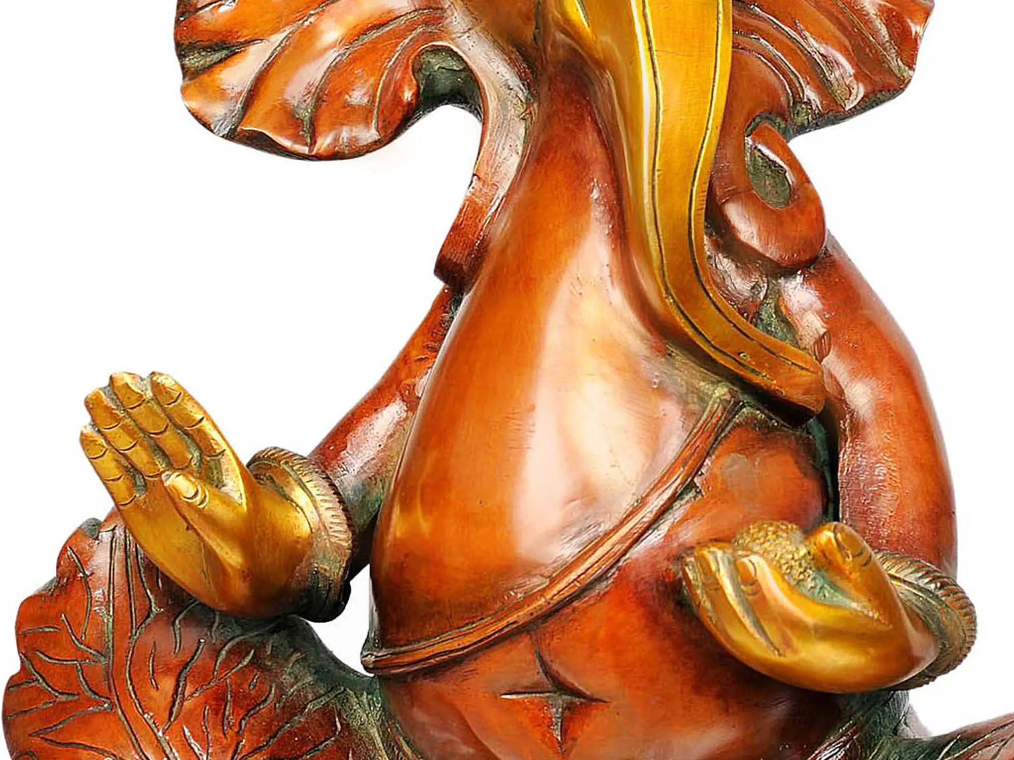 The aureole at the back blooms like a flower with gracious lines flowing outwards to form a sassy pattern. Ganesha’s head forms the centre of this blooming flower-like aureole.
