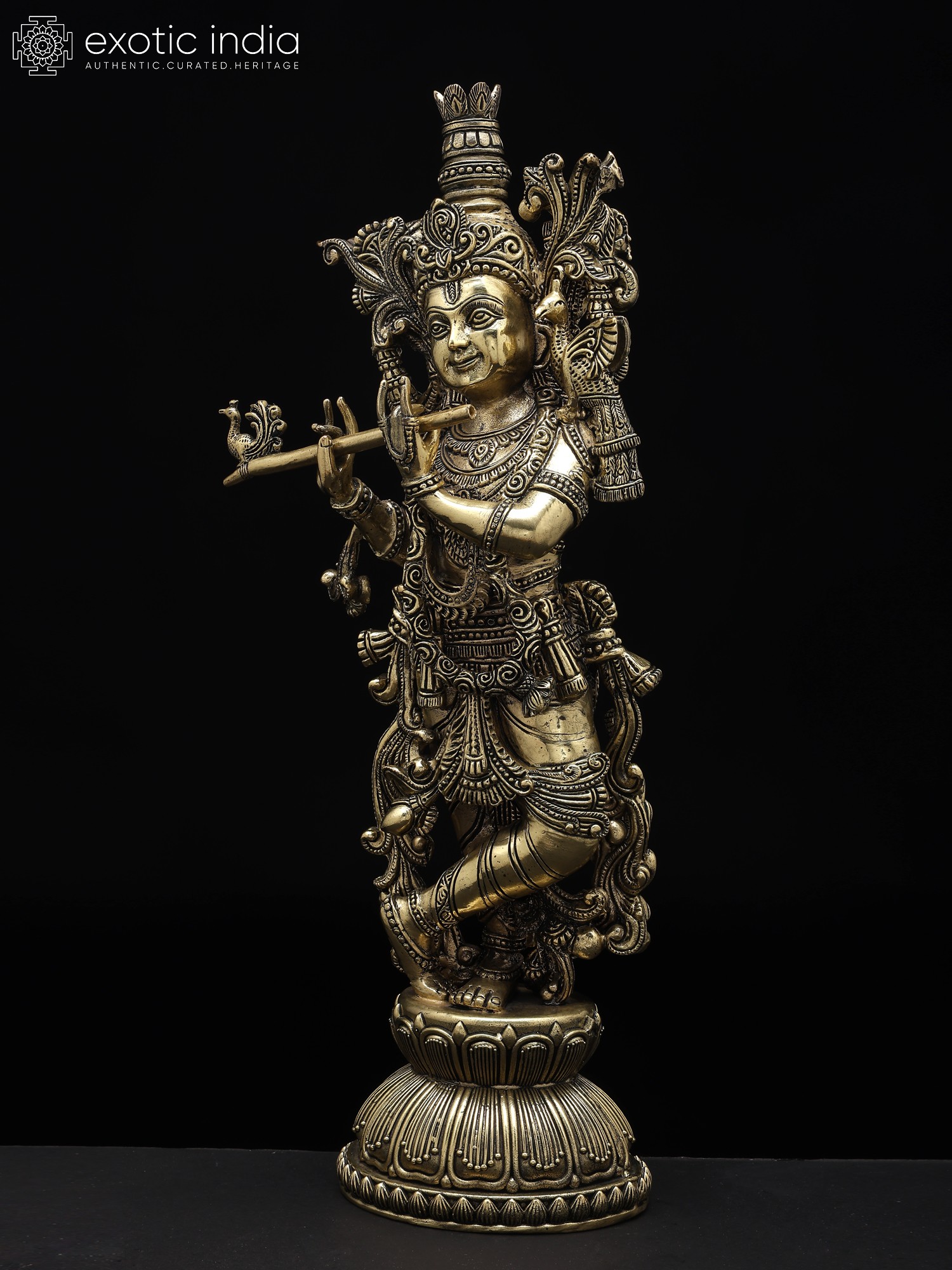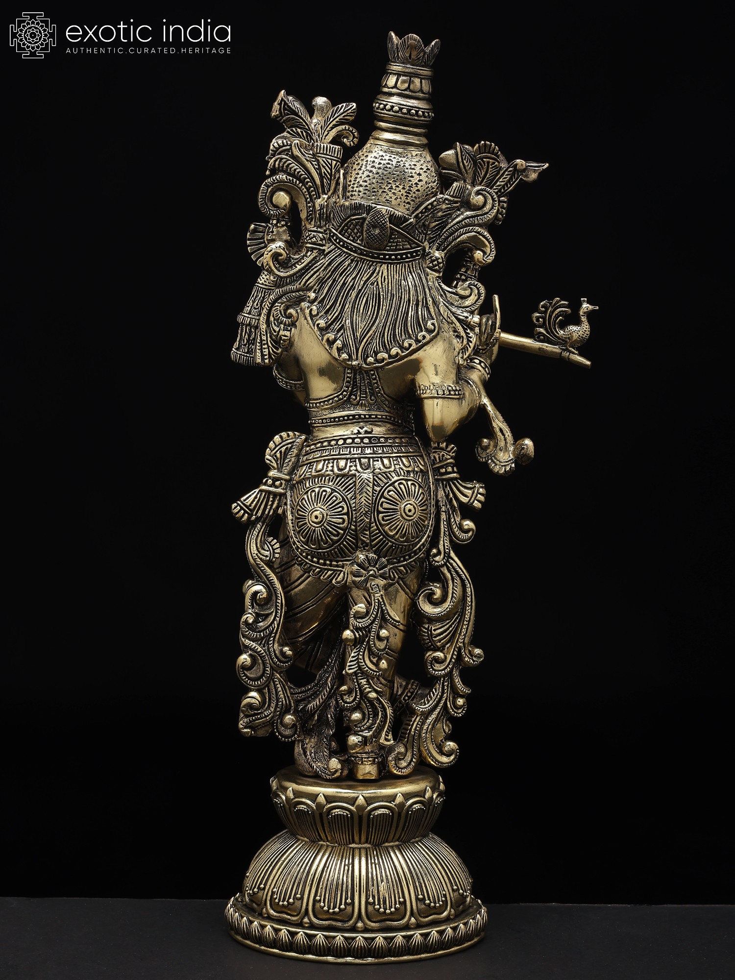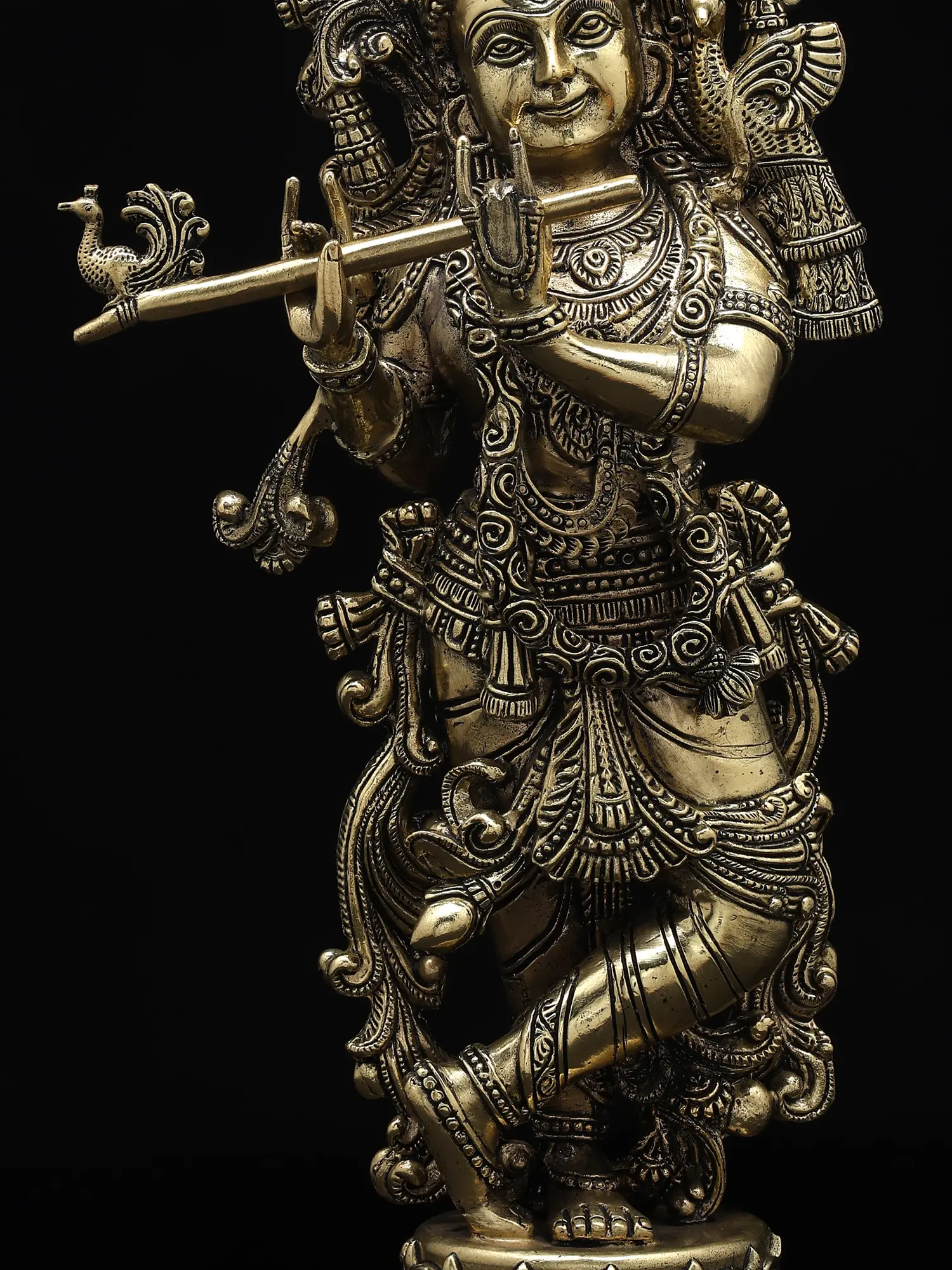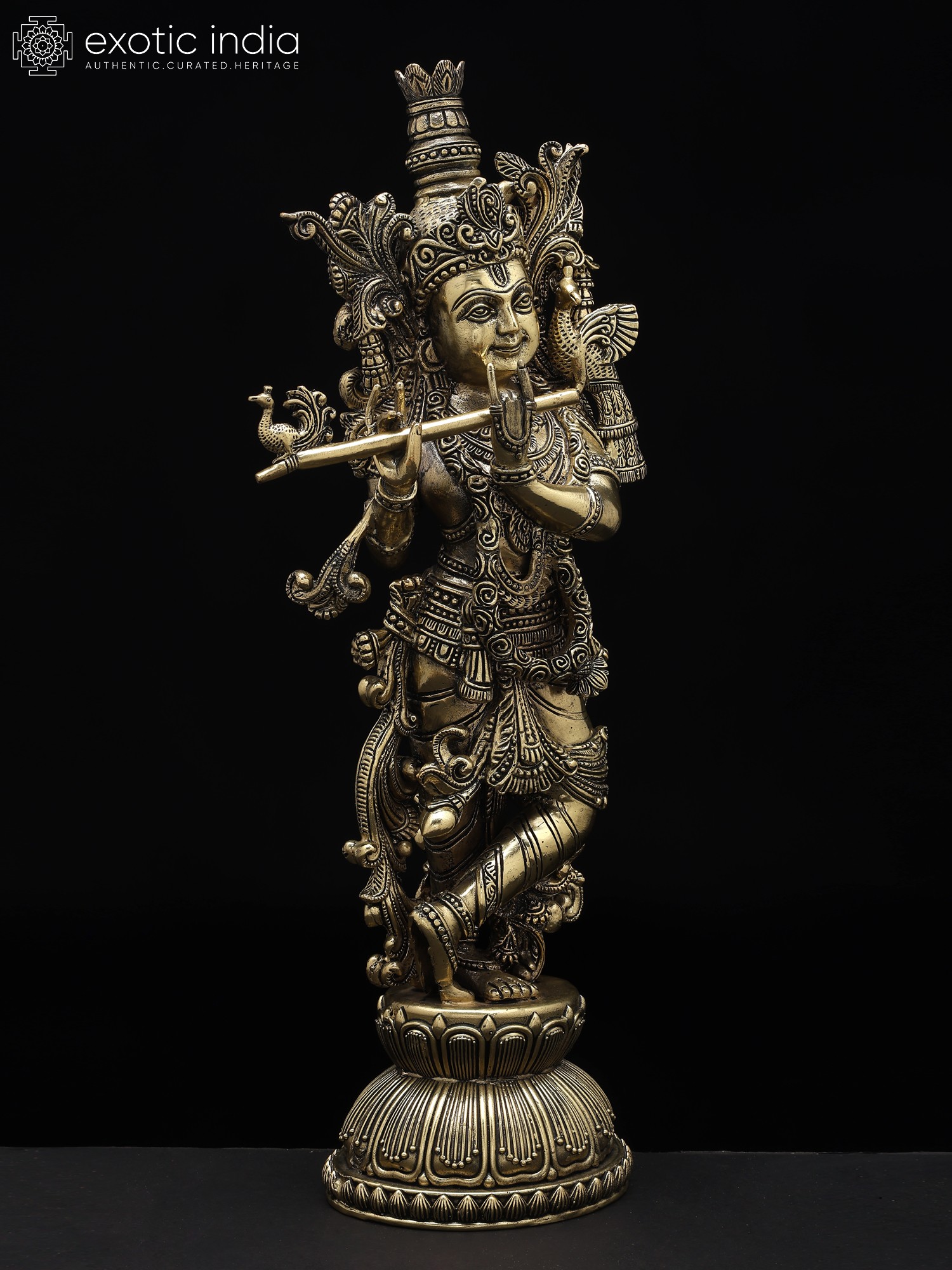 27" Large Fluting Krishna Lamp in Brass | Exquisite Handmade Craft | Authentic Indian Art
