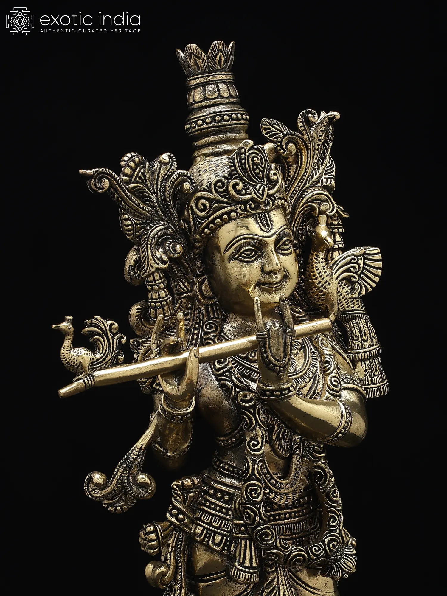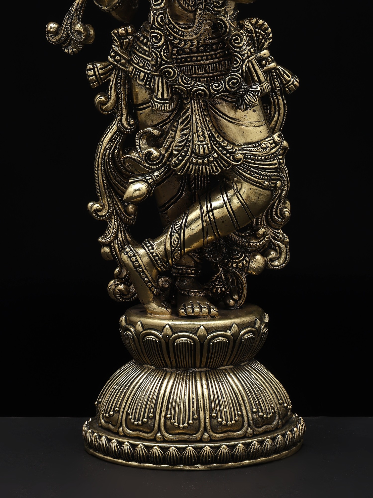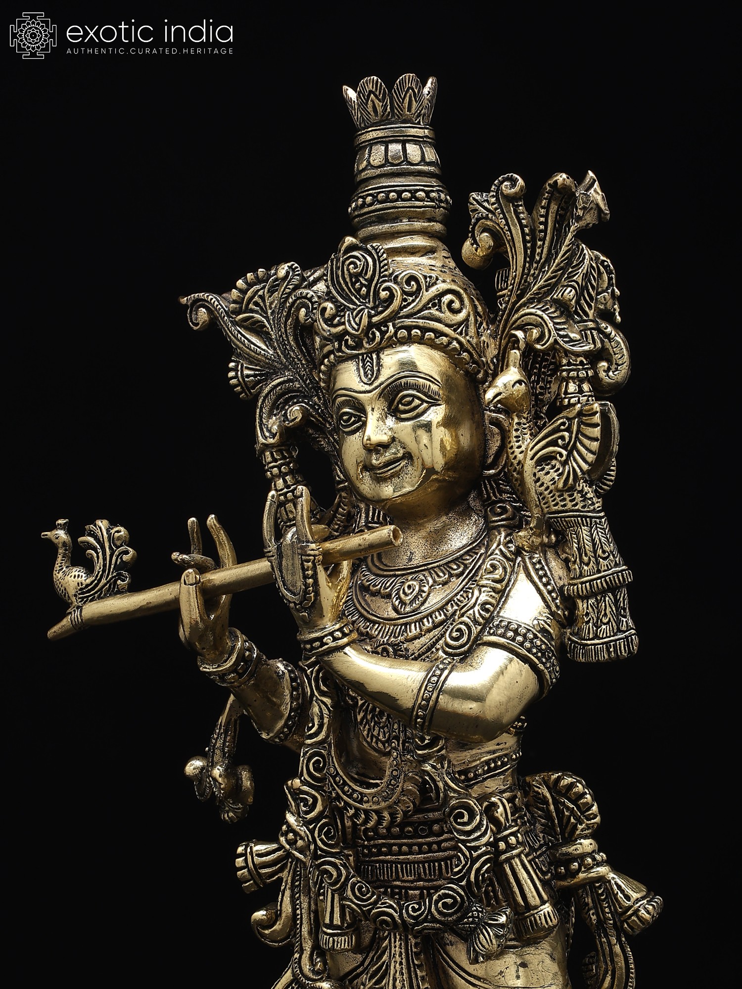 27" Large Fluting Krishna Lamp in Brass | Exquisite Handmade Craft | Authentic Indian Art