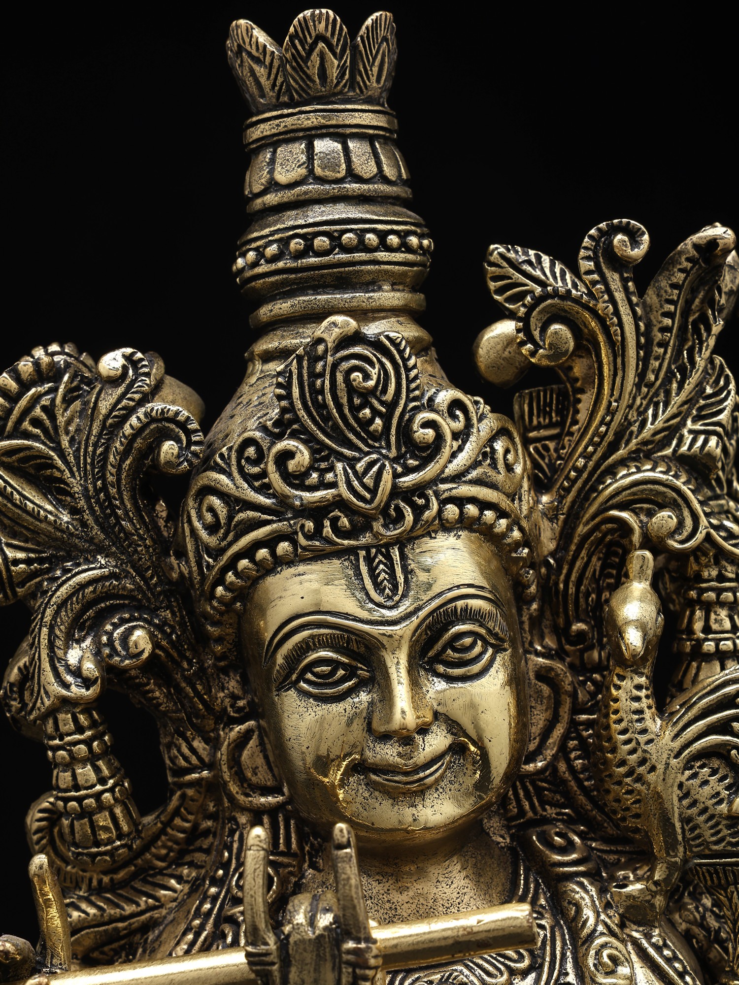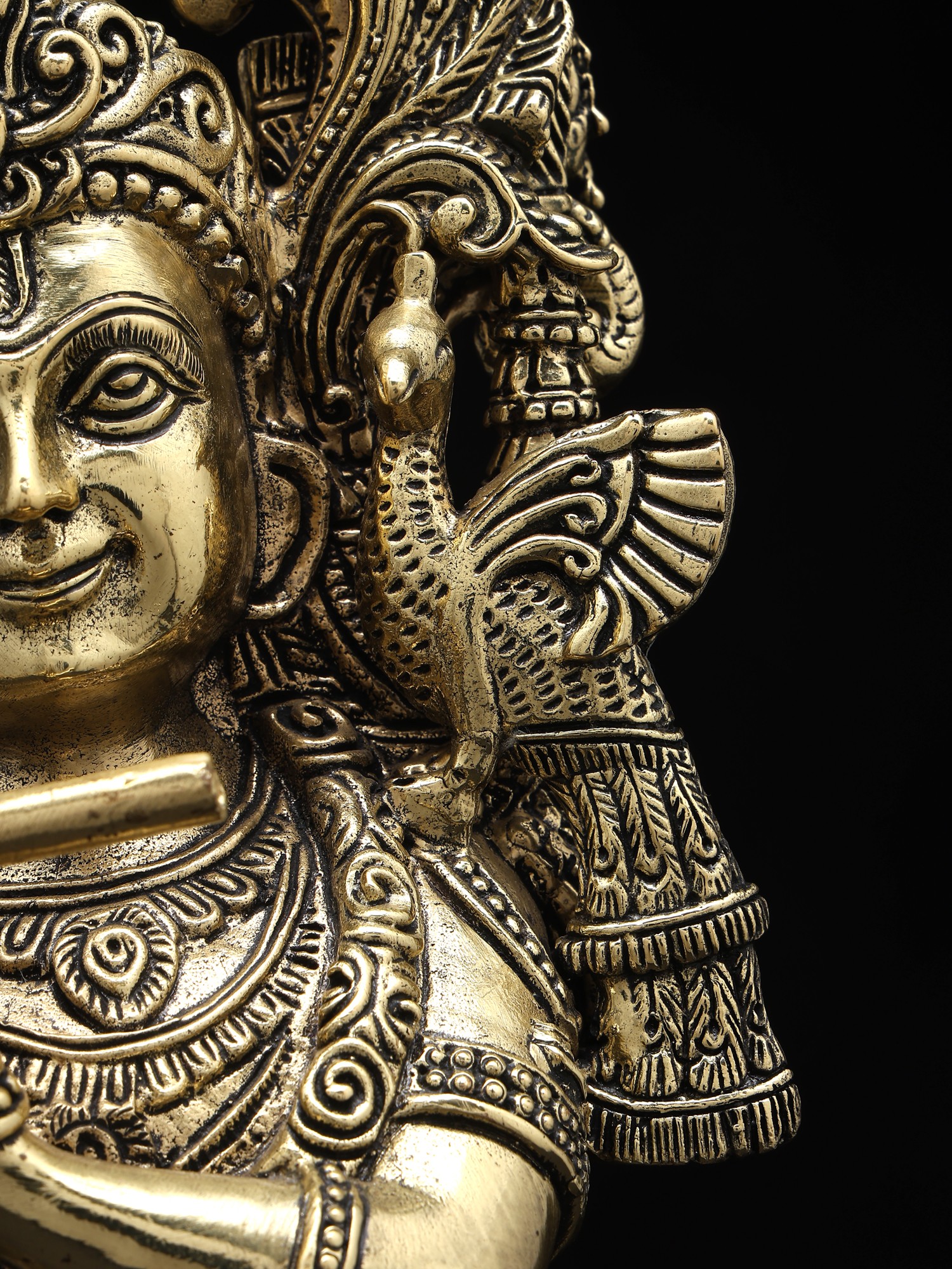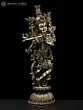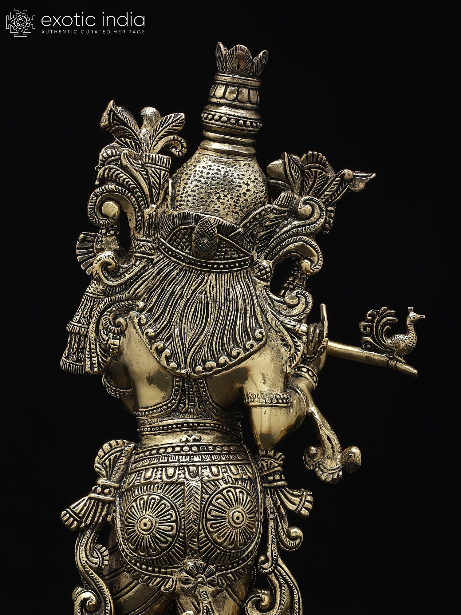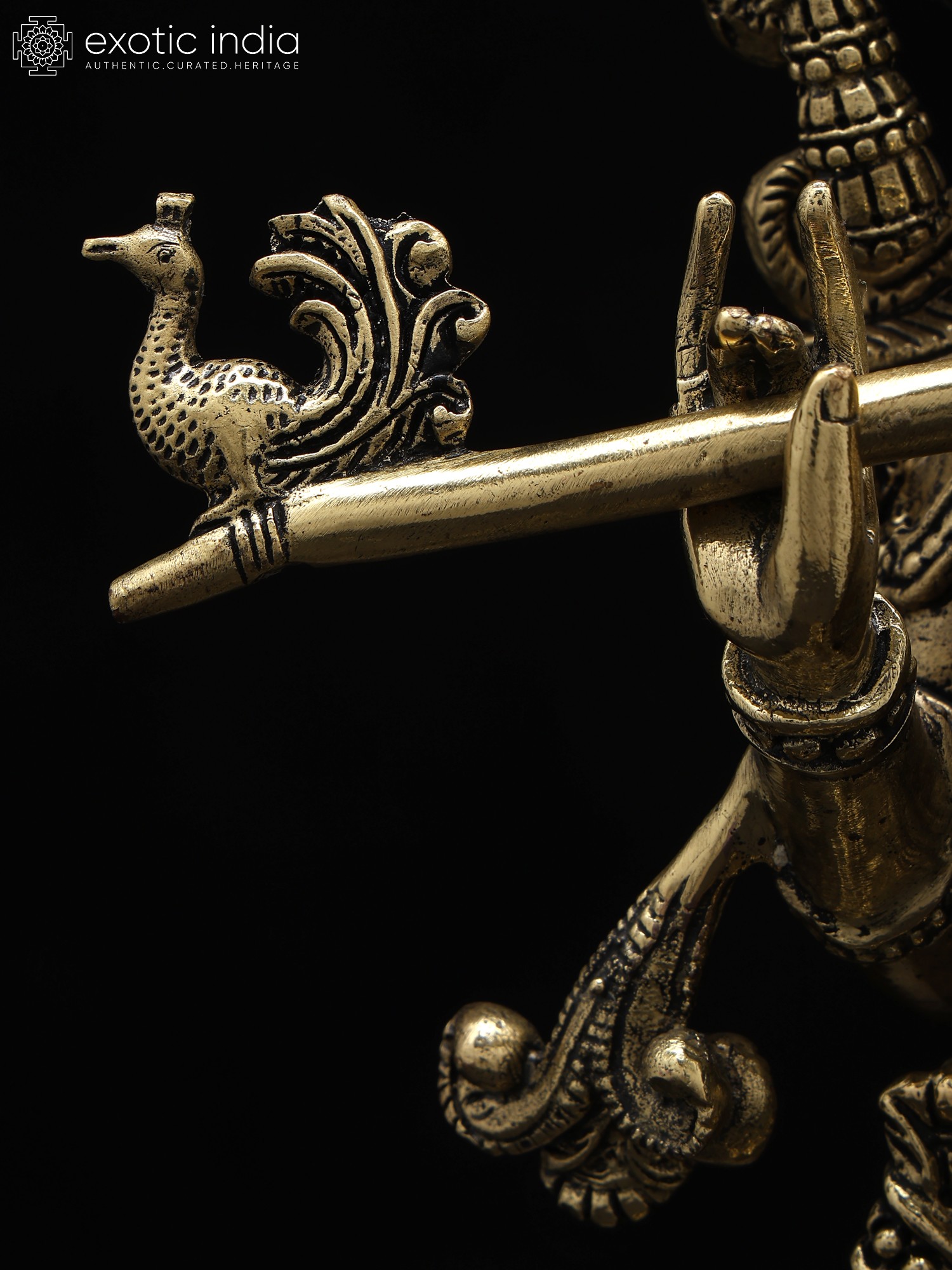 27" Large Fluting Krishna Lamp in Brass | Exquisite Handmade Craft | Authentic Indian Art