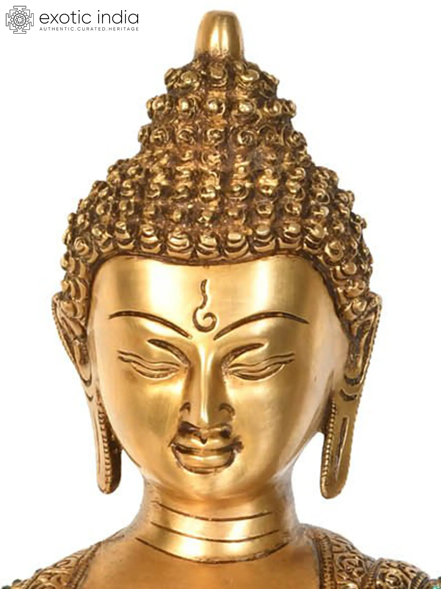 16" Tibetan Buddhist Lord Buddha in Vitark Mudra with Auspicious Mantras on The Back Side In Brass | Handmade | Made In India