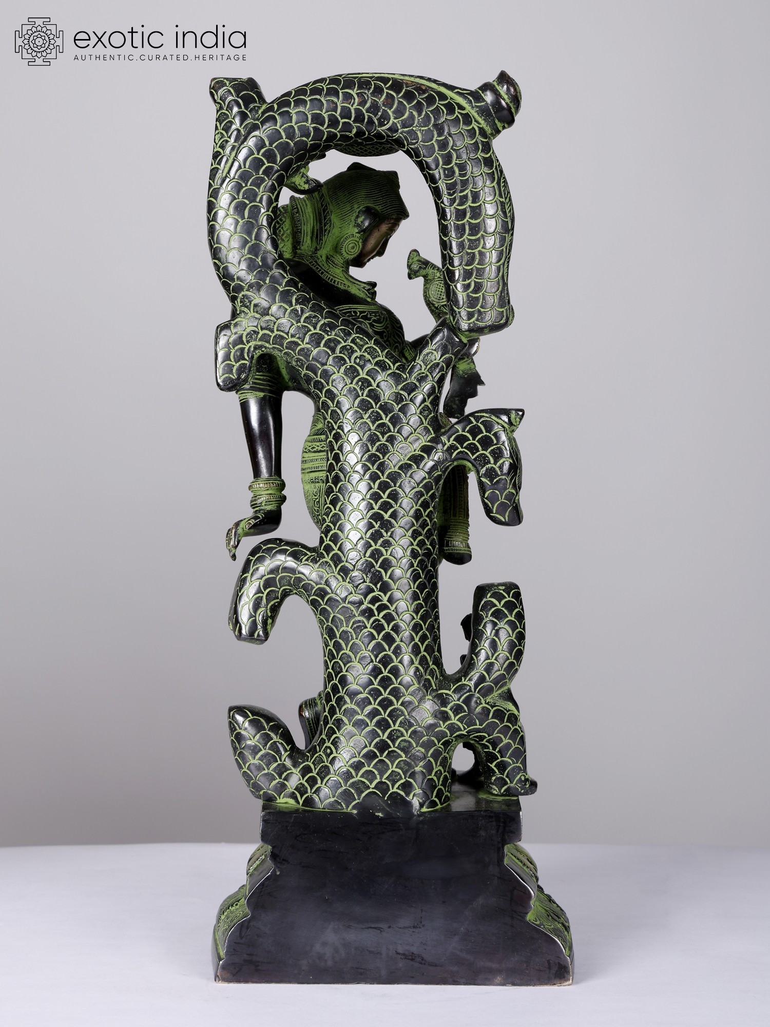 Hiramana reached Ratna Sen’s terrace and speaking to him in his tongue narrated Padmavati’s beauty and convinced him of her love and virtue. Along with a large army, Ratna Sen reached Sinhala Desha and married Padmavati. Maybe, when conceiving his model of sublime beauty in the form of this nymph, the artist of this metal cast had Padmavati’s vision in his imagination. With its well-composed figure and saintly bearing the parrot looks much like the mythical Hiramana.