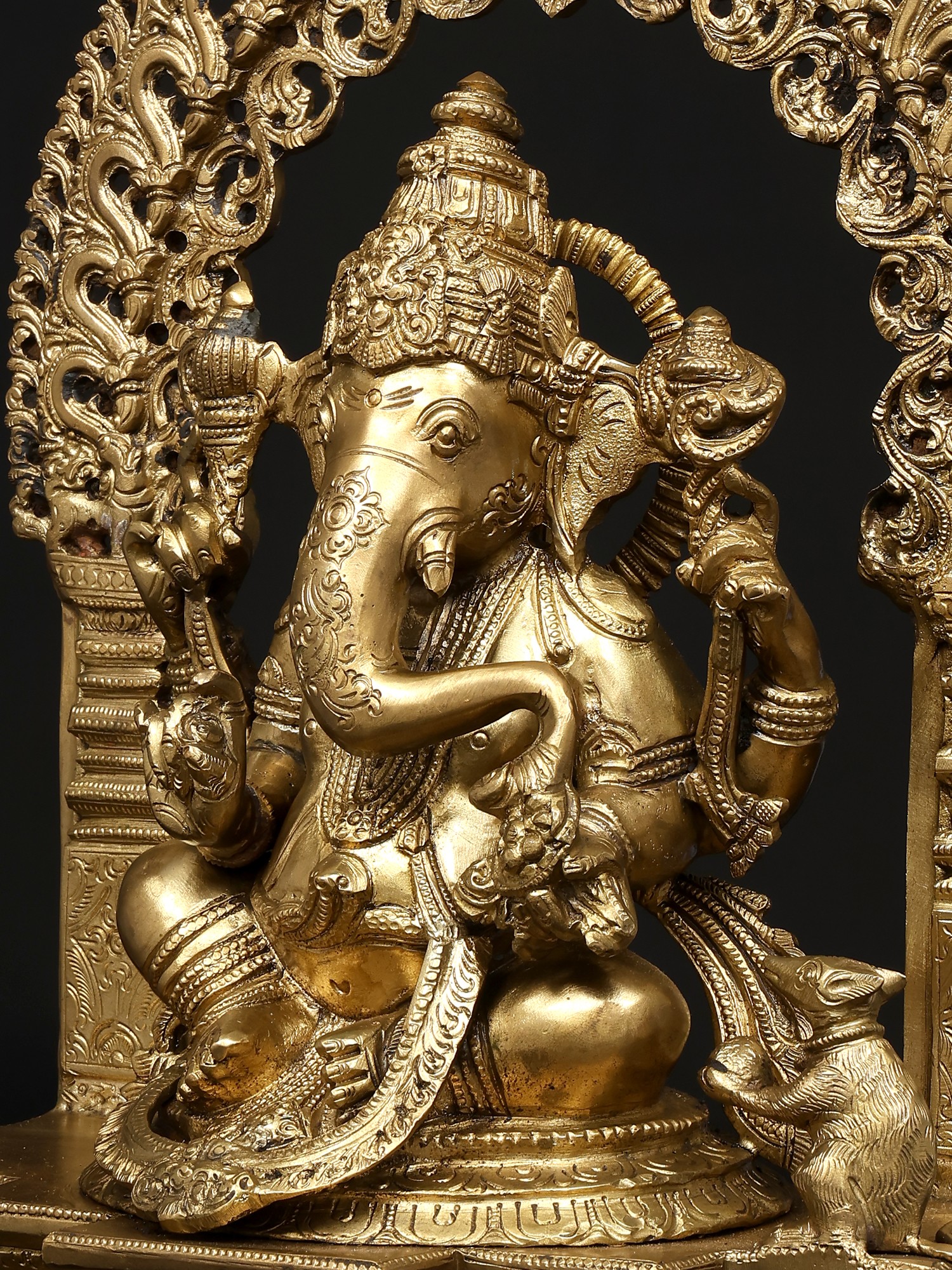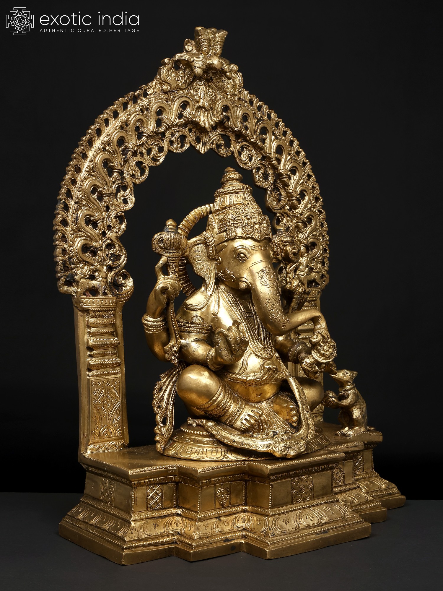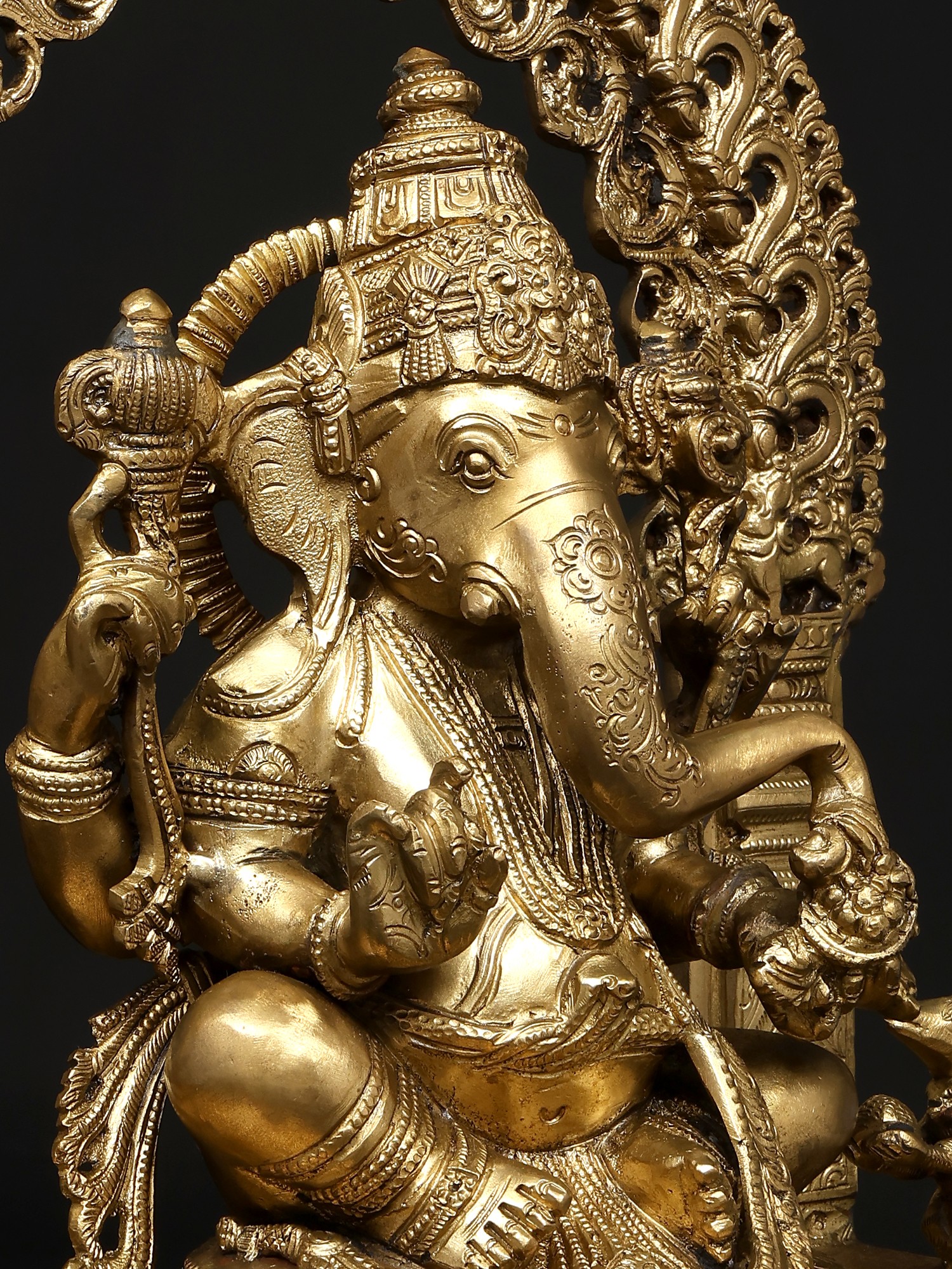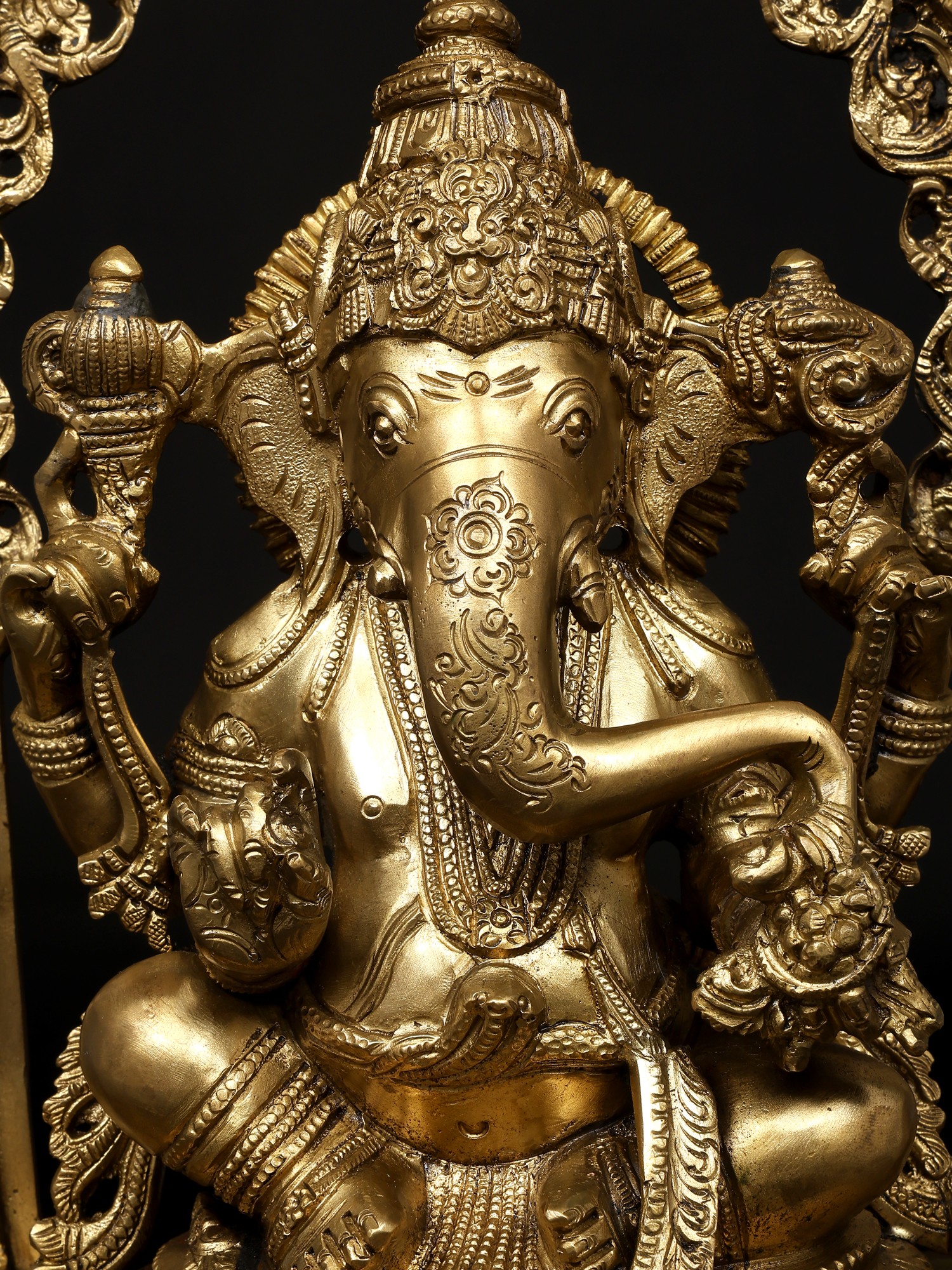 24" Chaturbhuja Lord Ganesha with Kirtimukha Arch | Bronze Statue