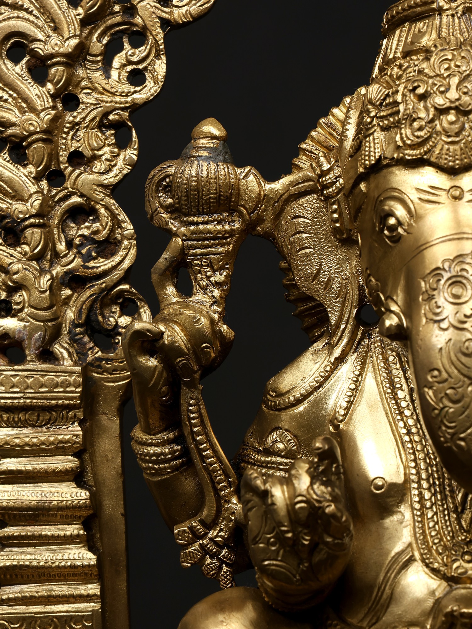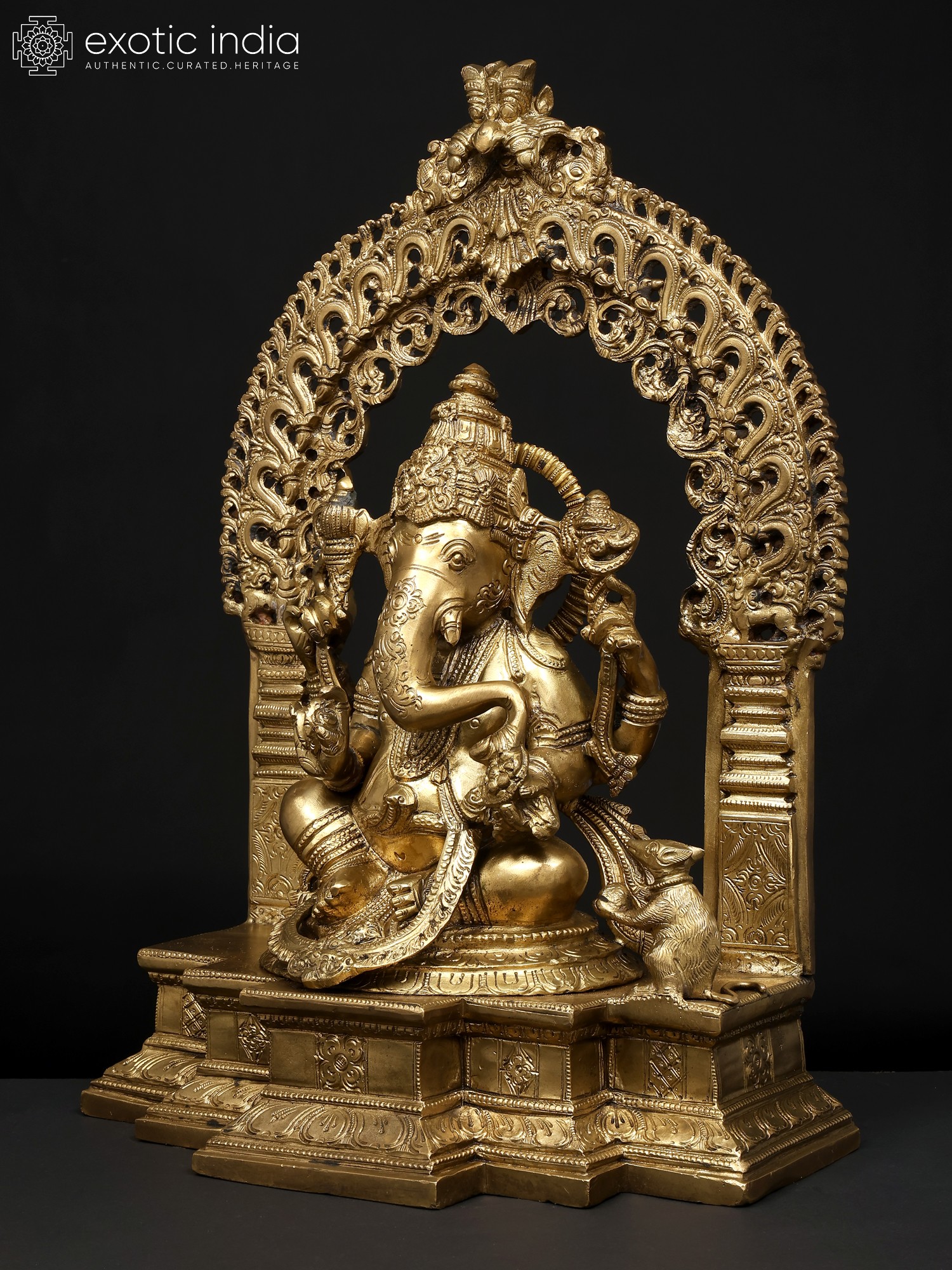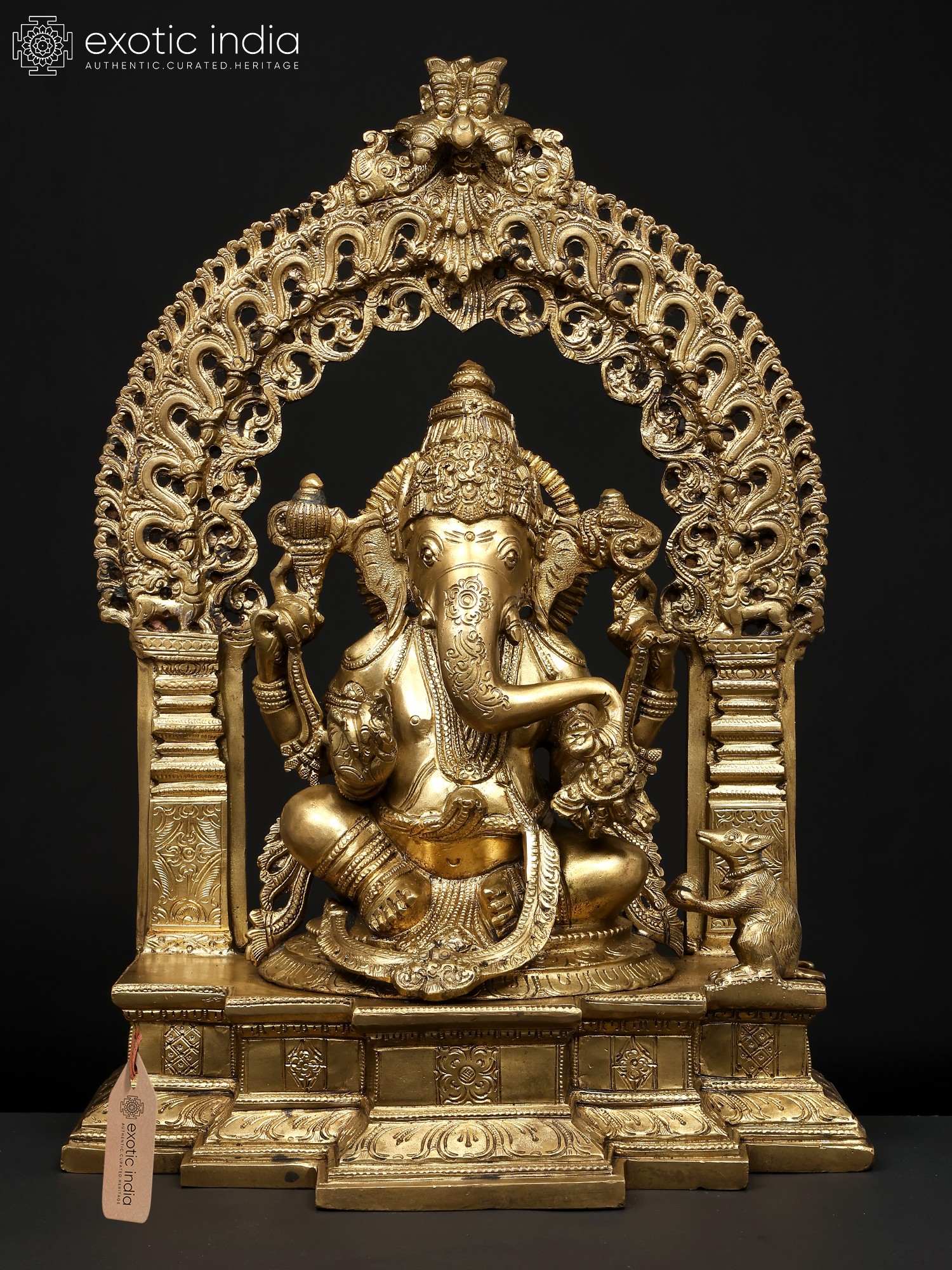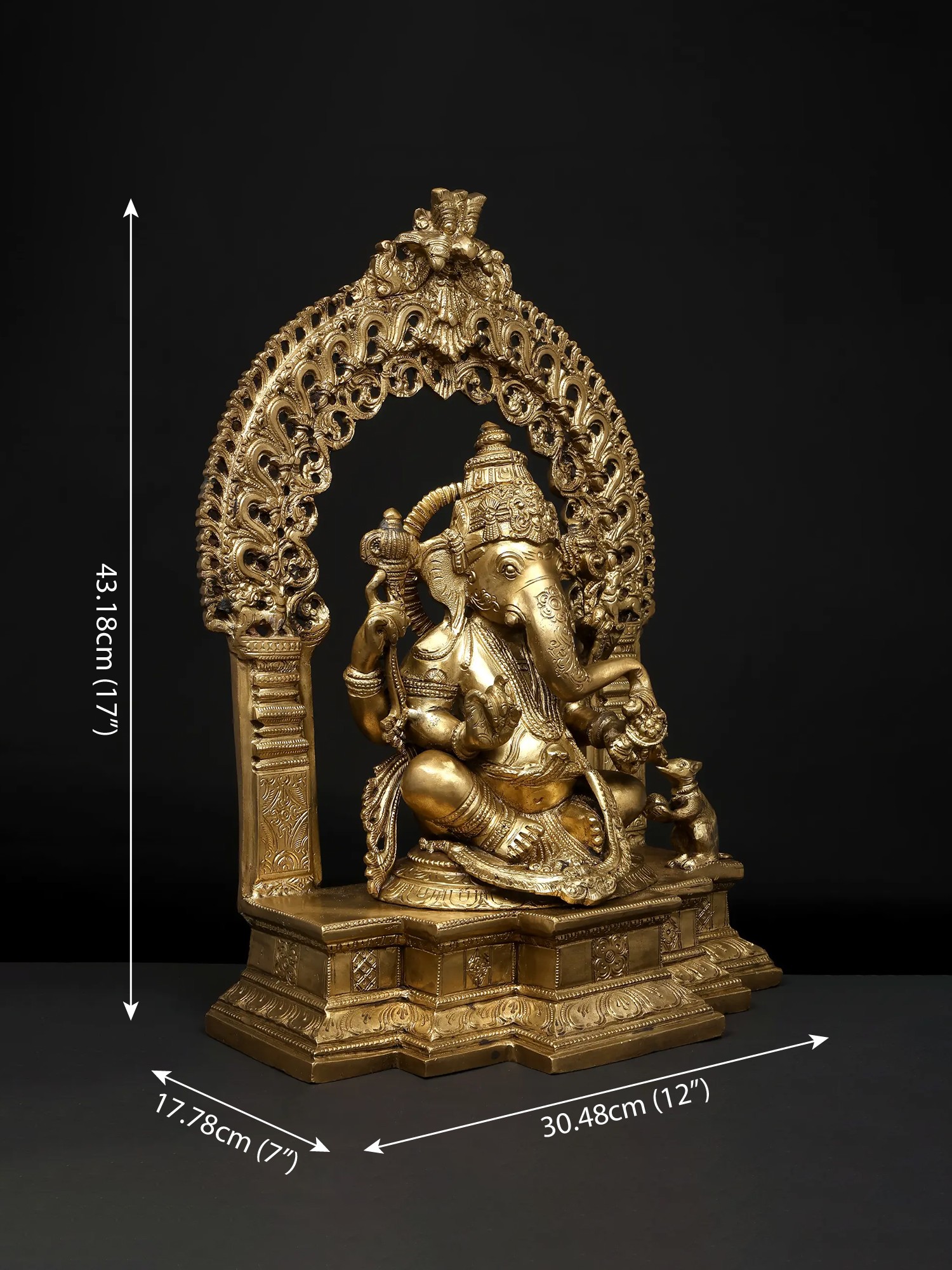 24" Chaturbhuja Lord Ganesha with Kirtimukha Arch | Bronze Statue