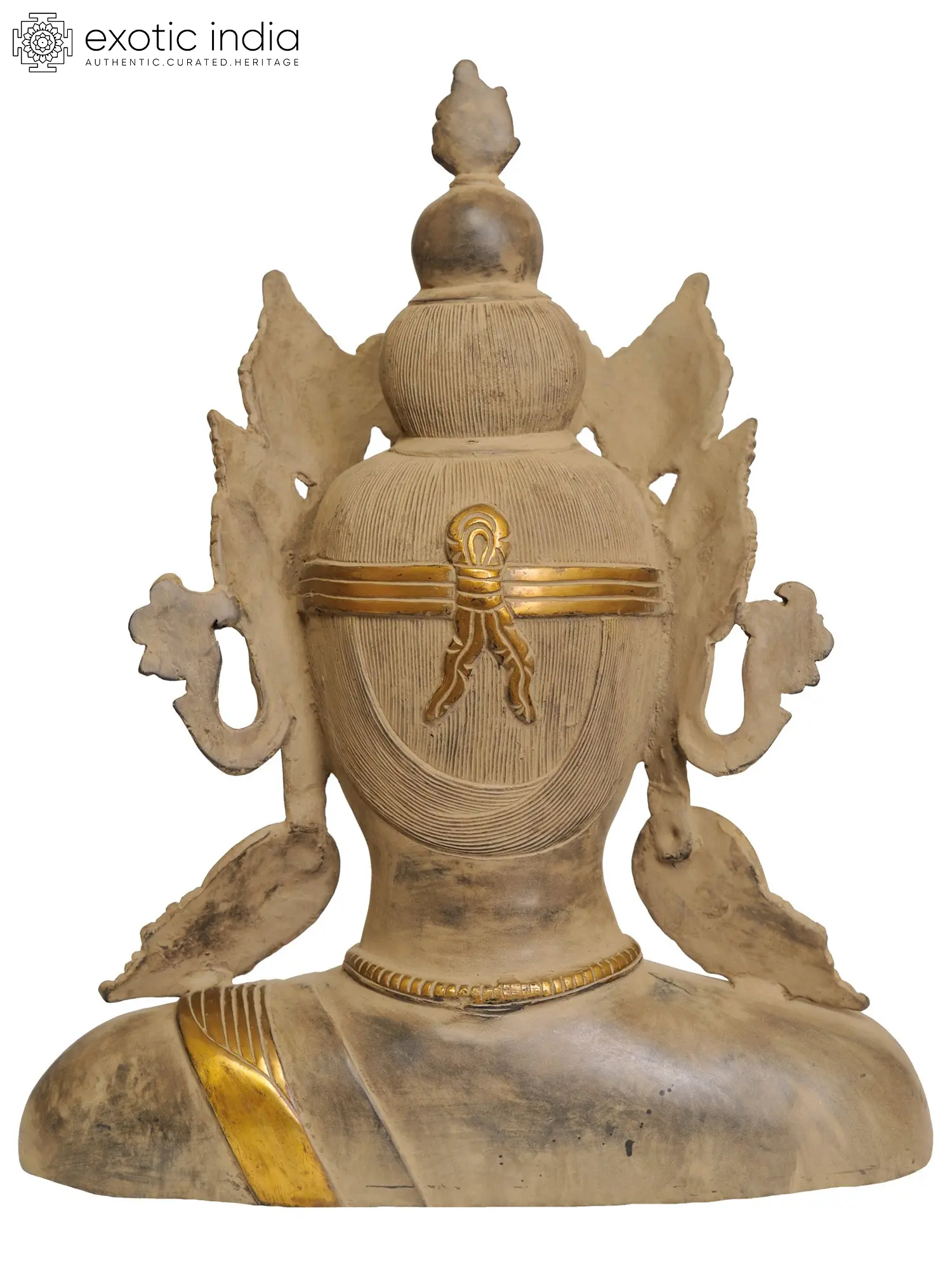 17" Crown Buddha Bust (Tibetan Buddhist Deity) In Brass | Handmade | Made In India