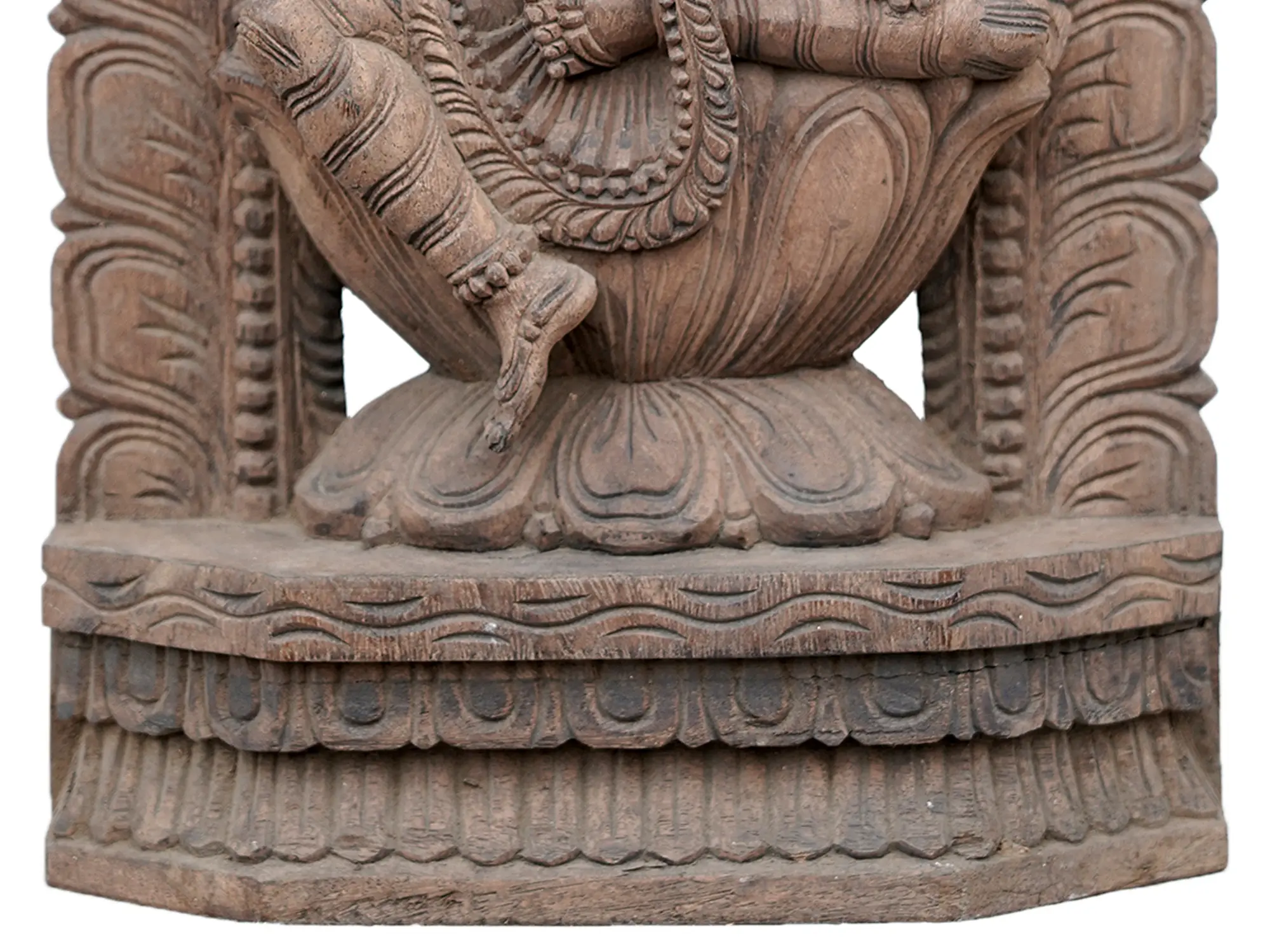 24" Blessing Goddess Lakshmi Seated on Lotus | Wood Carving
