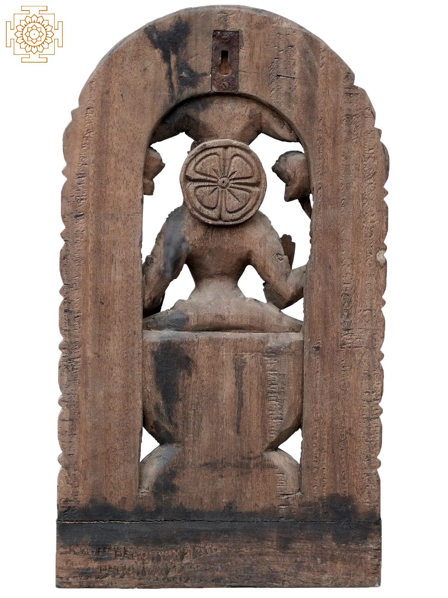 46" Lord Narasimha Seated on Sheshnag with Devi Lakshmi | Wood Carving