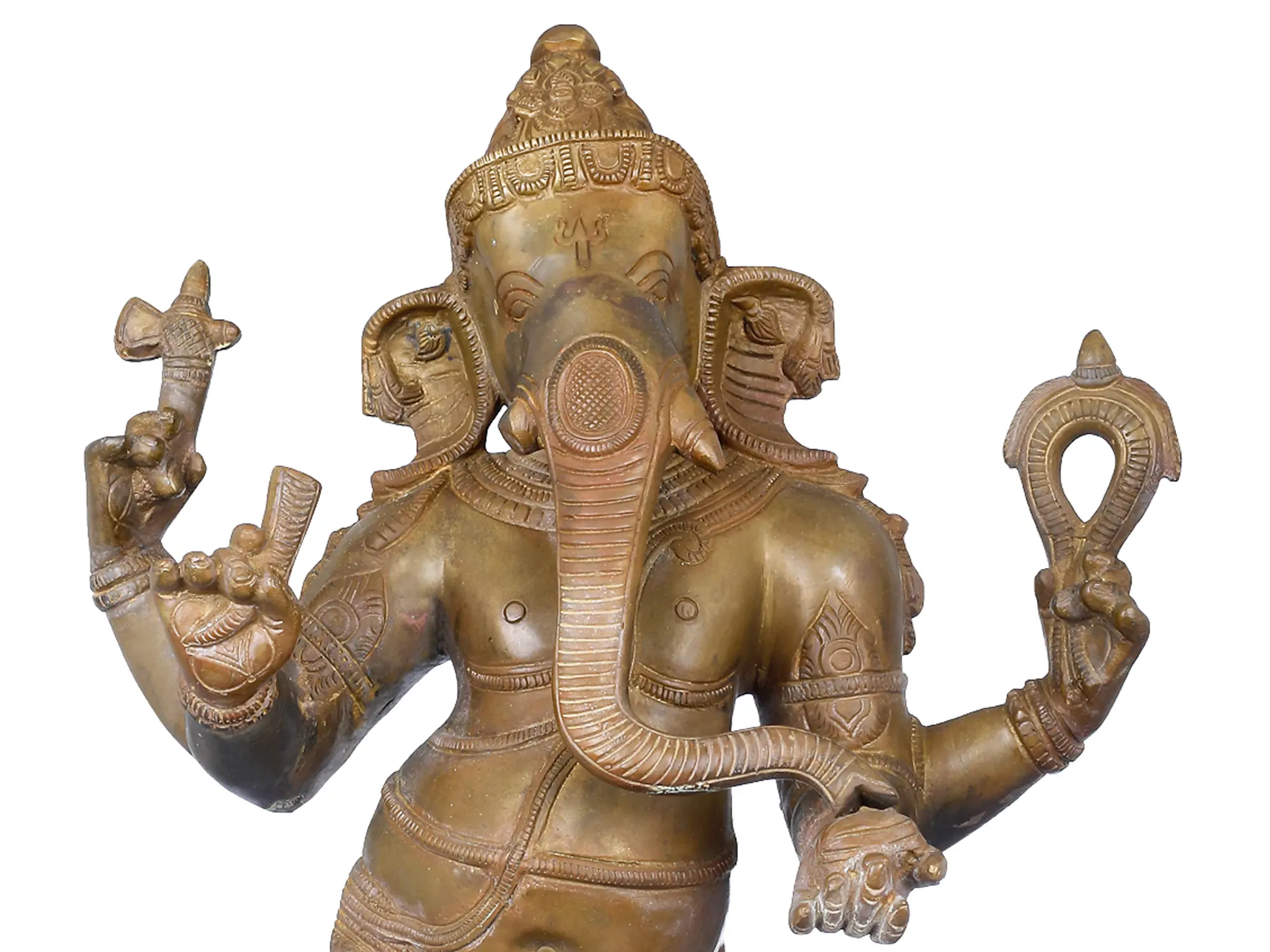 Embodying Divine Grace: A Standing Ganesha Brass Sculpture