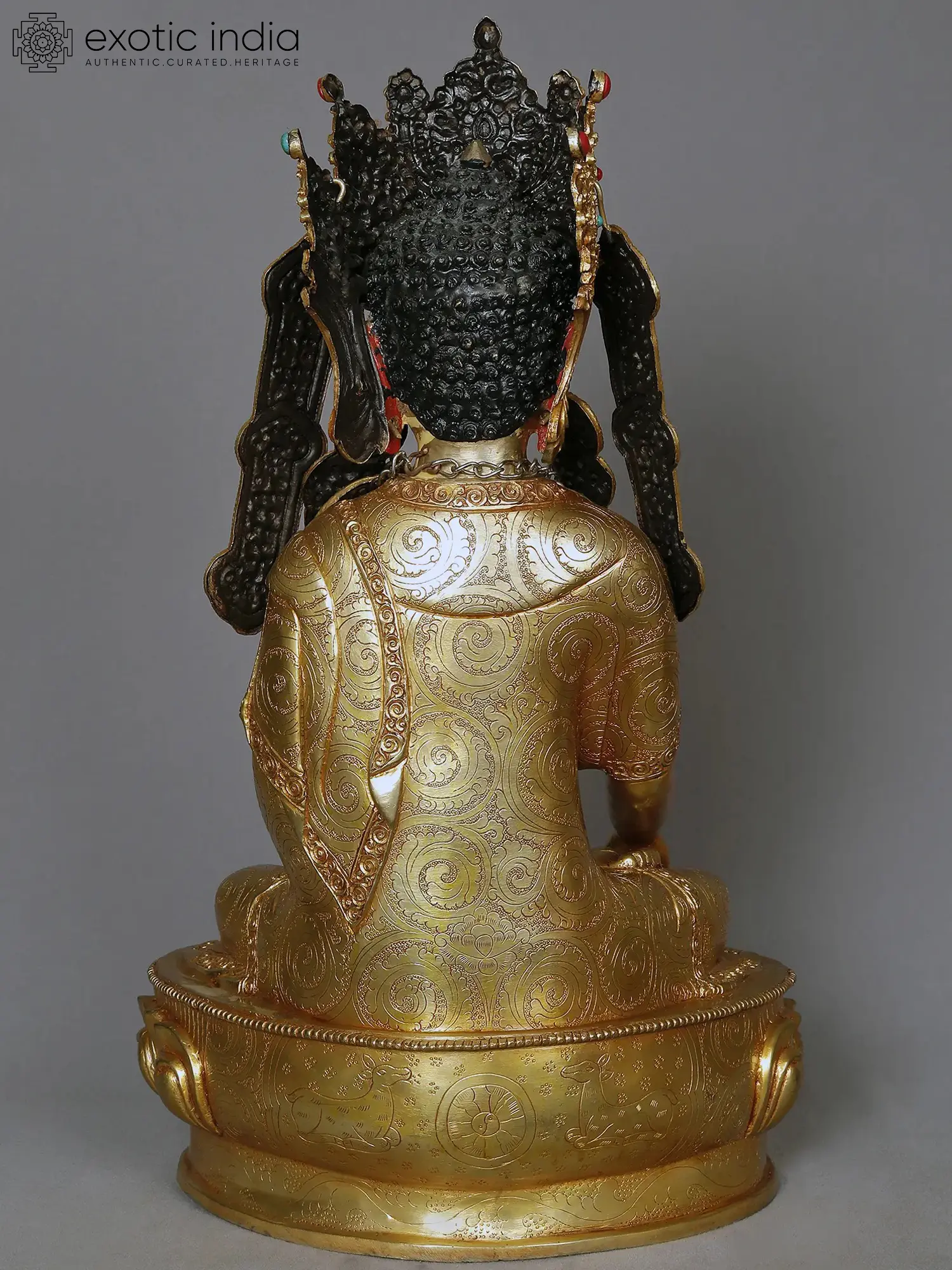 The essence of the historical Buddha during the early medieval era. He is depicted in a profound yogic meditation pose, conveying a sense of deep introspection and tranquility. His right hand is gracefully lowered, forming a gesture directed towards the Earth Goddess. This pivotal moment symbolizes the period just before his enlightenment, wherein he demonstrated unwavering resistance to the allure of desires and temptations.