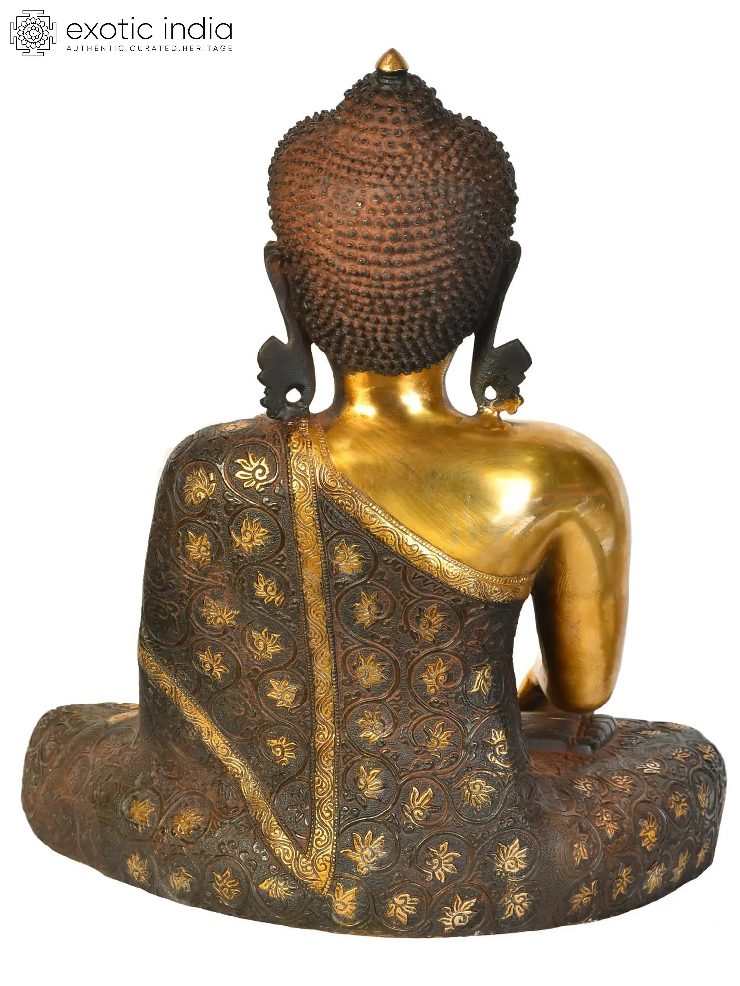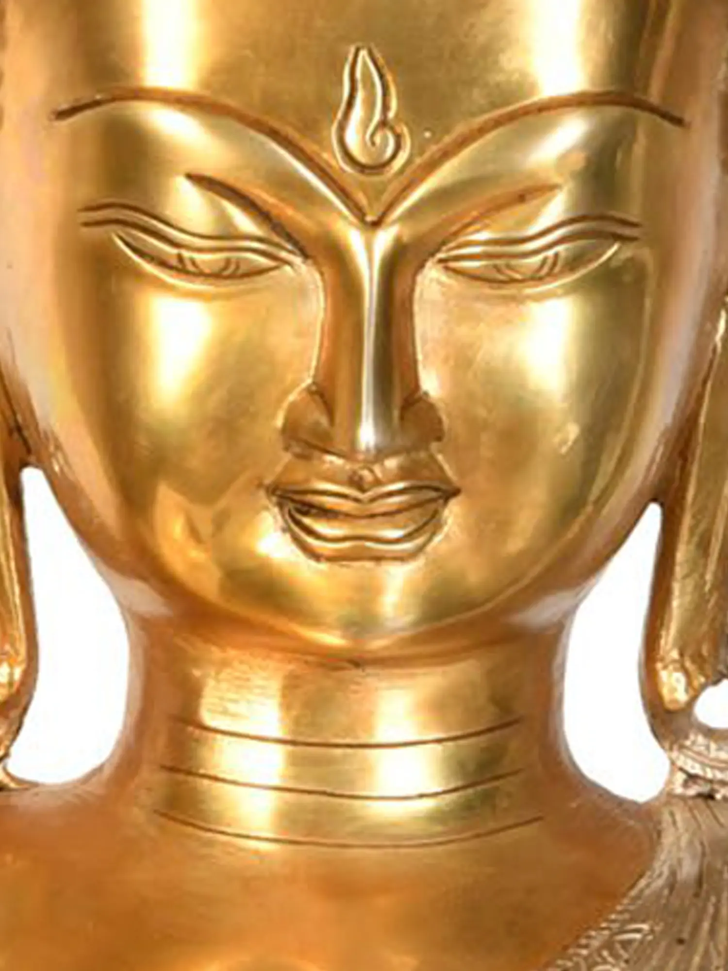 17" Lord Buddha Wearing a Carved Robe (Tibetan Buddhist) In Brass | Handmade | Made In India