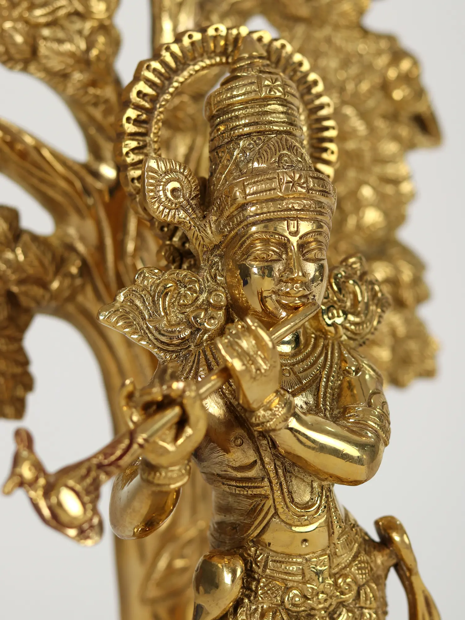 28" Large Size Lord Krishna with a Cow and His Flute In Brass | Handcrafted In India