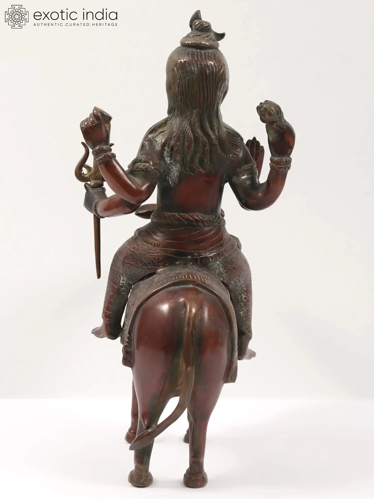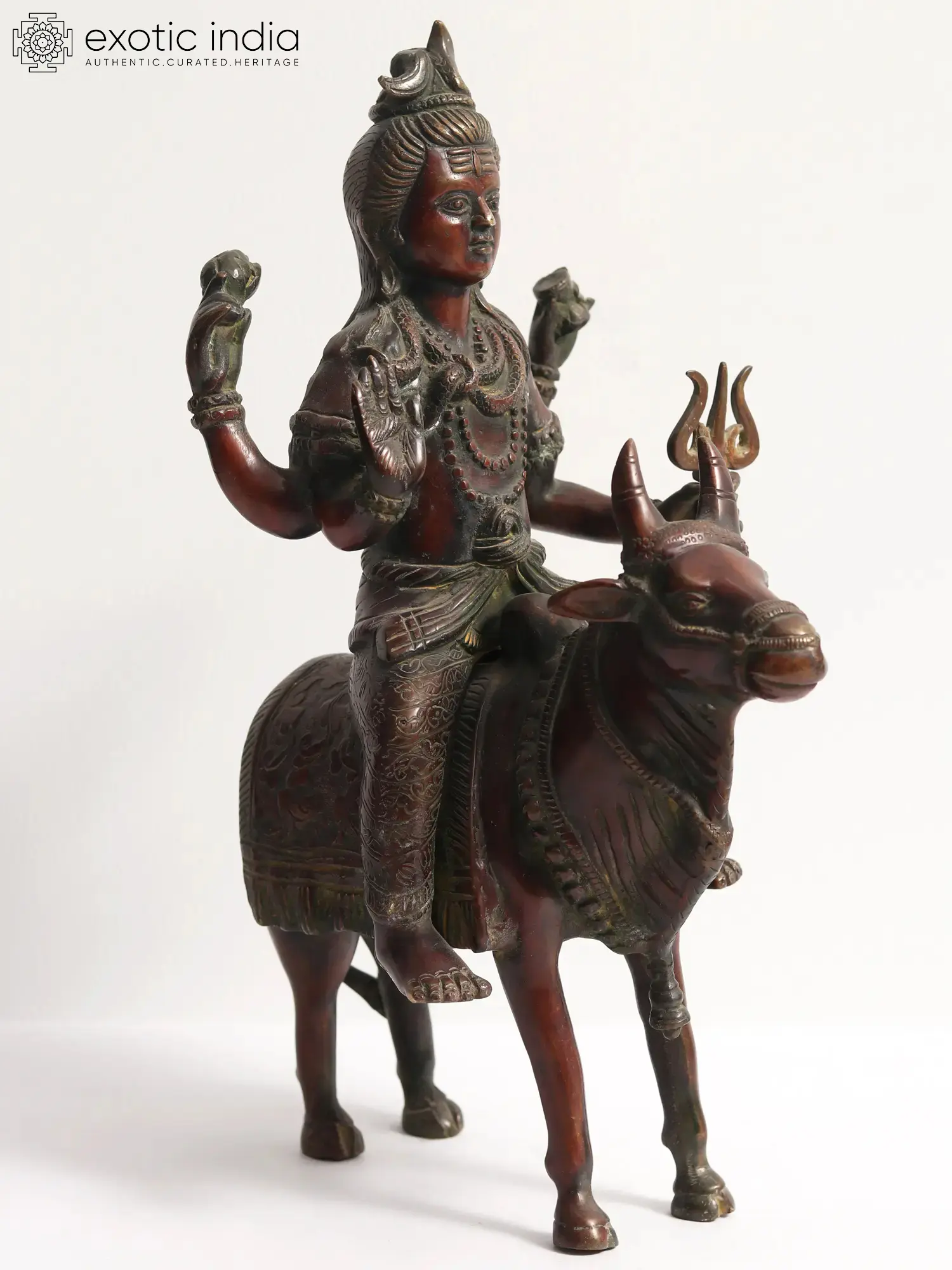 This brass statue of Lord Shiva seated on Nandi is a notable item that depicts Lord Shiva in his original form. The Adi Yogi riding his favourite mount embodies heavenly wisdom and cosmic harmony in gorgeous form. This artistic masterpiece serves as a reminder of the inseparable relationship between the individual soul (Atman) and the global consciousness (Brahman). Its presence inspires one to seek inner peace, enlightenment, and the timeless realisation of everlasting truth.