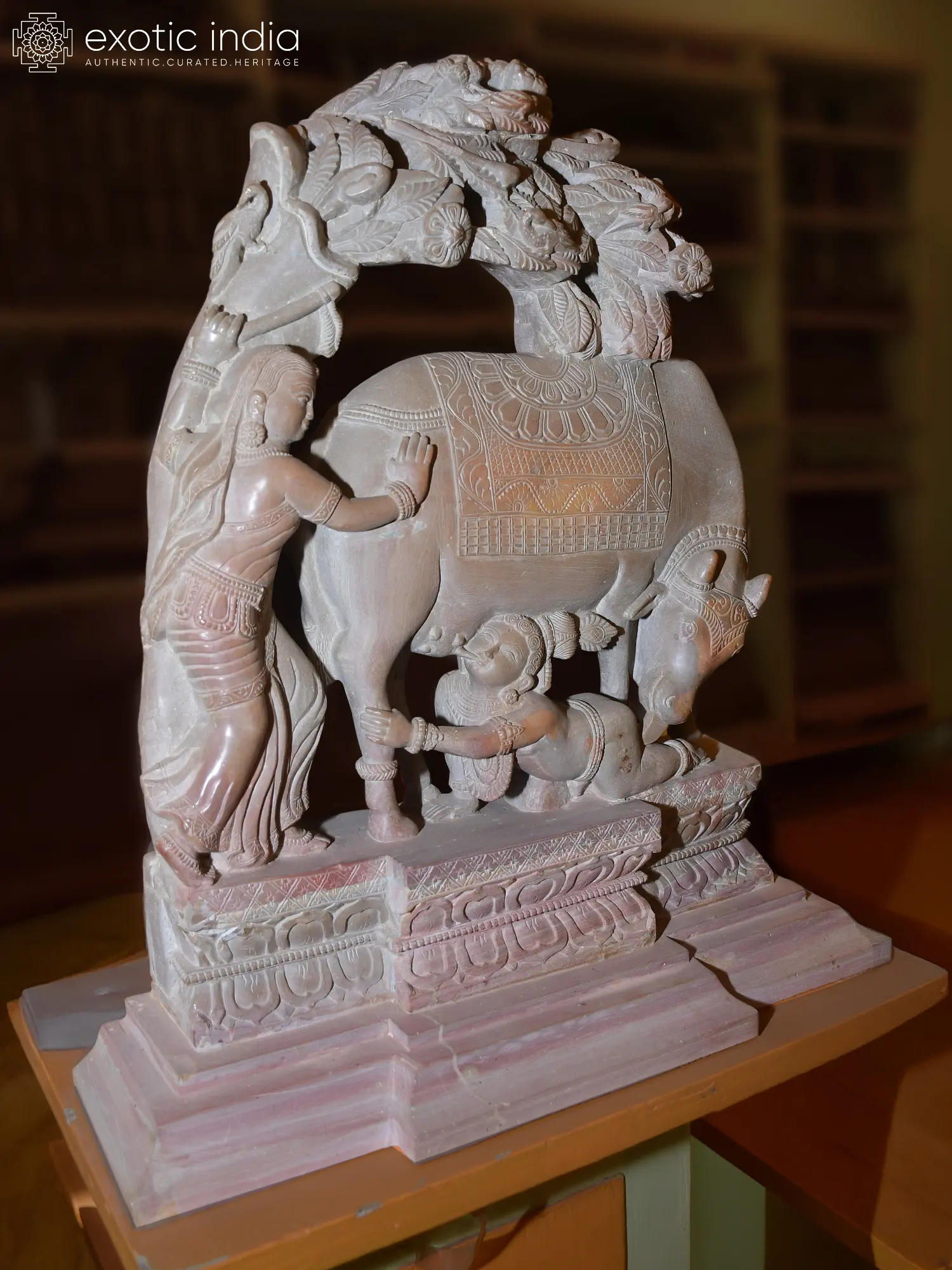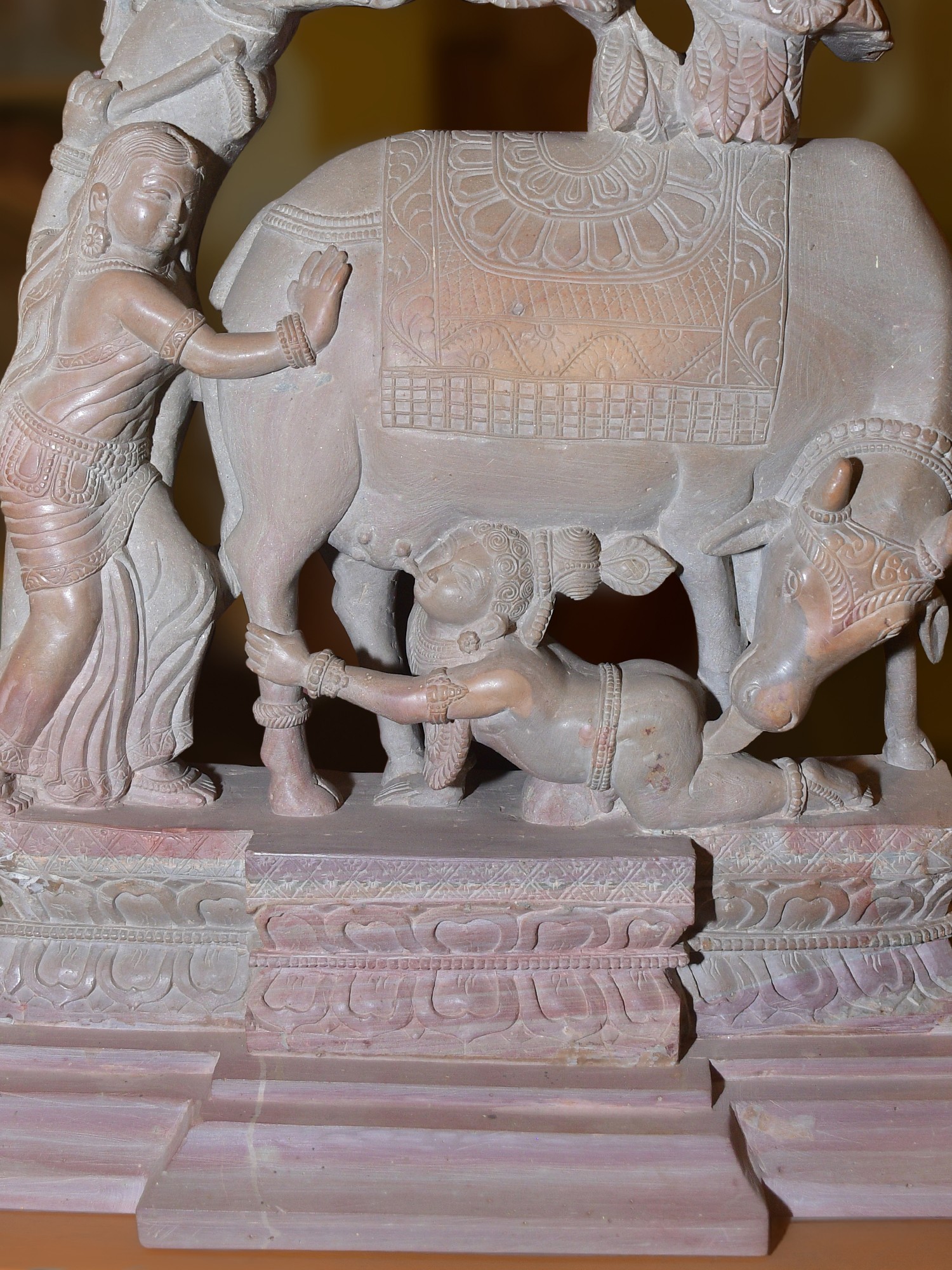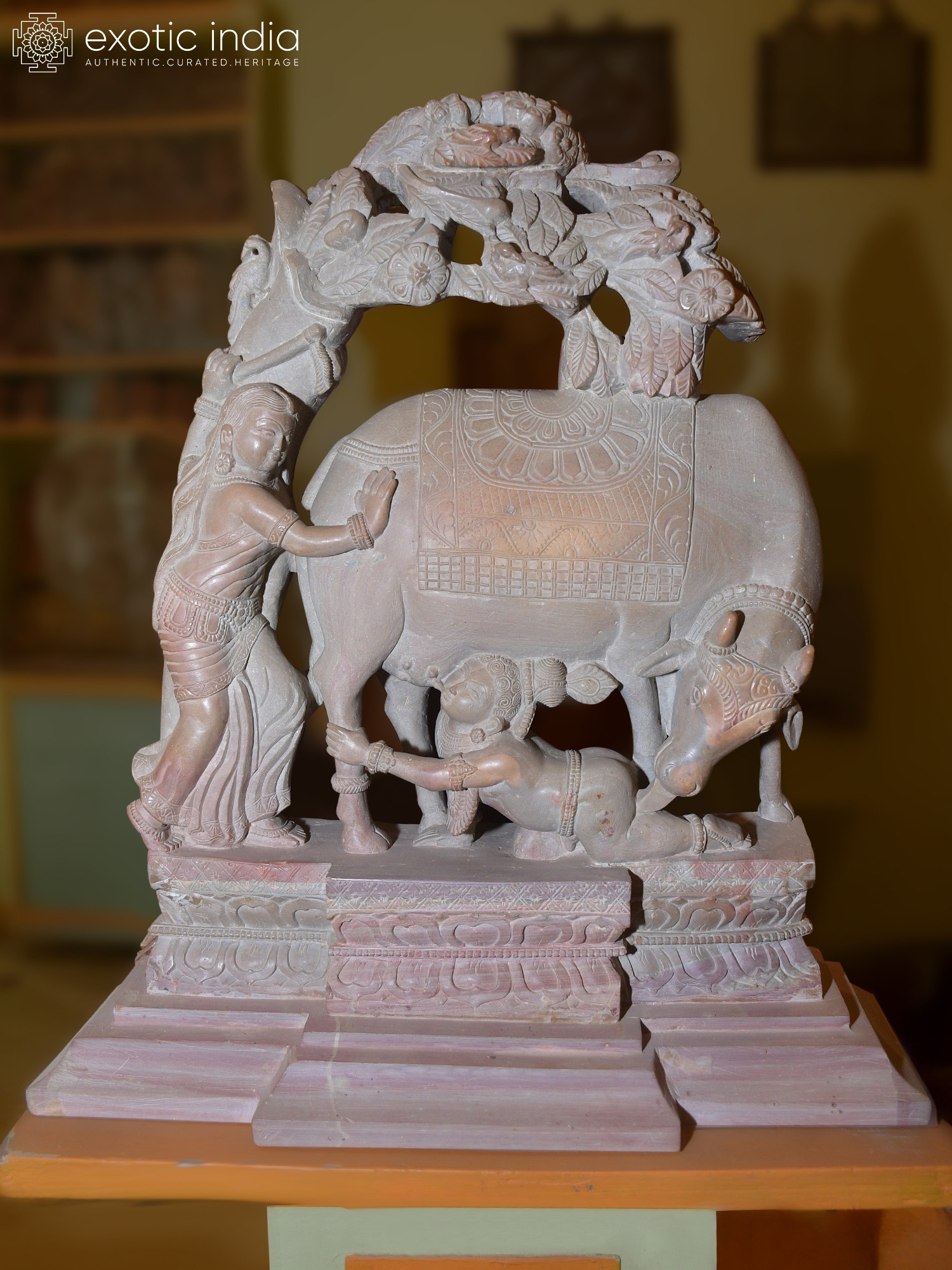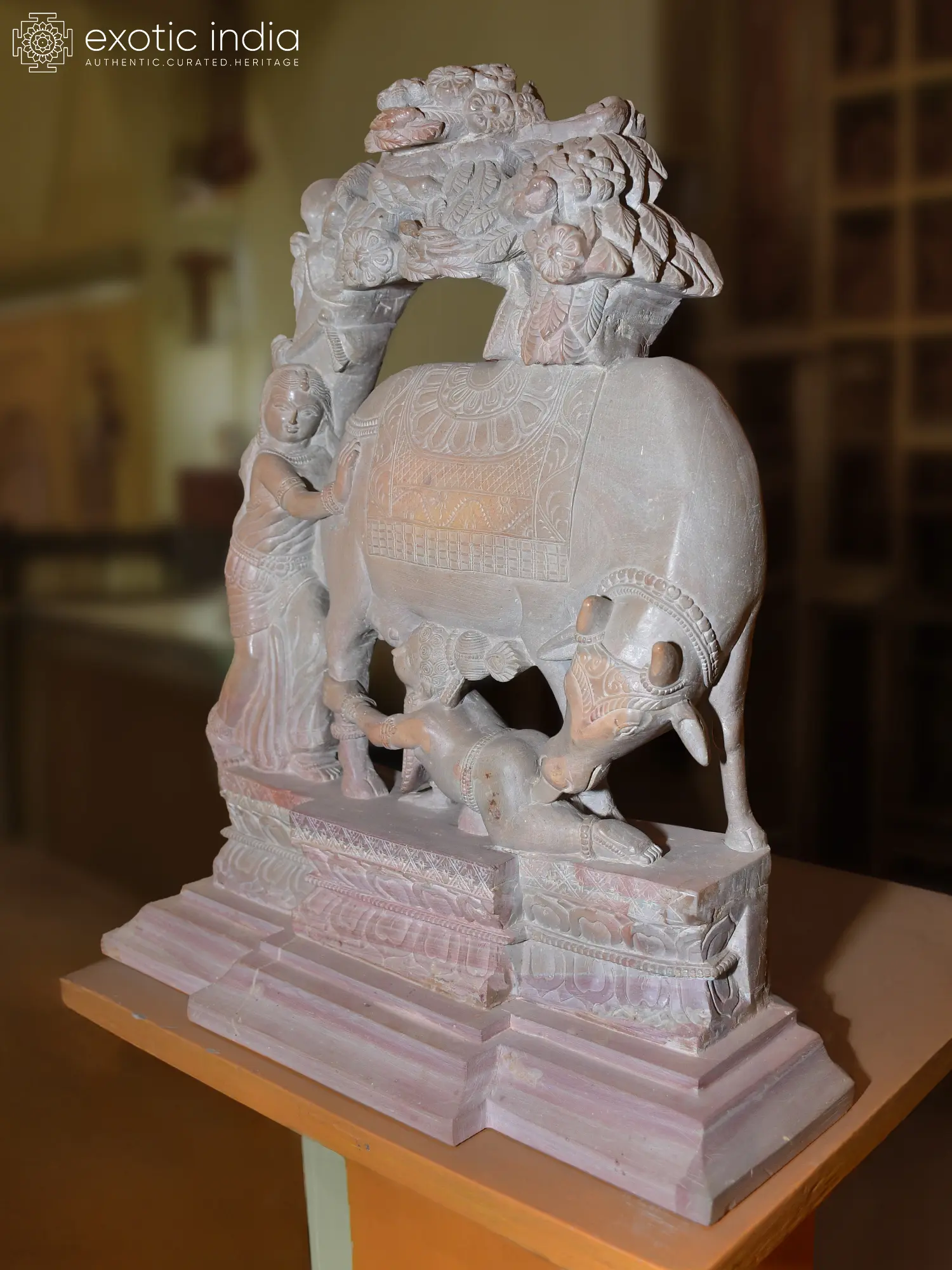 5" Small Superfine Goddess Kamdhenu on Wood Base | Brass Sculpture