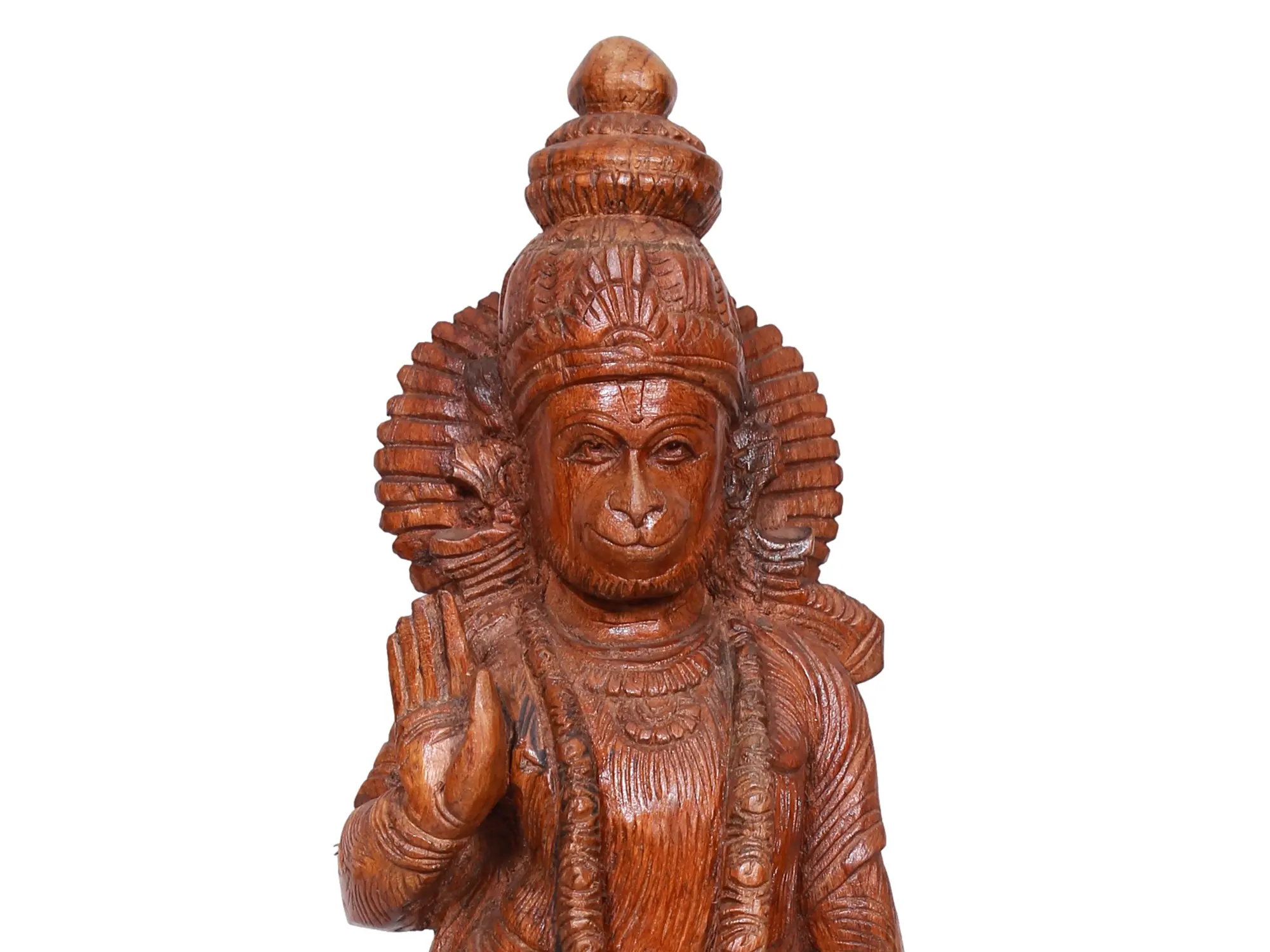 17" Wooden Standing Lord Hanuman in Blessing Posture