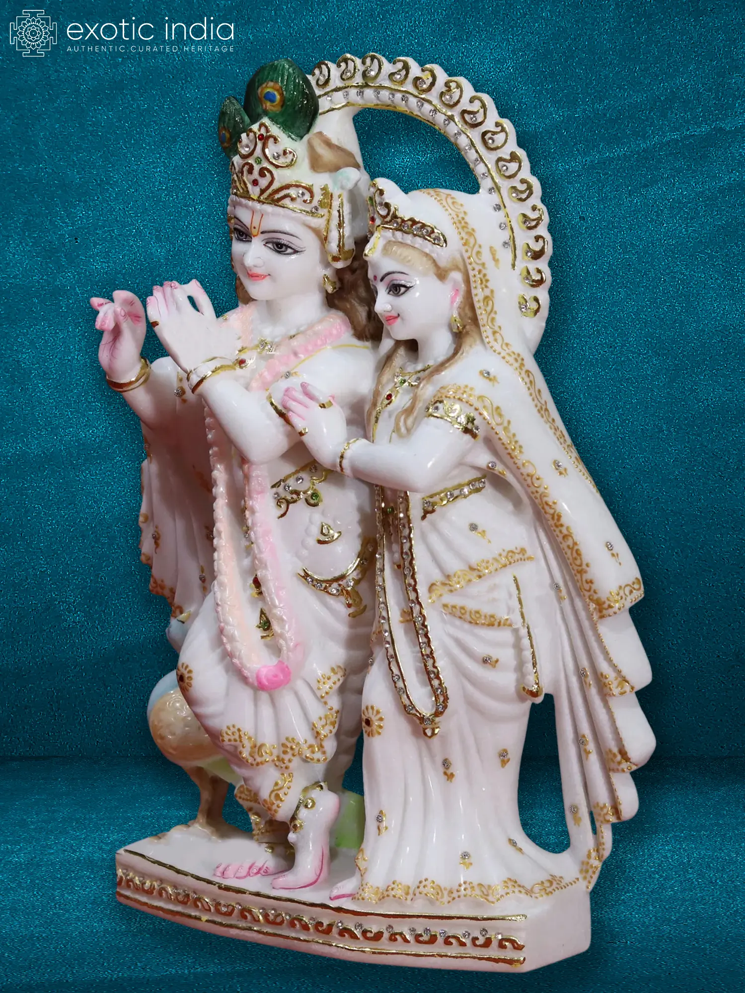 18" Marble Statue Of Radha And Krishna | Super White Makrana Marble Statue