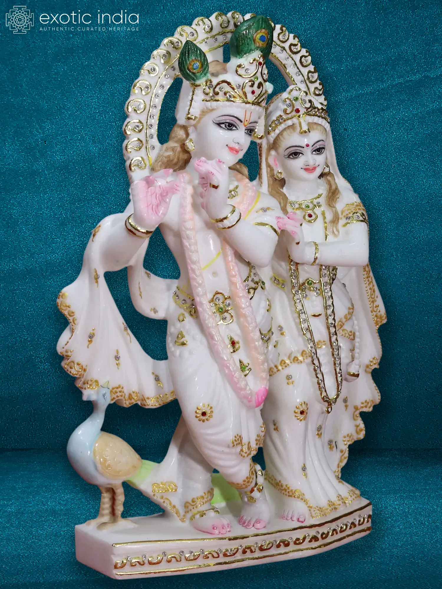 24" Beautiful Statue Of Radha-Krishna | White Makrana Marble Statue