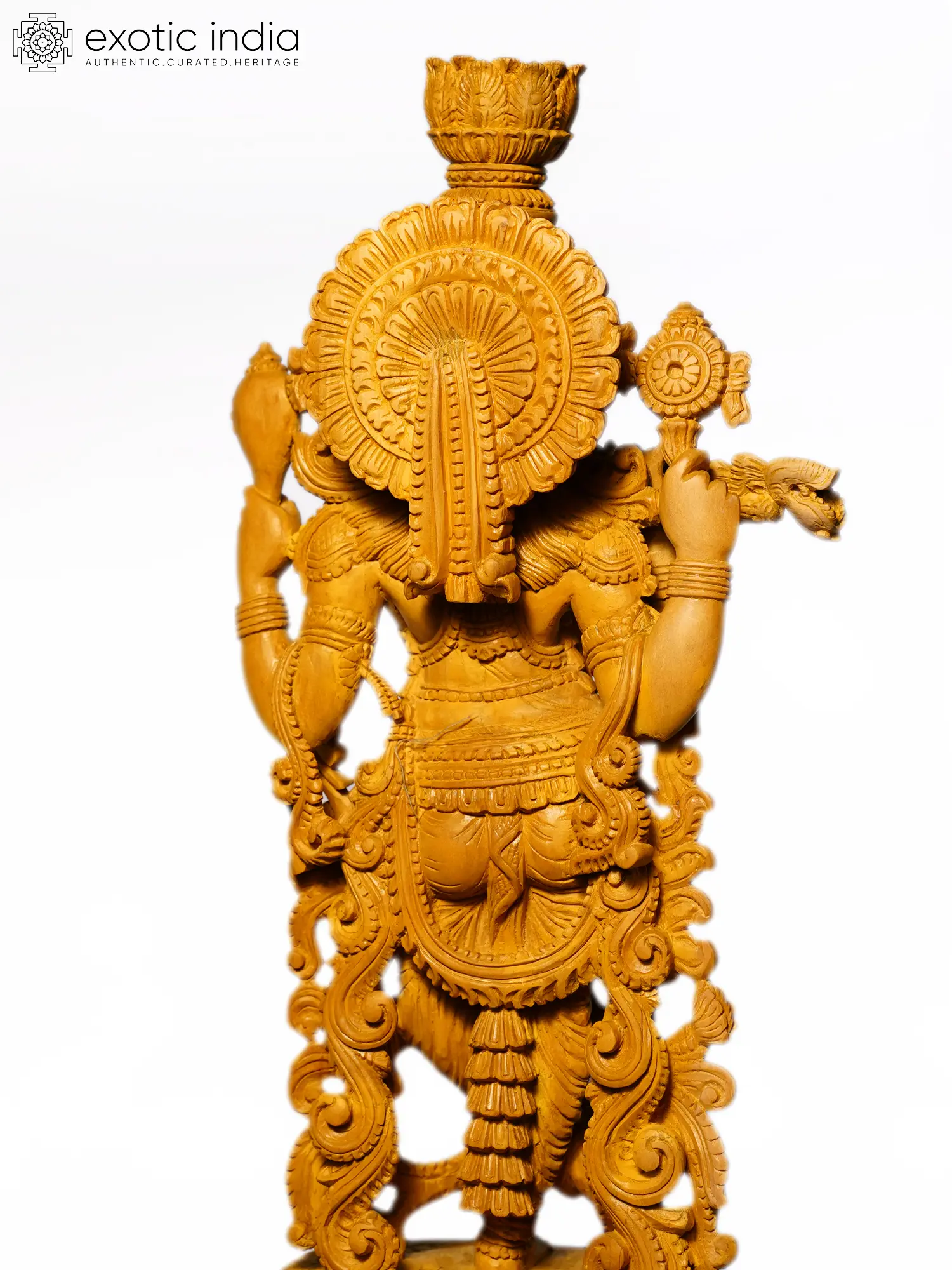 9" Standing Lord Krishna Playing Flute | Sandalwood Carved Statue