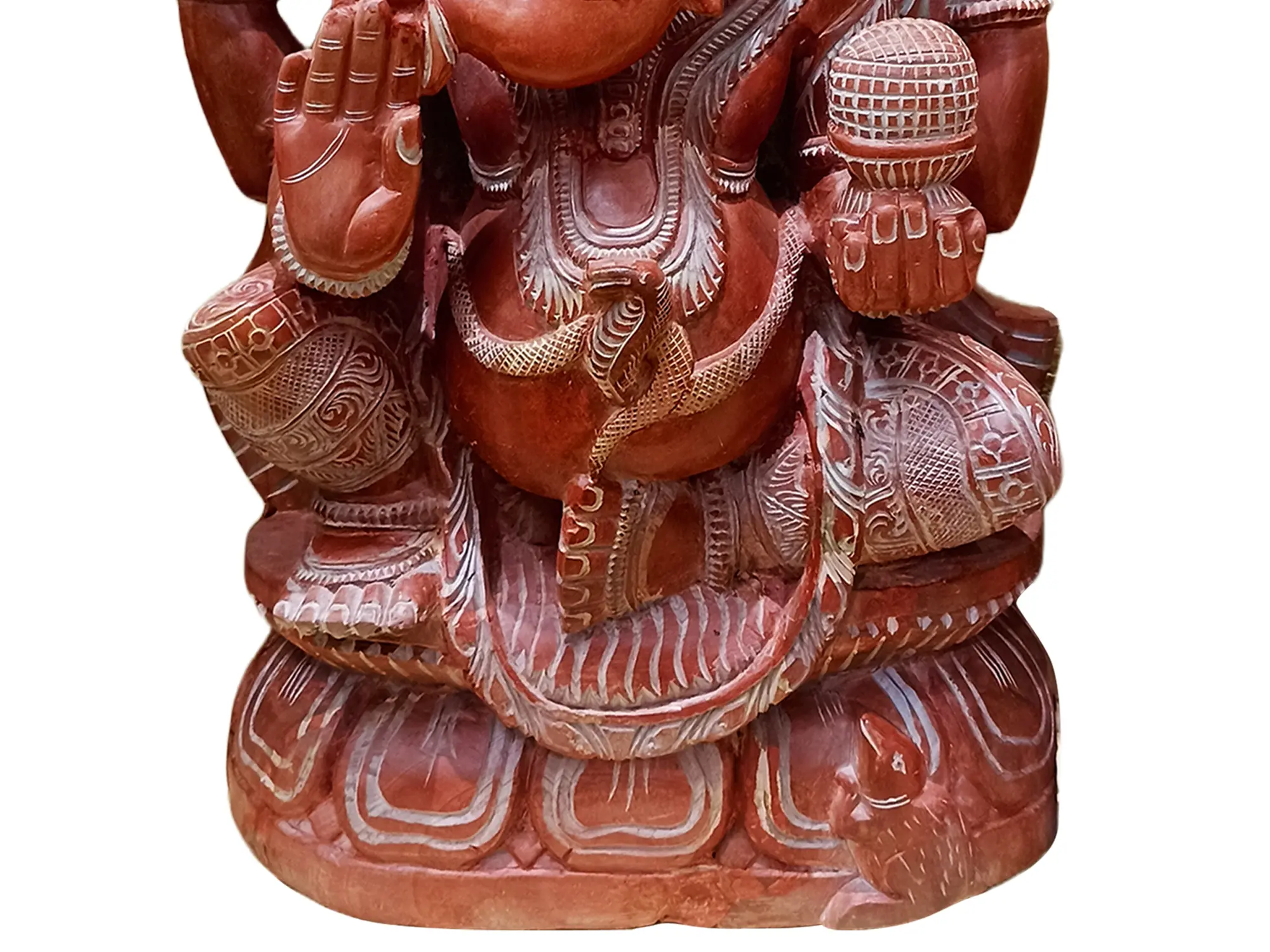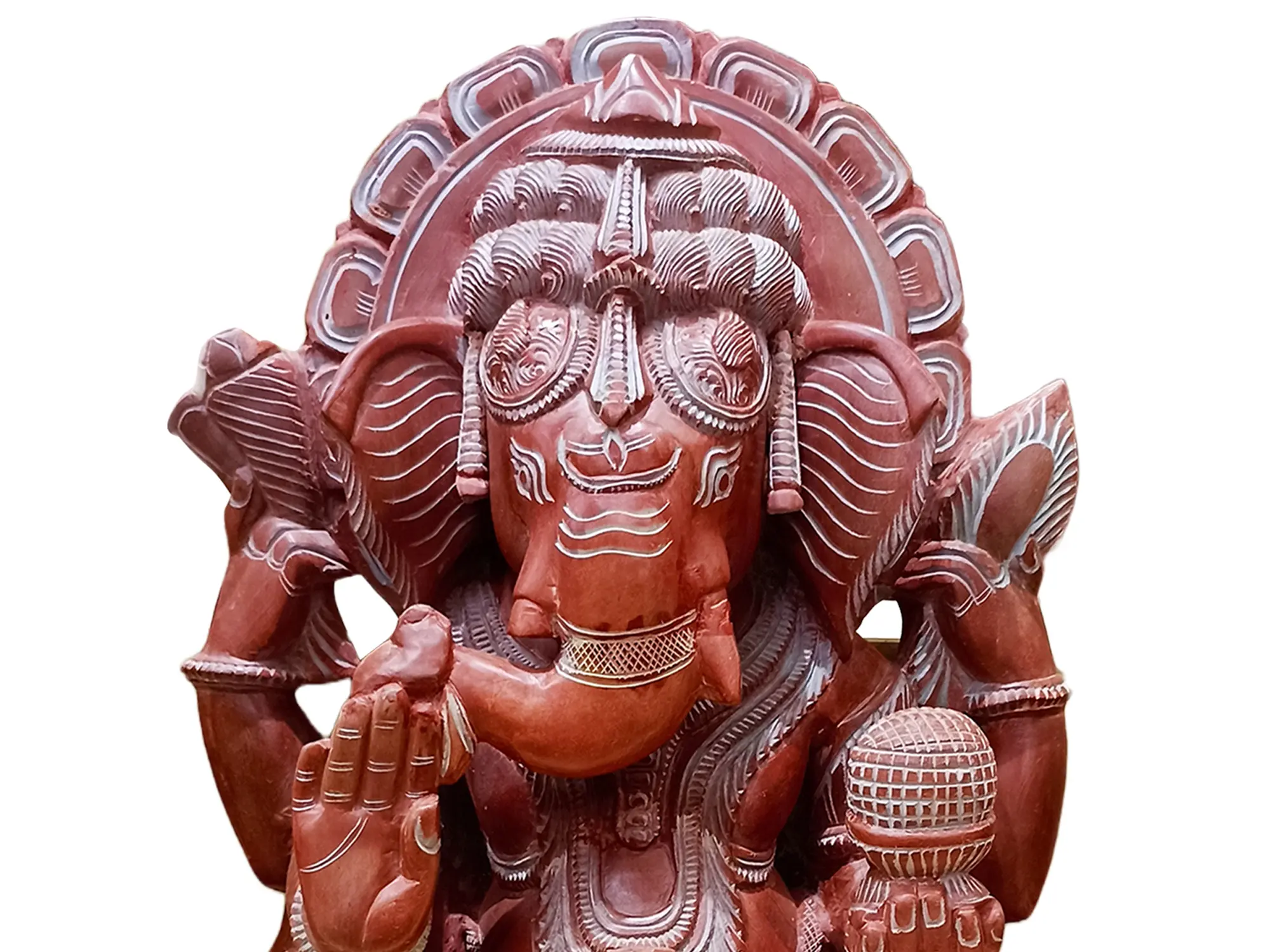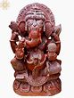 72" Large Wooden Ten Hands Sitting Lord Ganesha Idol