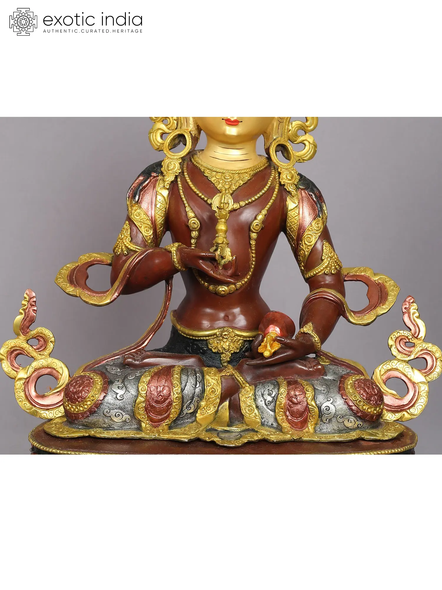 Vajrasattva transcends the concept of ego, representing a state where there's no "who" or "what." In ultimate reality, Vajrasattva is indistinguishable from any other Buddha. Depicted holding a vajra and bell in a crossed embrace,