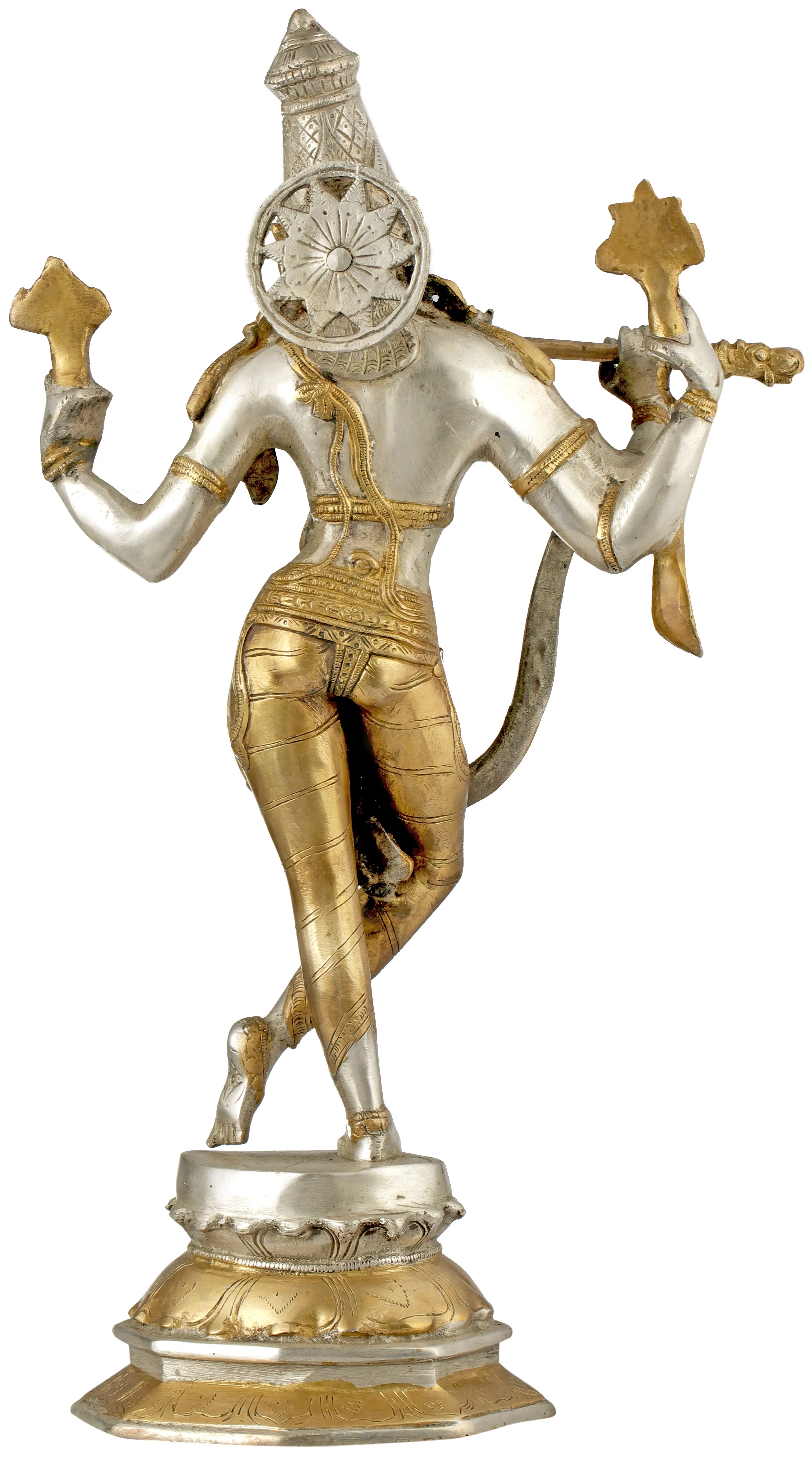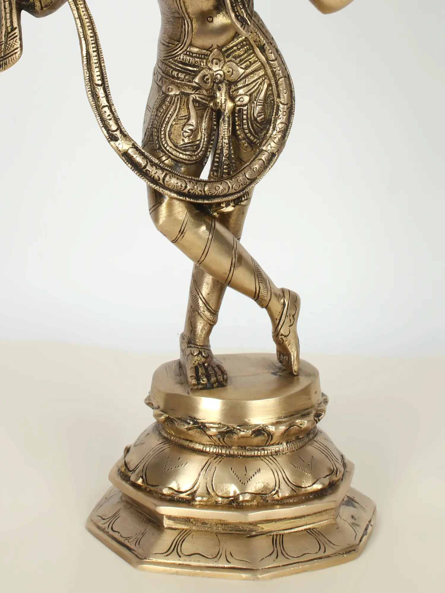 The portrayal of the Cosmic Form of Lord Krishna in brass is a reflection of the divine essence of the universe encapsulated in a single form. Handmade in India with meticulous craftsmanship, this sculpture symbolises the universal manifestation of Krishna, signifying the omnipresence and cosmic harmony. It depicts the cosmic grandeur of Krishna, showcasing the divine form that encompasses the entire universe. The intricate details within this sculpture invite contemplation on the magnificence of the cosmos and the all-encompassing nature of divinity.