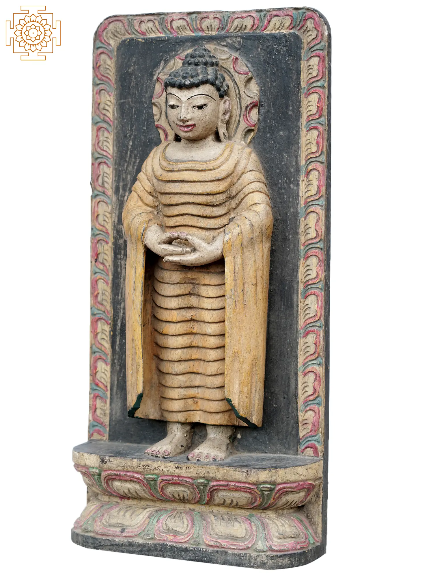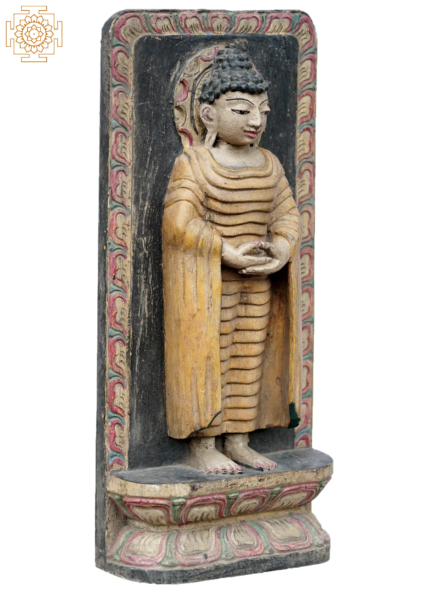 Experience the serene presence of Gautama Buddha standing in the Dhyana Mudra, embodying tranquility and inner peace. With graceful poise and meditative gestures, Buddha exudes a sense of spiritual enlightenment and mindfulness. Crafted with intricate detail, this statue radiates the timeless wisdom and serenity of the enlightened one. Invite the calming energy of Gautama Buddha into your space, fostering mindfulness, serenity, and spiritual growth in your surroundings.