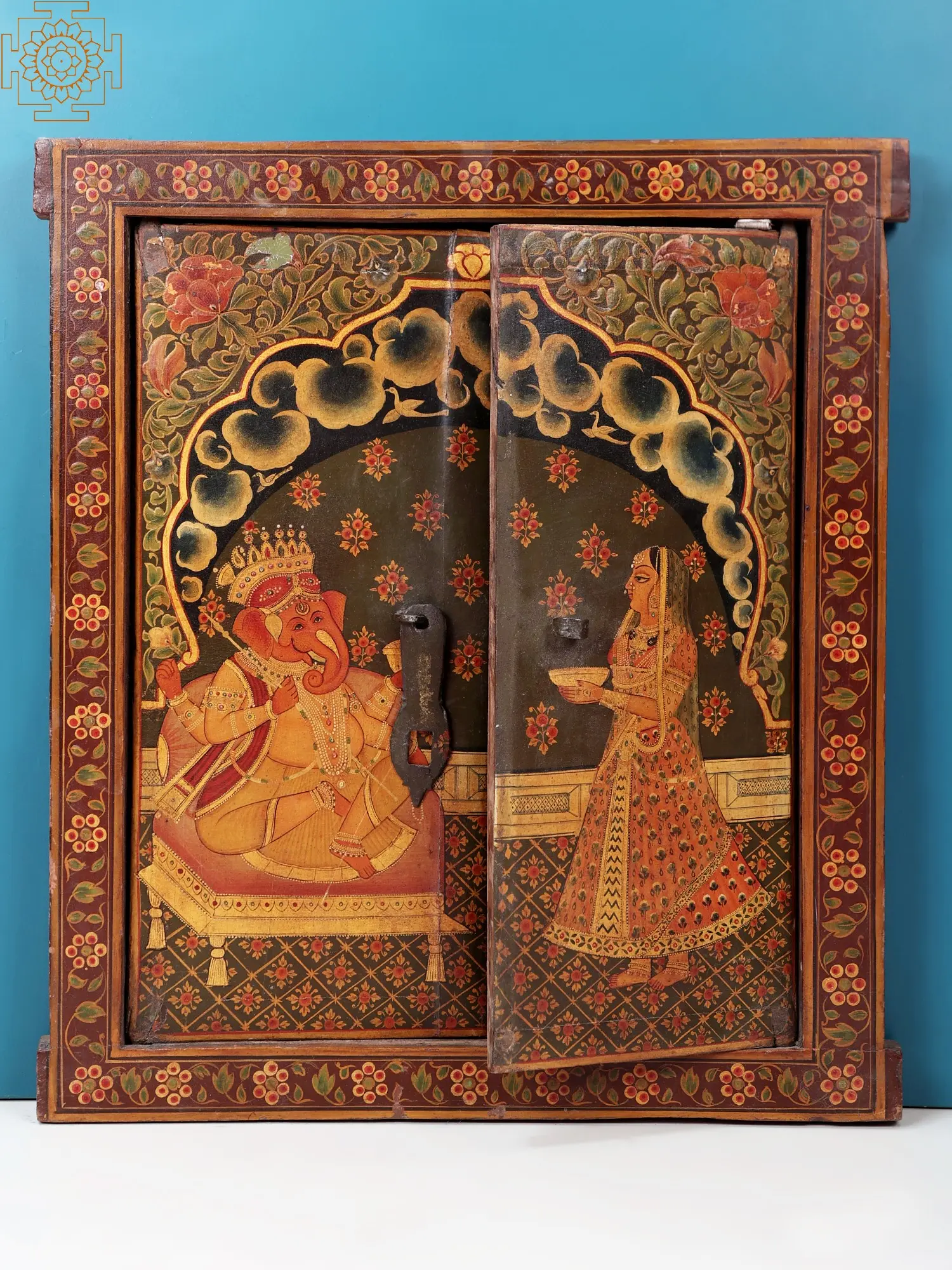 13" Hand Painted Worship of Shrinath Ji Jharokha (Window) | Handmade