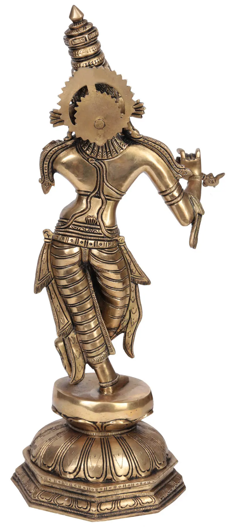 Lord Krishna - the handsomest, the most playful, and the worldly-wisest of all Indian deities - is arguably the greatest symbol of the Orient. Of the numberless brass sculptures abound, this one stands out because of the superb intricacy and the majestic crown on His head.