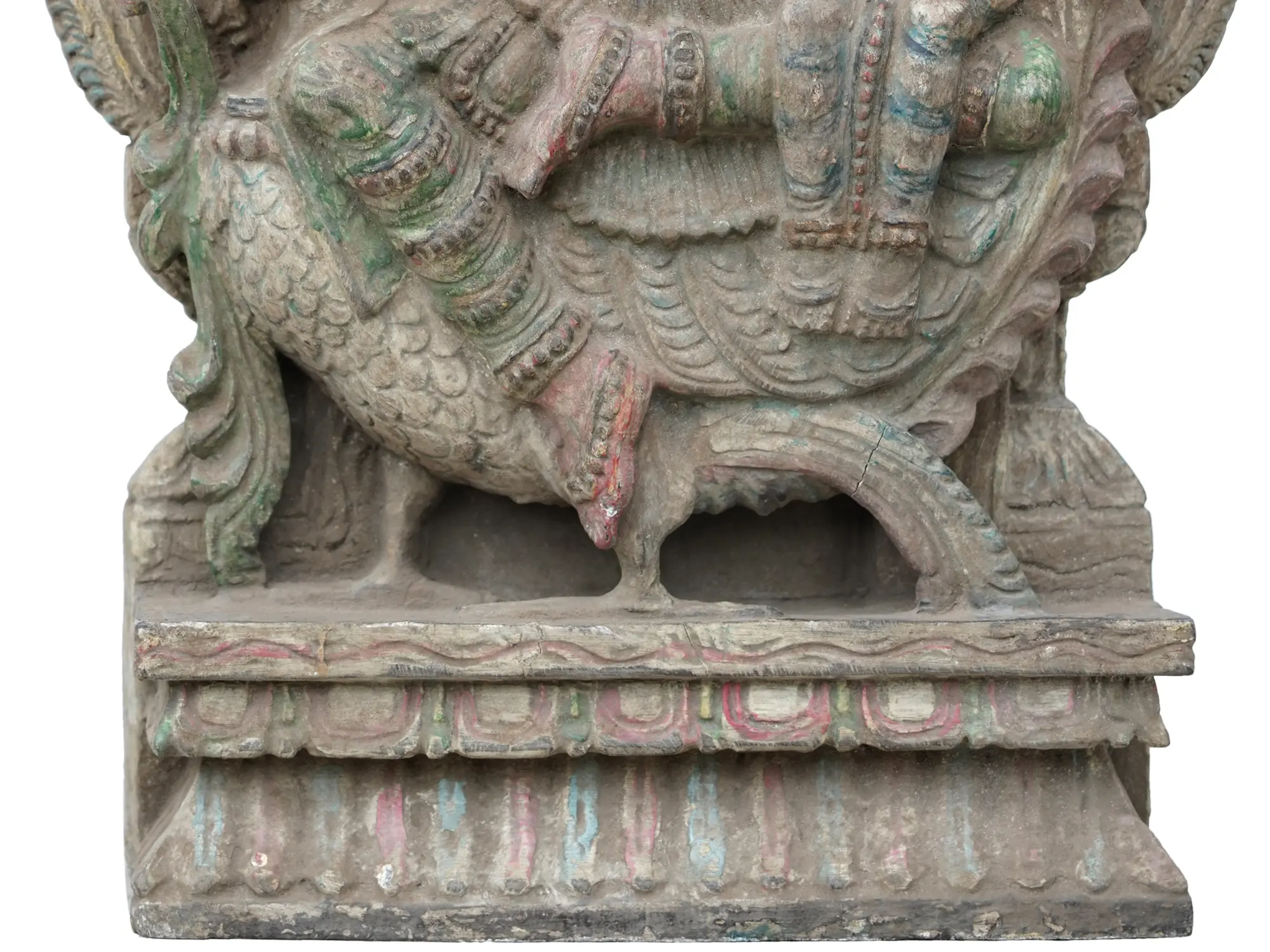 Lord Brahma, the heavenly creator, is shown sitting on his mount Hamsa (swan), with Saraswati, the goddess of knowledge and wisdom, cuddled in his lap. This holy imagery represents the unbreakable connection between enlightenment and creation. Brahma, with his four heads signifying the four Vedas, is the embodiment of cosmic intelligence, while Saraswati, with her sacred scriptures and Veena, is the embodiment of learning and creative expression. By demonstrating the great harmony between creation and knowledge, they collectively motivate humanity to advance spiritually and intellectually.