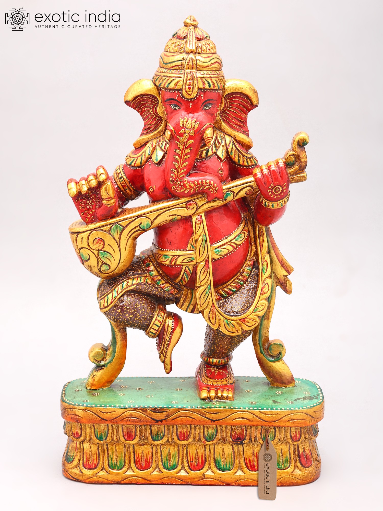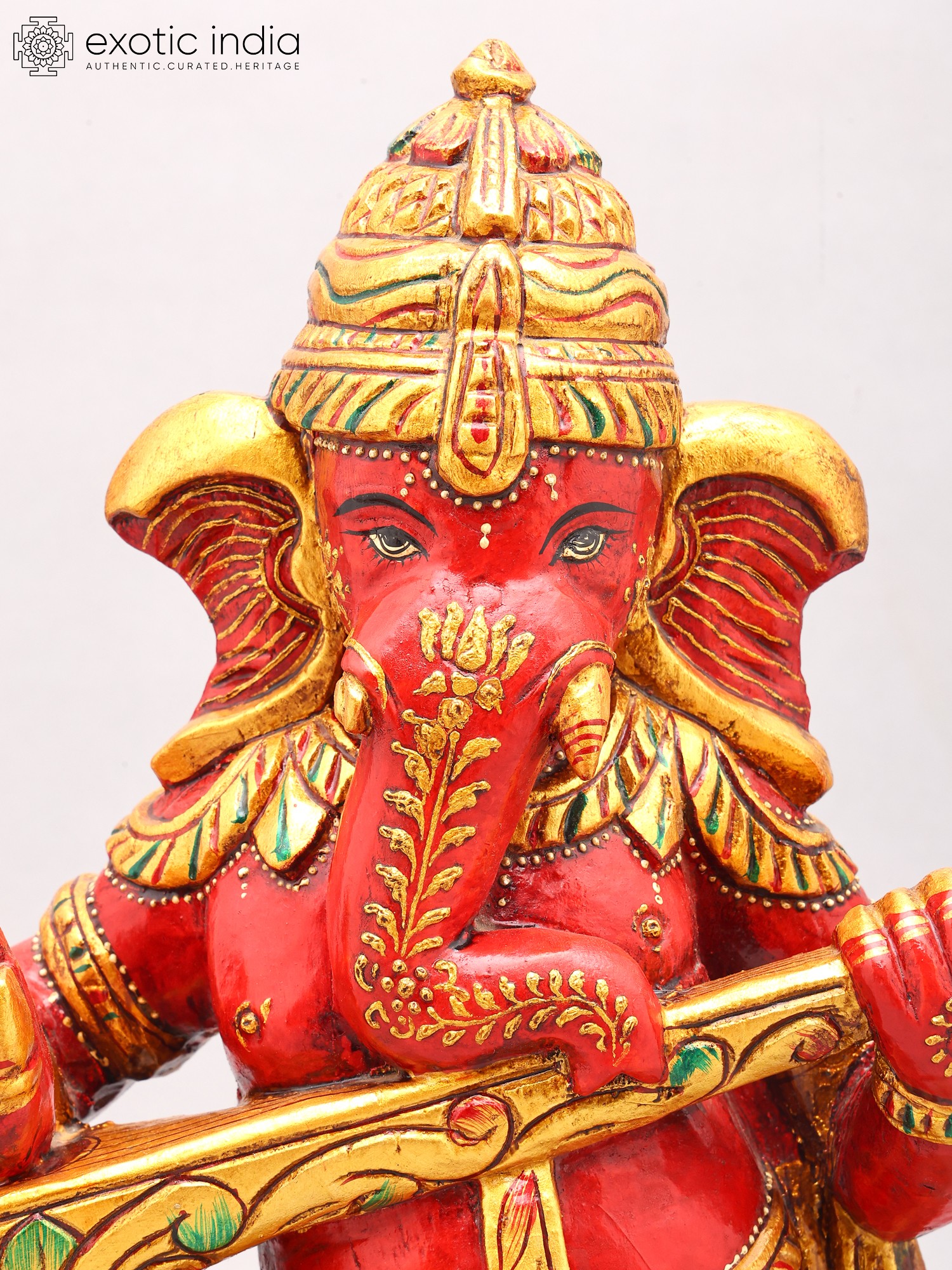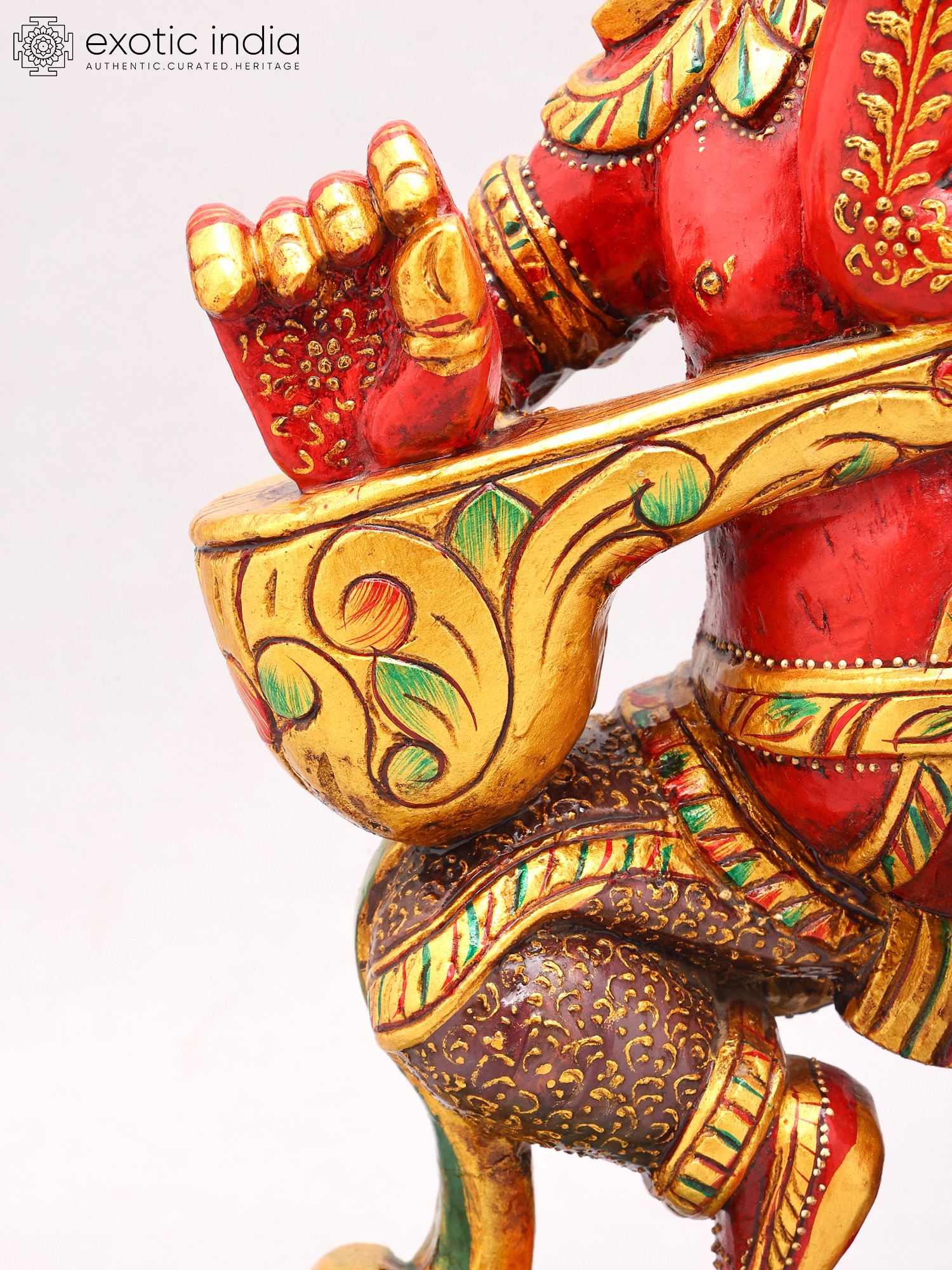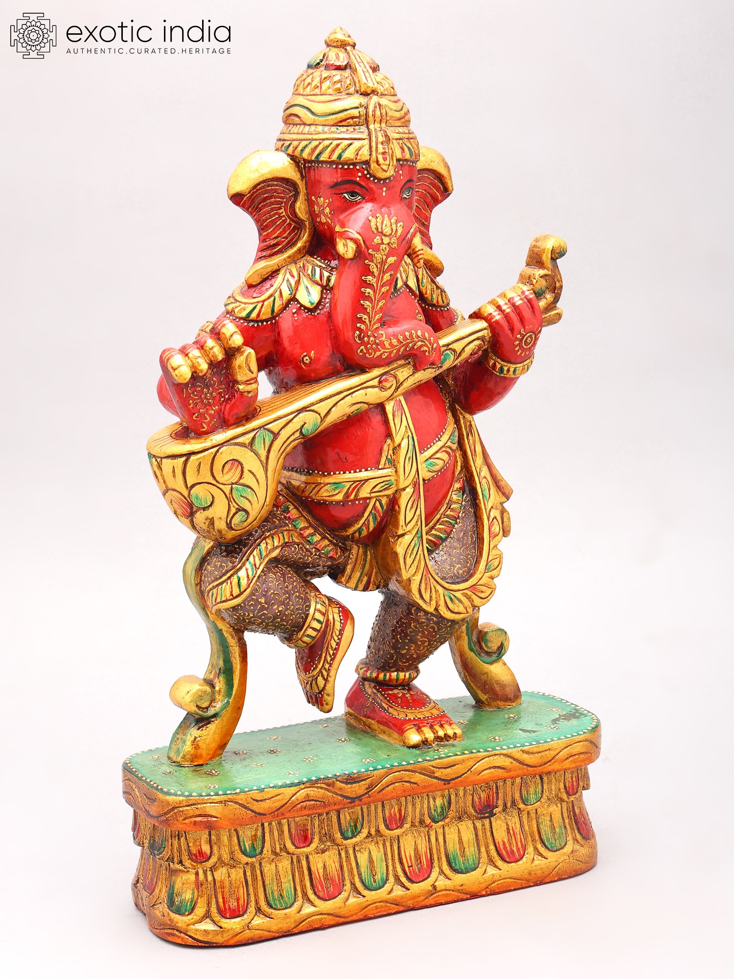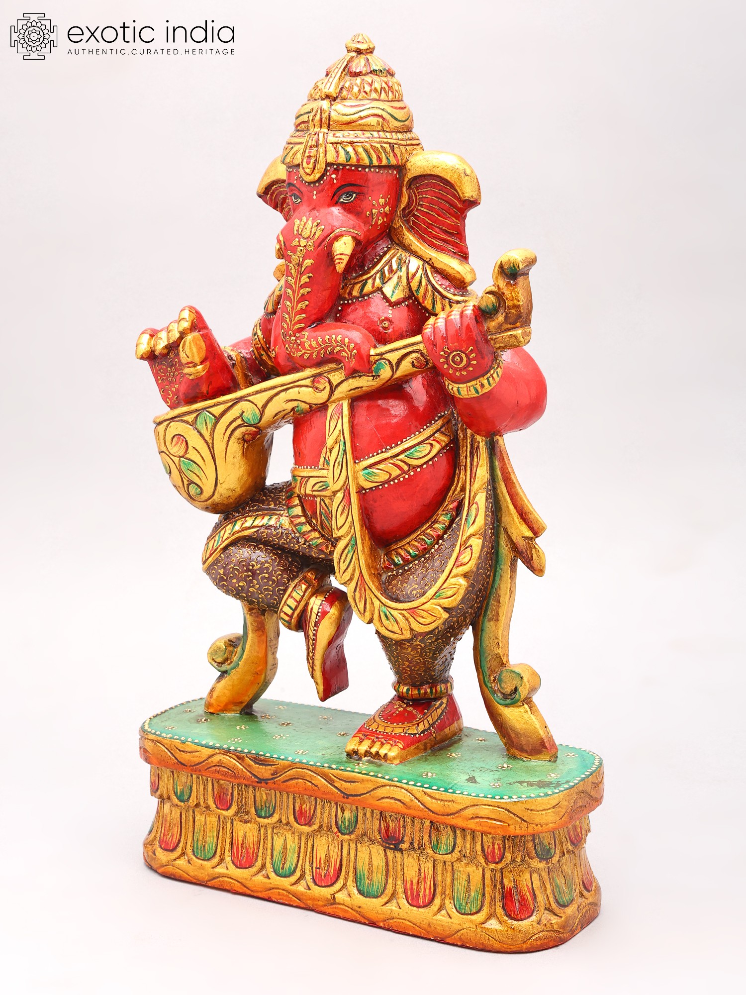 Dance Ganesha Statue - Authentic South Indian Temple Wood Carving for Spiritual Decor