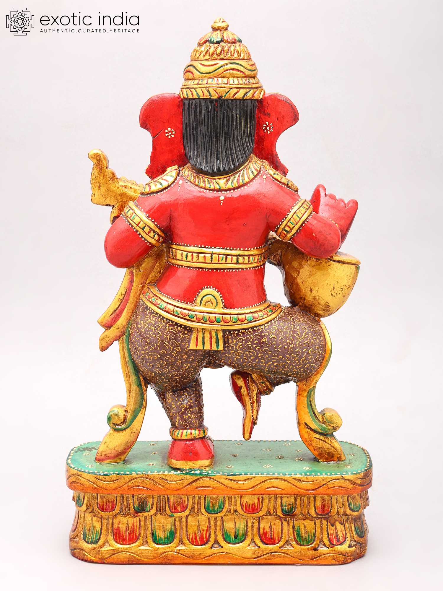 19" Four Armed Dancing Ganesha | Wood Statue