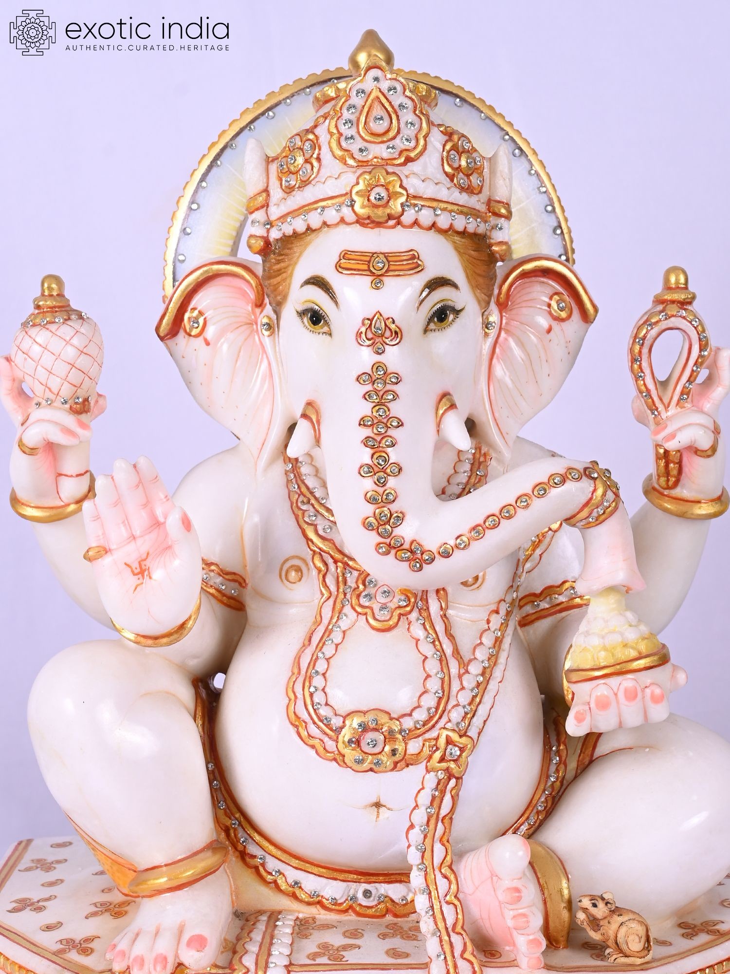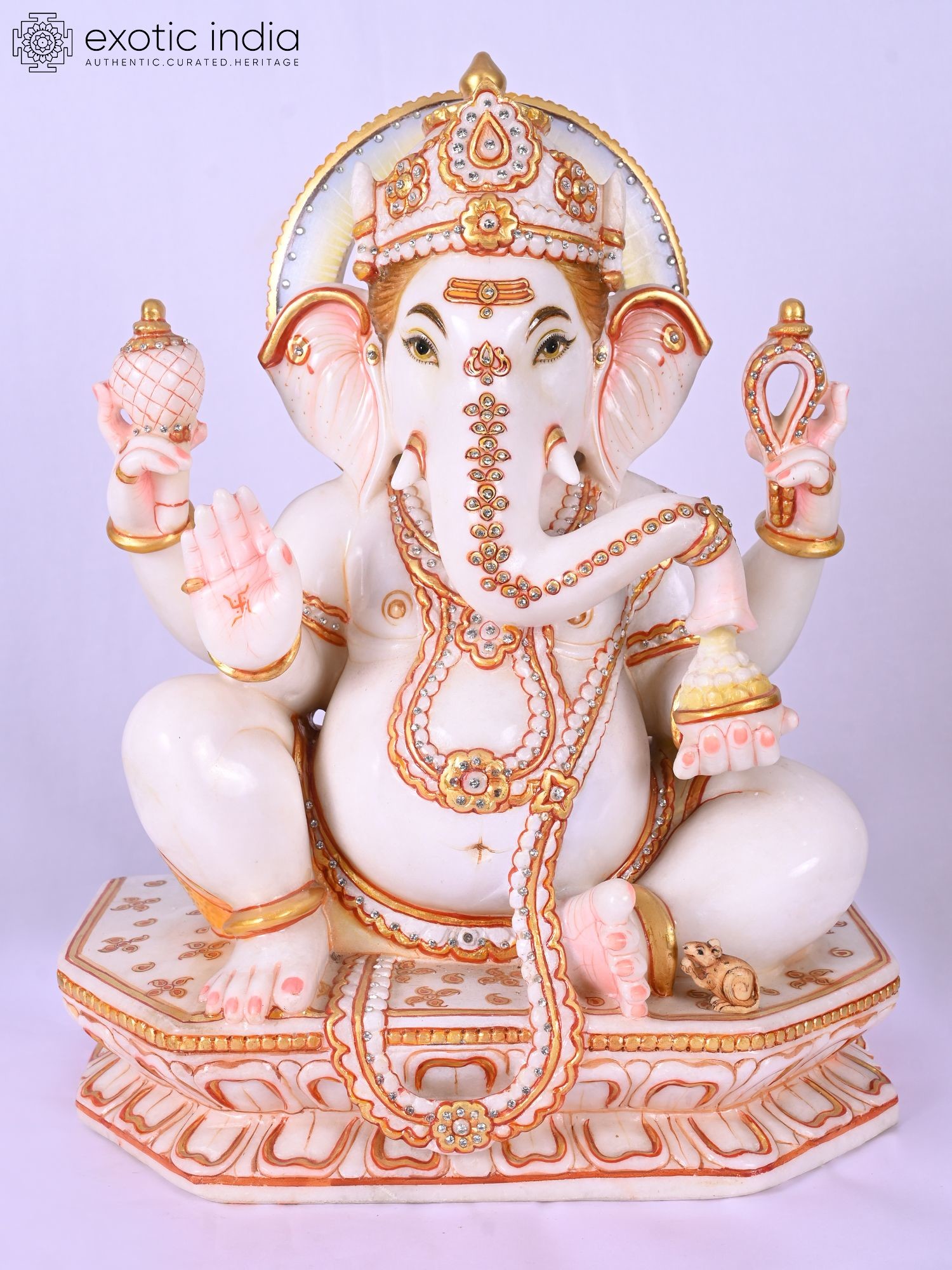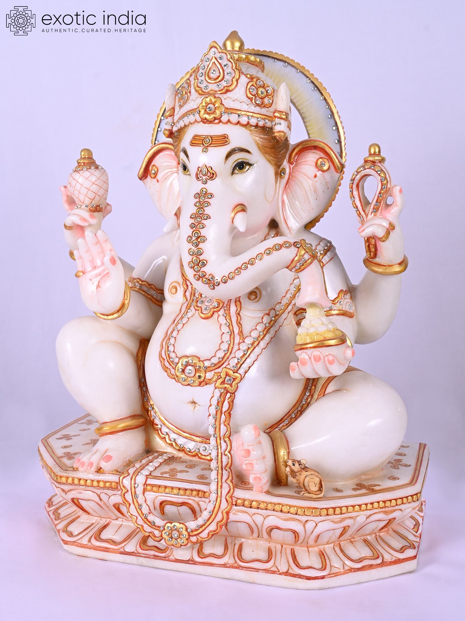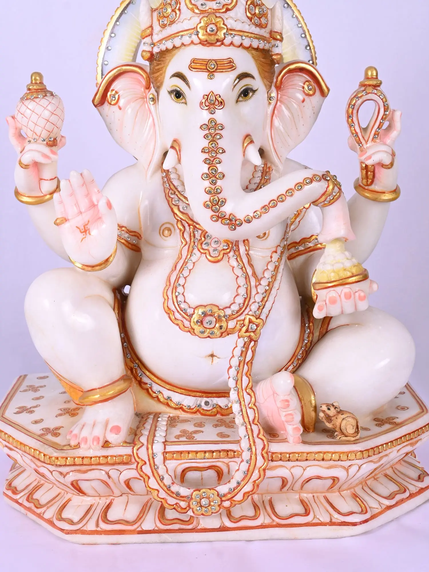 Lord Ganesha Marble Sculpture with Modak