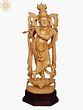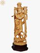 This exquisite 18-inch statue captures the essence of Lord Krishna in a moment of pure, unadulterated joy, as he plays his divine flute. Crafted from fine whitewood, each intricate detail speaks of devotion and artistry, bringing the beloved deity to life in your sacred space. The smooth, natural grain of the wood lends a warmth and organic beauty, creating a piece that feels both timeless and deeply personal. Krishna, the eighth avatar of Lord Vishnu, is revered as the god of compassion, tenderness, and love. His flute playing is not merely music; it is the very sound of creation, a celestial melody that mesmerizes all living beings, from the cowherd girls of Vrindavan to the very cosmos itself. Legend tells of how the gopis would abandon their chores and even their families, drawn by the irresistible charm of Krishna's flute music, finding solace, bliss, and a profound connection to the divine in its enchanting notes.