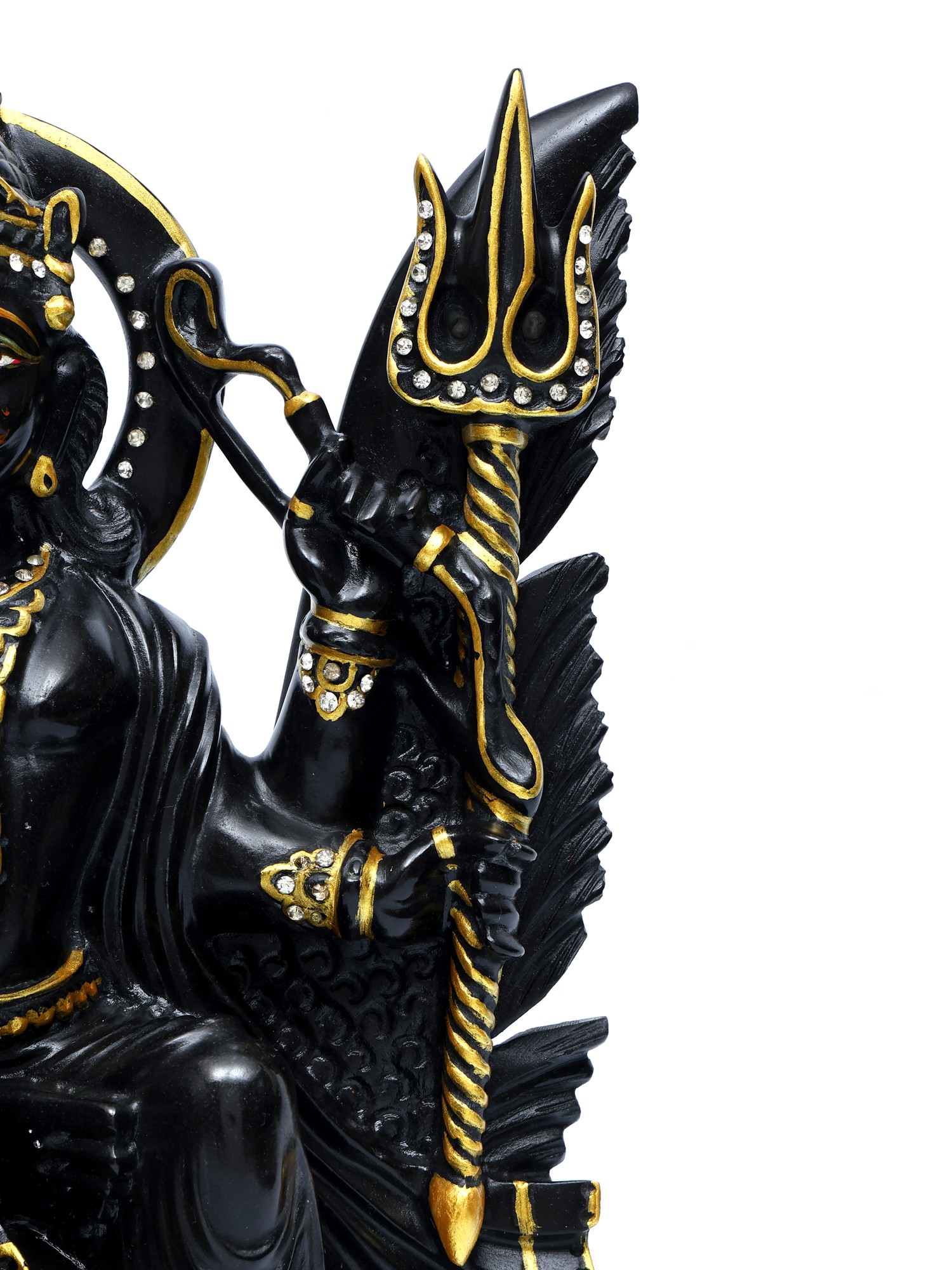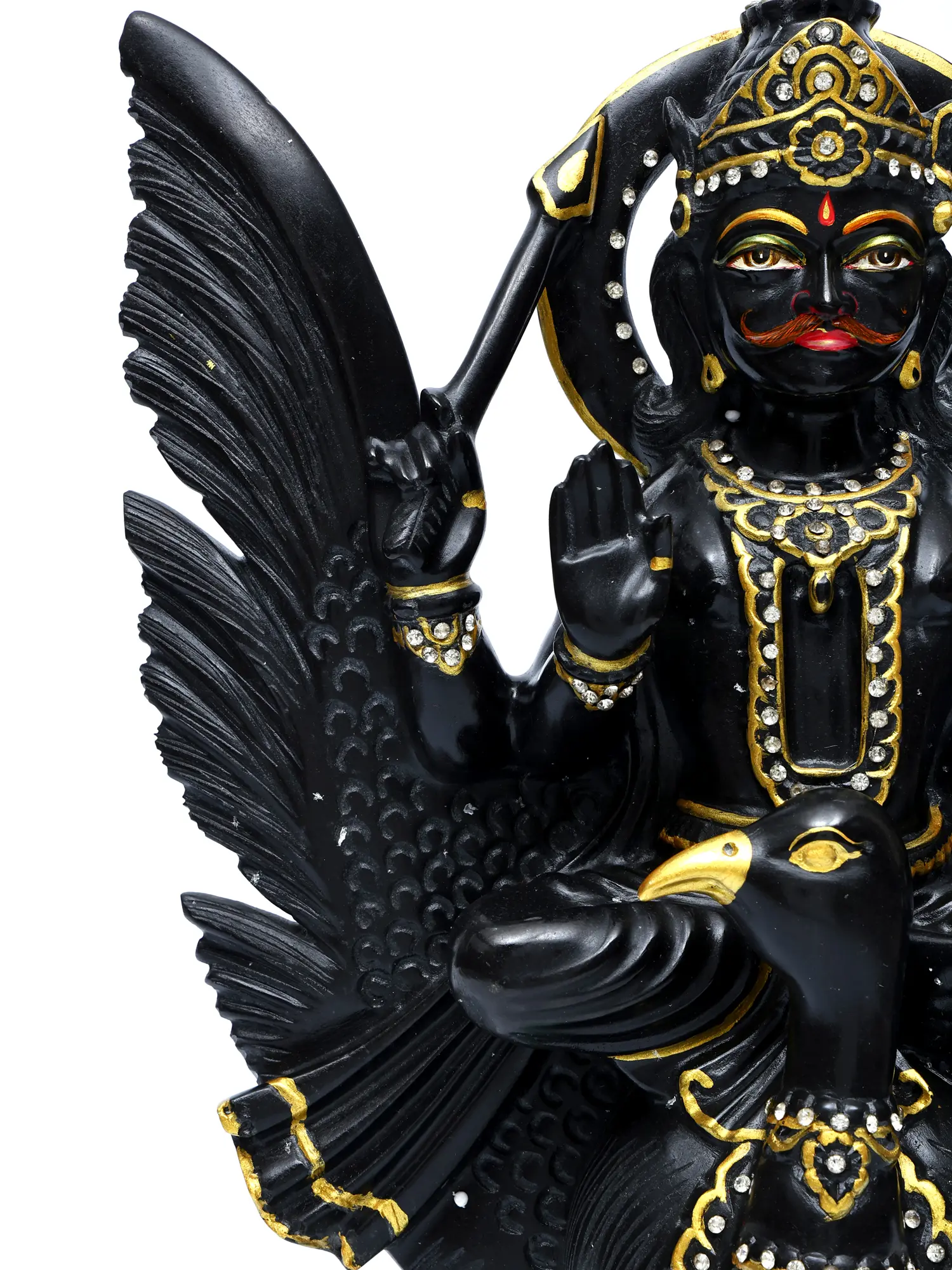 Bringing this statue into your home or sacred space offers a powerful visual anchor for contemplation on the principles of karma, justice, and spiritual discipline. It serves as a constant reminder of the importance of righteous conduct and the understanding that every action has a reaction. This striking sculpture is not merely an object of art but a conduit to the spiritual energies of Lord Shani, inviting peace, balance, and the wisdom to navigate life's complexities with integrity and fortitude. It is an ideal addition for any devotee or admirer of Hindu iconography seeking to imbue their surroundings with divine presence and meaningful symbolism.