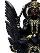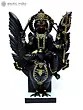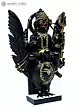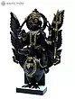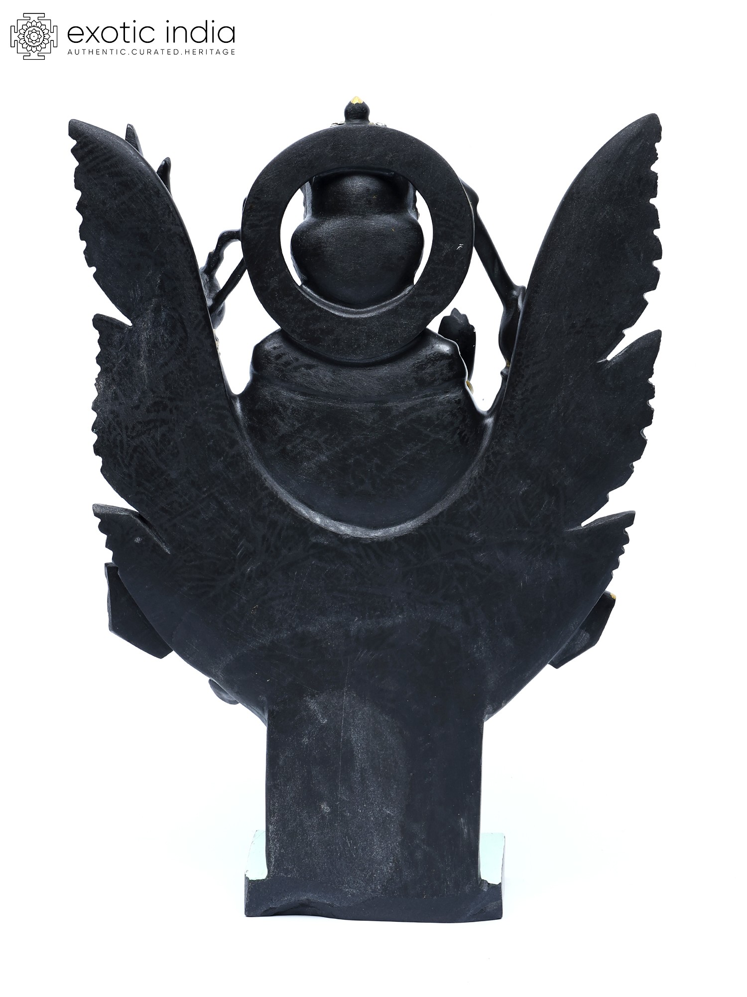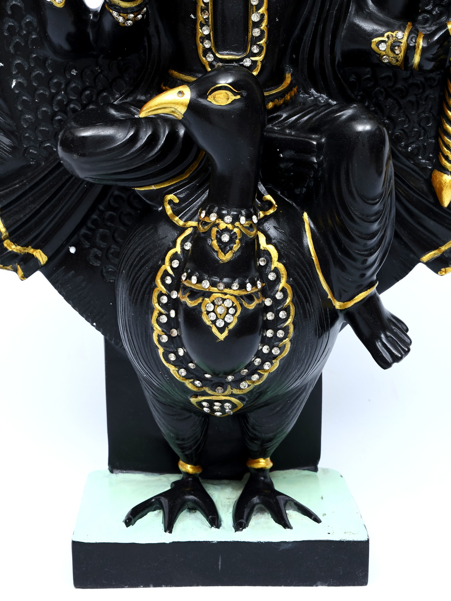 This statue is a testament to the skill of Indian artisans. The Rajasthan black marble, known for its fine grain and durability, has been expertly carved to bring Shani to life. The deity is adorned with elaborate golden embellishments and sparkling stones, highlighting the richness of divine attire. His serene yet commanding expression, the iconic trident held aloft, and the detailed rendering of his flowing robes all contribute to the statue's captivating presence. The majestic wings of the crow spread wide, adding to the grandeur of the composition. The base, also fashioned from the same black marble, provides a stable and elegant foundation for this divine representation.