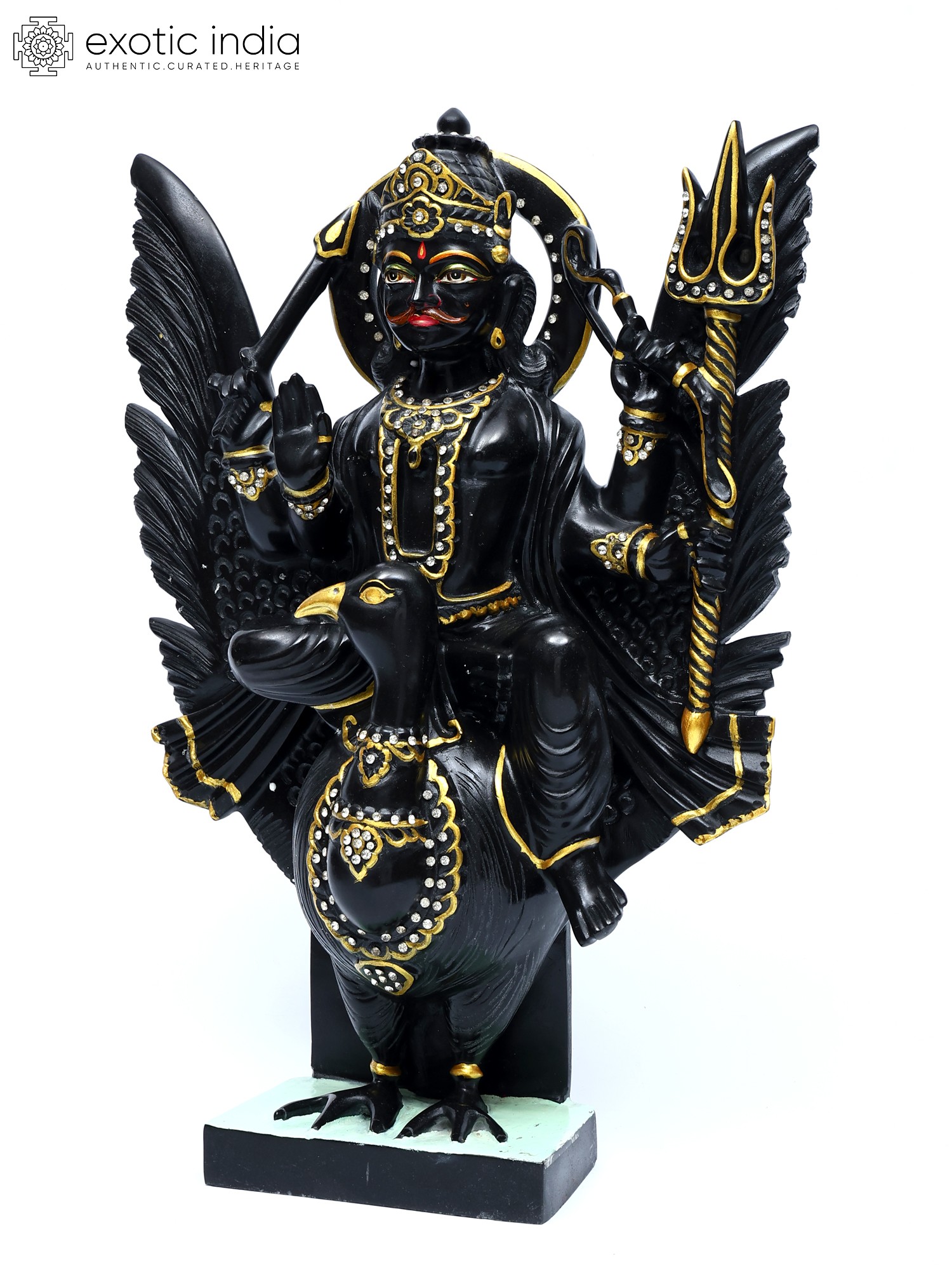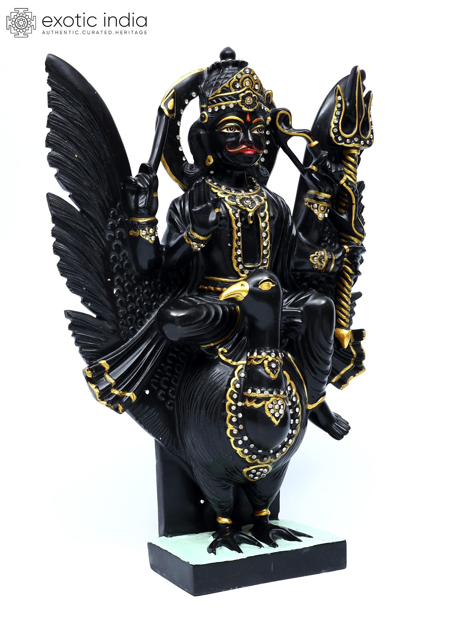 18" Colorful Statue Of Lord Shani | Black Marble Idol