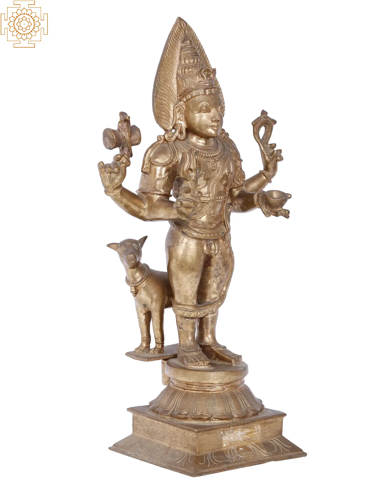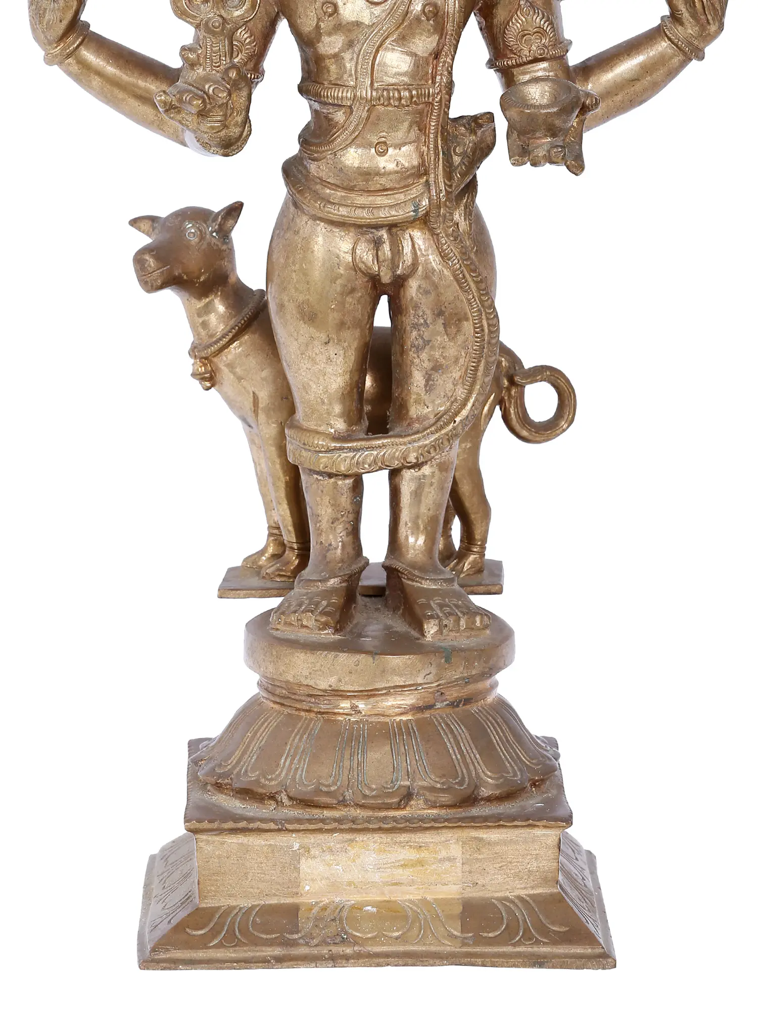 23'' Hindu God Bhairava With Vahana Dog | Bronze