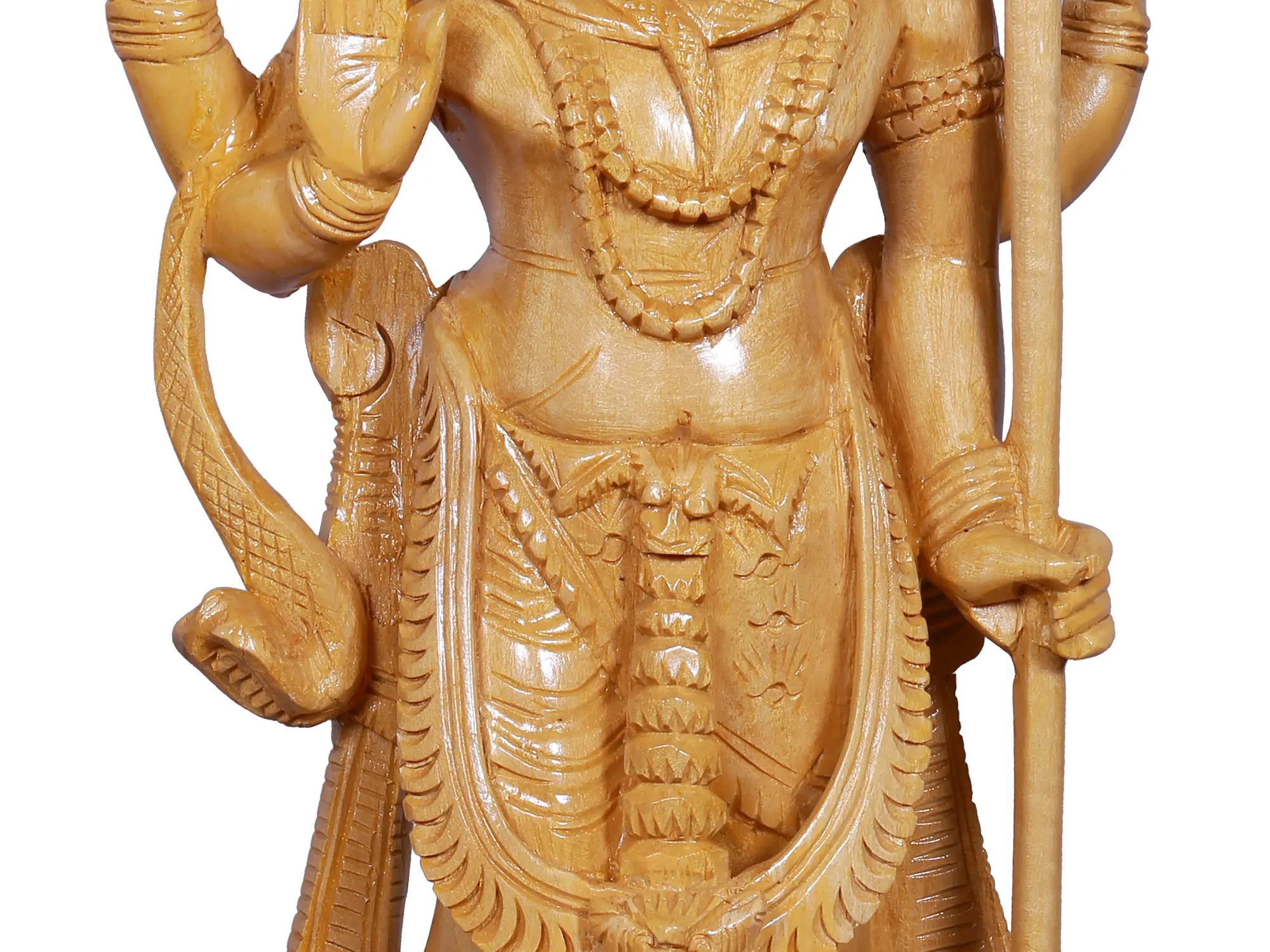 Carved from high-quality whitewood, this statue is a testament to the skill of traditional artisans. The wood is chosen for its fine grain and smooth texture, allowing for the detailed rendering of the complex iconography associated with Lord Shiva. The absence of artificial colors allows the natural beauty of the wood to shine through, providing a timeless and classic aesthetic. This piece is designed to be a cherished heirloom, capable of withstanding the passage of time, much like the eternal teachings of Lord Shiva. Its substantial presence and intricate craftsmanship make it a standout piece for any discerning collector or devotee seeking to bring the divine essence of Shiva into their lives.